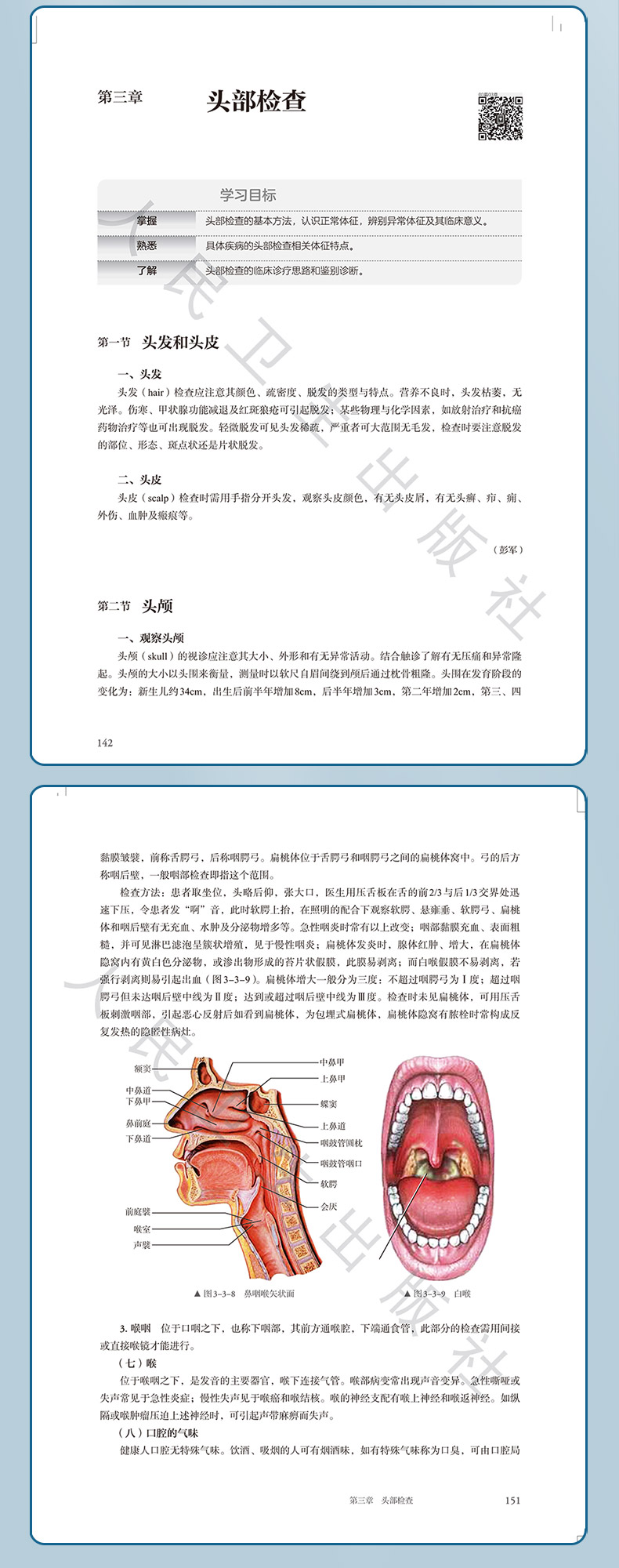 本版教材的特点: 1.每章均有“学习目标、学习内容、学习小结、复习思考题”四个模块。章首的“学习目标”让学生明确需要掌握、熟悉或了解的内容,有目的、有重点地学习,提高学习效率。章末的“学习小结”总结了本章重点,字简意深。“复习思考题”增加了选择题和答案,在学生练习和思考过程中,可以更好地掌握本章的重点内容。章中部分增加了“相关链接”,补充了新技术、新方法、新成果等内容。 2.在常见症状中,增加了“阴道出血”。在检体诊断中,增加了电子血压计测量血压的方法,更新了部分体格检查的图片。 3.在问诊与接诊方法中,突出“以患者为中心”的理念,强调医患沟通的重要性,修改了问诊范例,旨在使学生懂得如何围绕主要症状,循序渐进地进行病史采集,最终归纳出相关的主诉、现病史等内容。 4.在病历书写部分,参照国家卫生健康委员会的有关**文件和规范要求,对病历种类、书写要求、内容和格式进行了修订。 5.增加图表,通过图表表达能力强、简洁、总结性强、易于领会、便于分析比较的特点,帮助学生寻找规律、引出结论。 6.全书更新知识、重点突出、删繁就简,以“更新、更简、更实用”为目标,提高教材的实用性。 7.为了启发读者阅读并提高临床分析思维能力,本版教材数字内容包括课件、自测题和在线课程,扫描二维码即可查看,方便学生在业余时间复习。