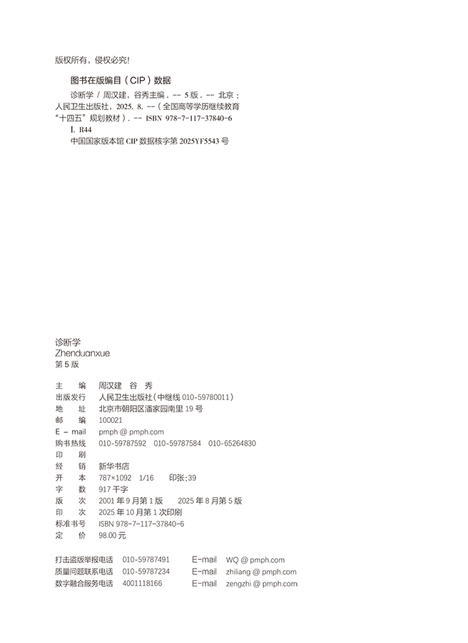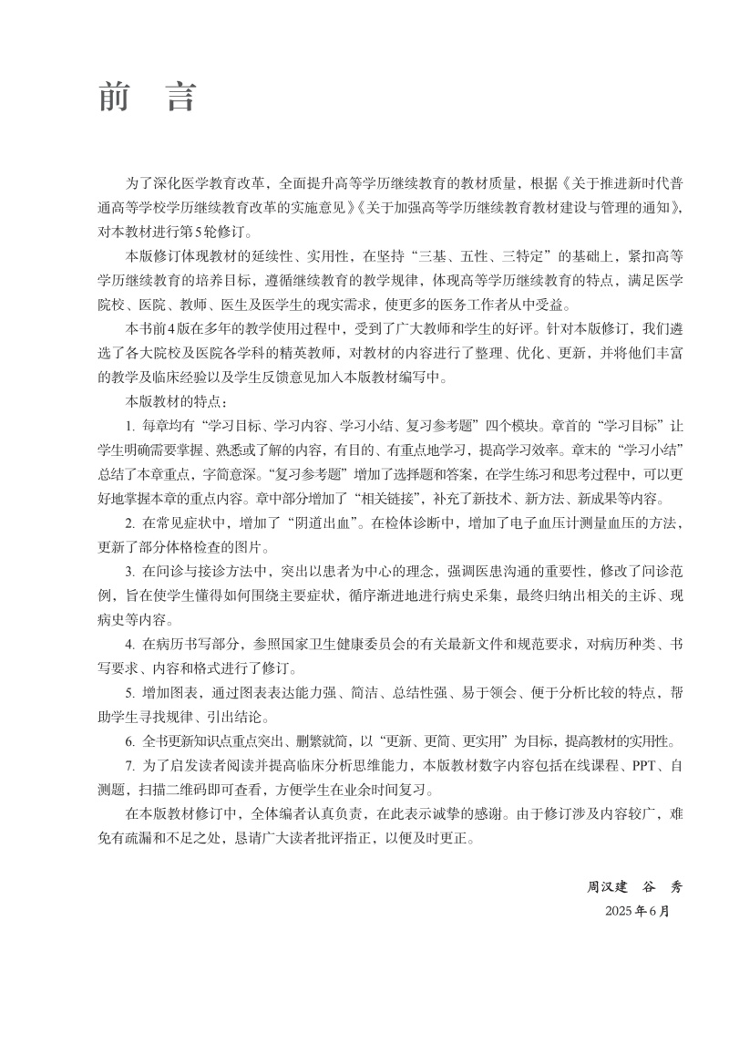 诊断学 第5五版 十四五规划新形态教材 全国高等学校教材 周汉建 谷秀 供临床预防影像专业高等学历继续教育等使用人民卫生出版社