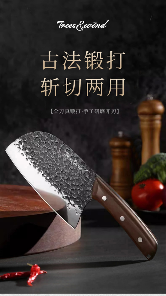 说起来,咱也不是专业大厨 平时做做饭不用配大几百、上千的大牌子! 实用!耐用!性价比高!才是最重要的! 所以今天给大家来点实在的 推荐一款高性价比刀具 Trees&wind古法锻打第三代⬇️