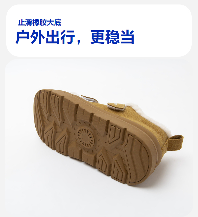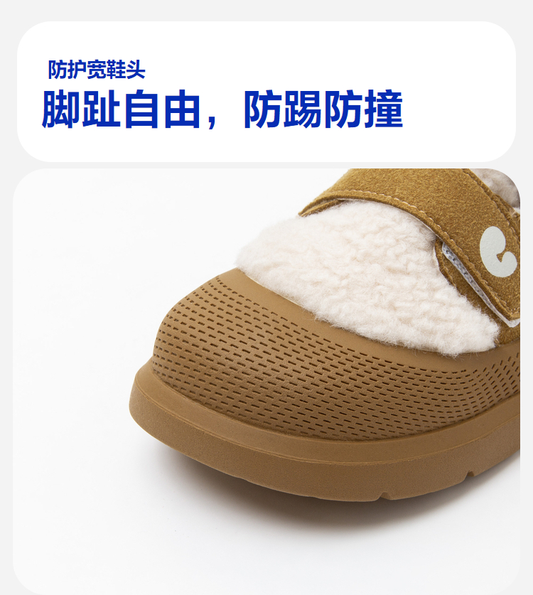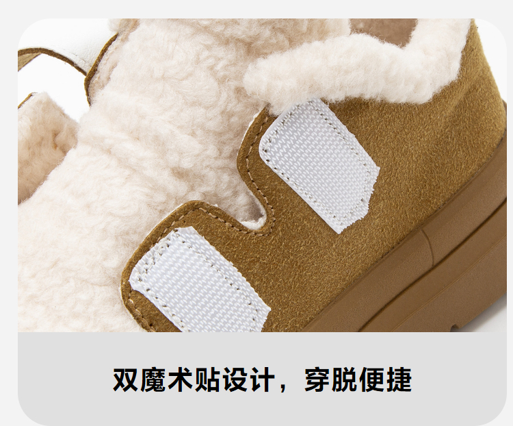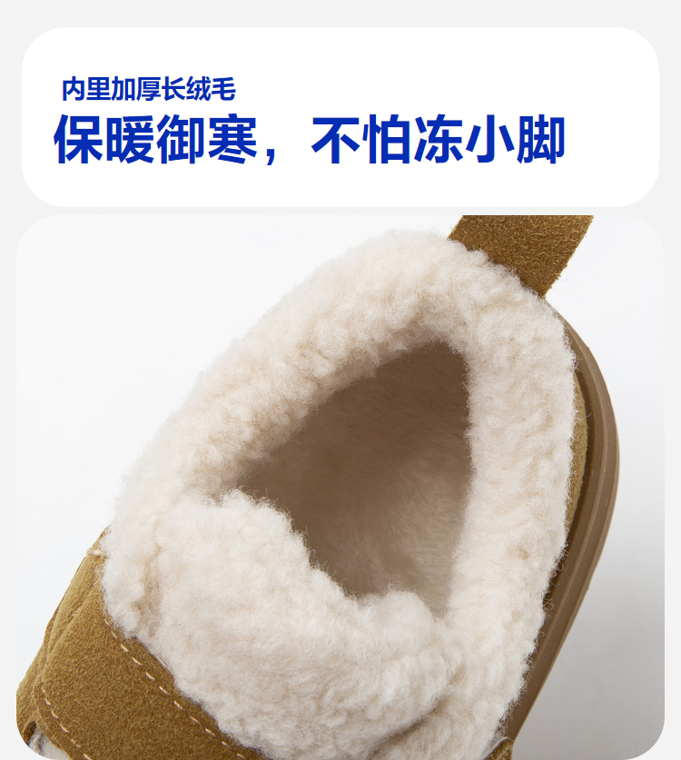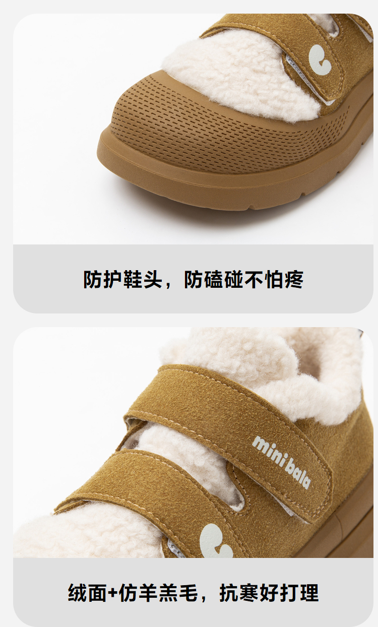 迷你巴拉加绒棉靴男女童防湿滑防踢撞仿羊羔绒橡胶底魔术贴