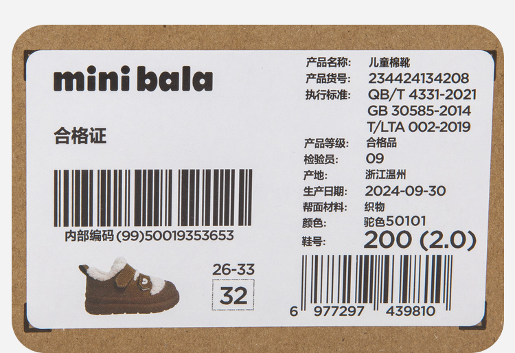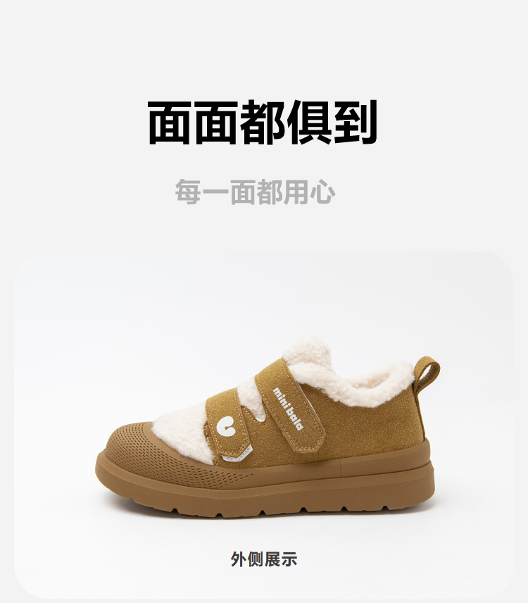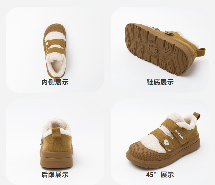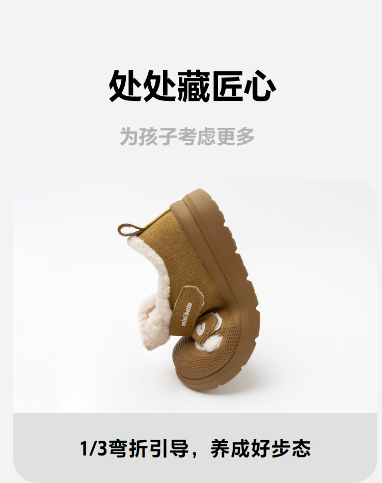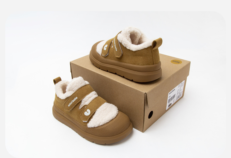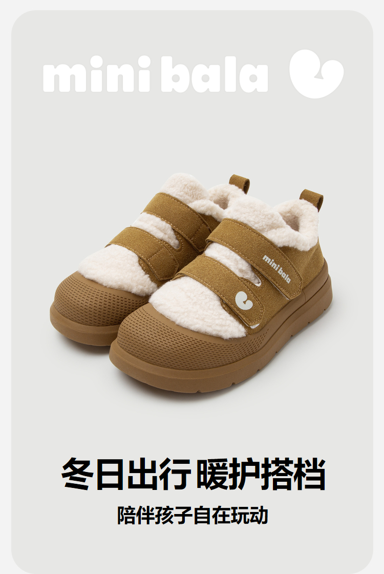 迷你巴拉加绒棉靴男女童防湿滑防踢撞仿羊羔绒橡胶底魔术贴