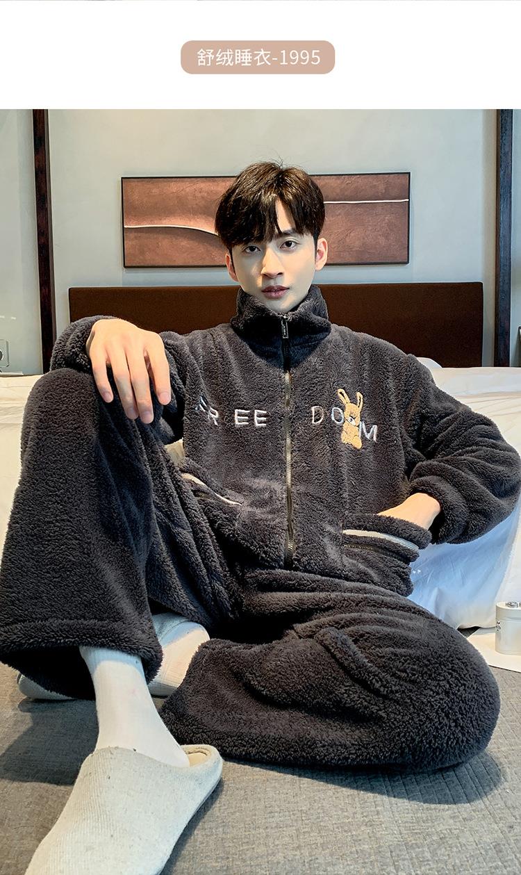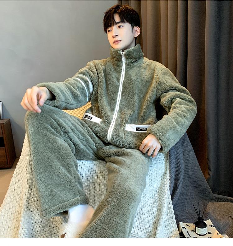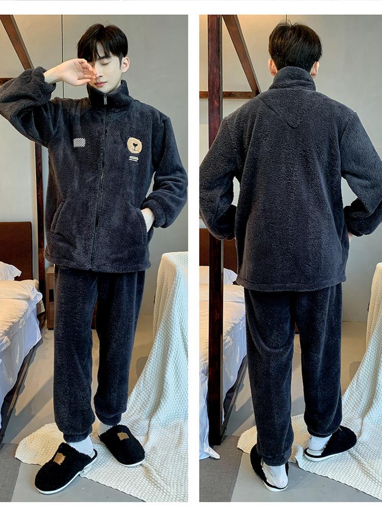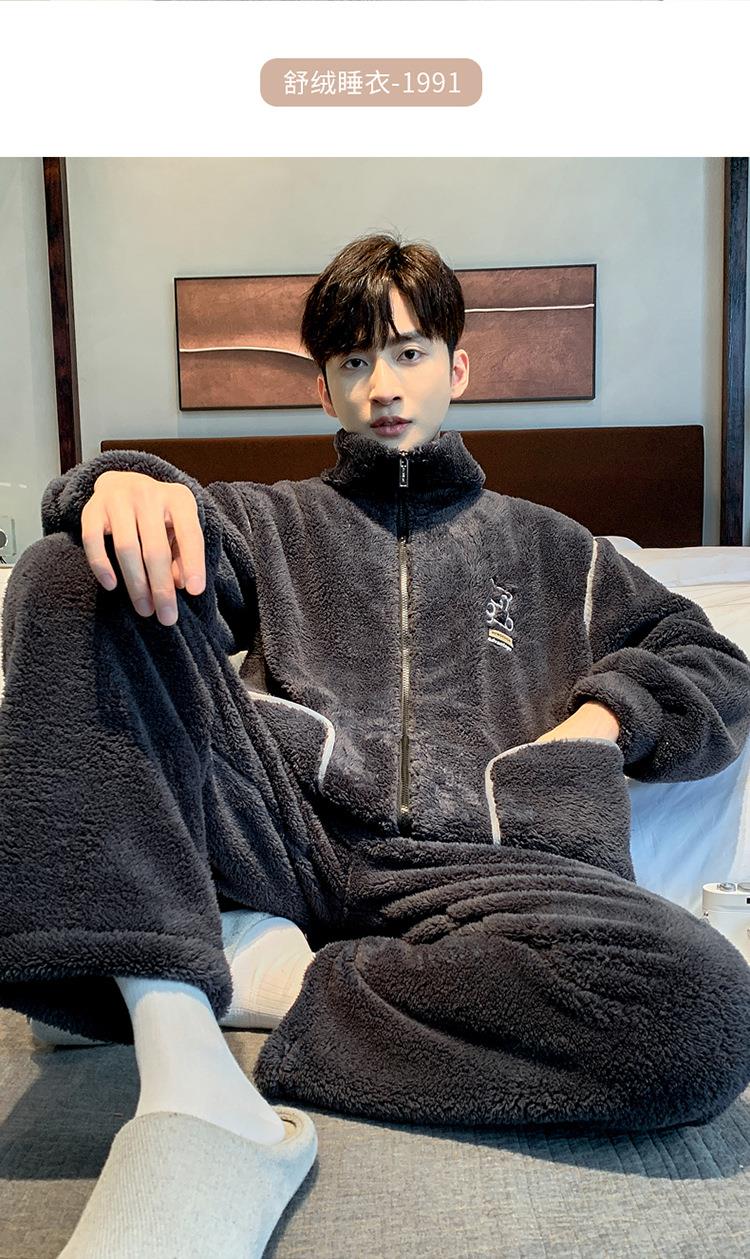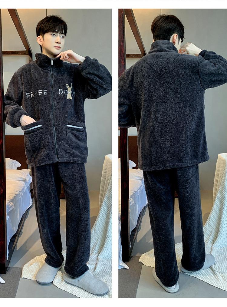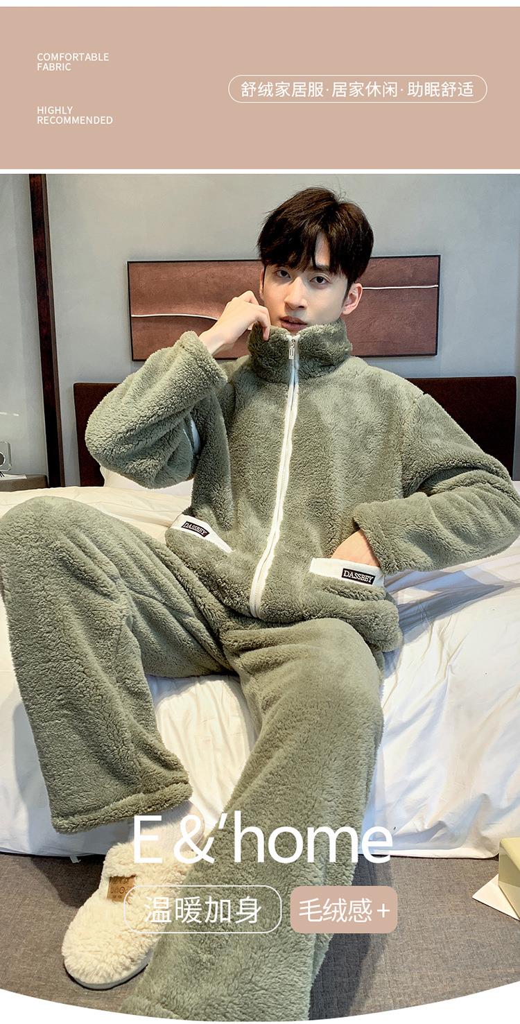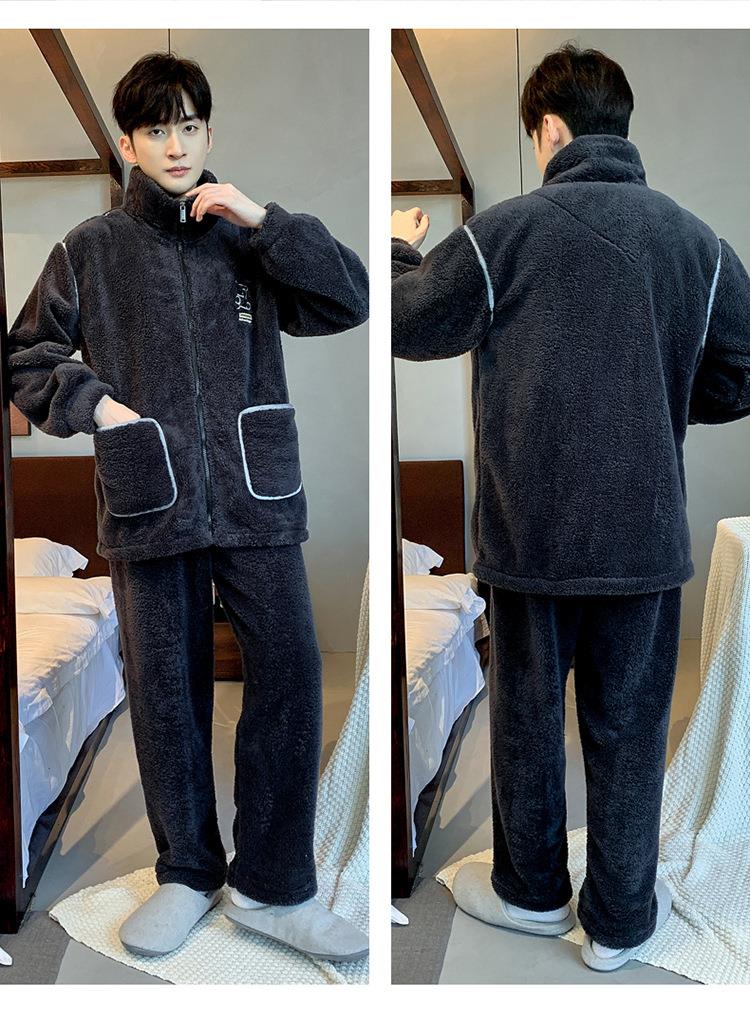 法兰绒男士睡衣加绒加厚保暖套装冬季新款宽松加大码珊瑚绒家居服
