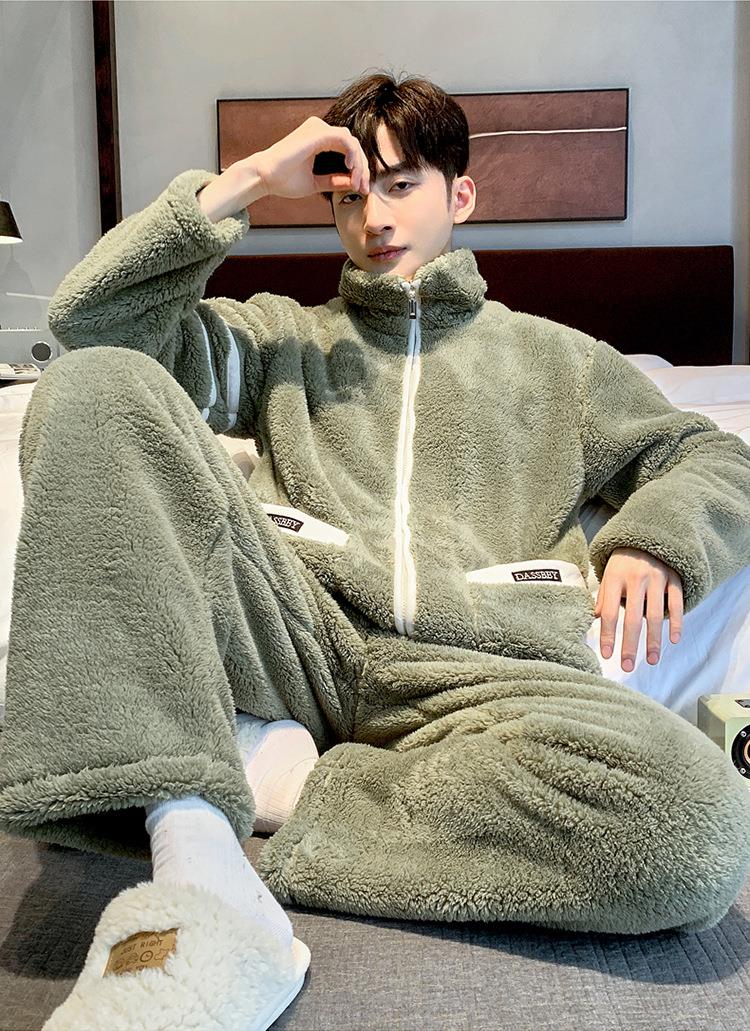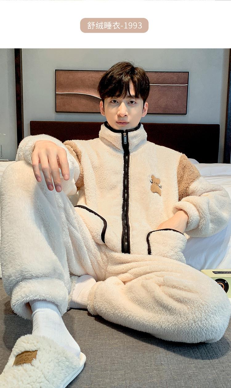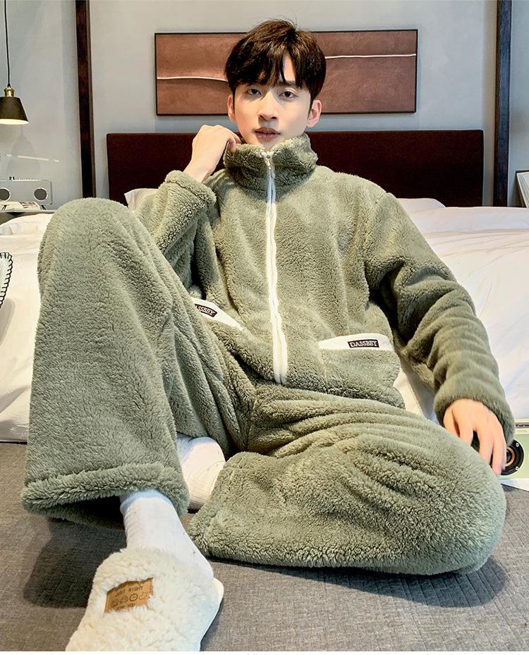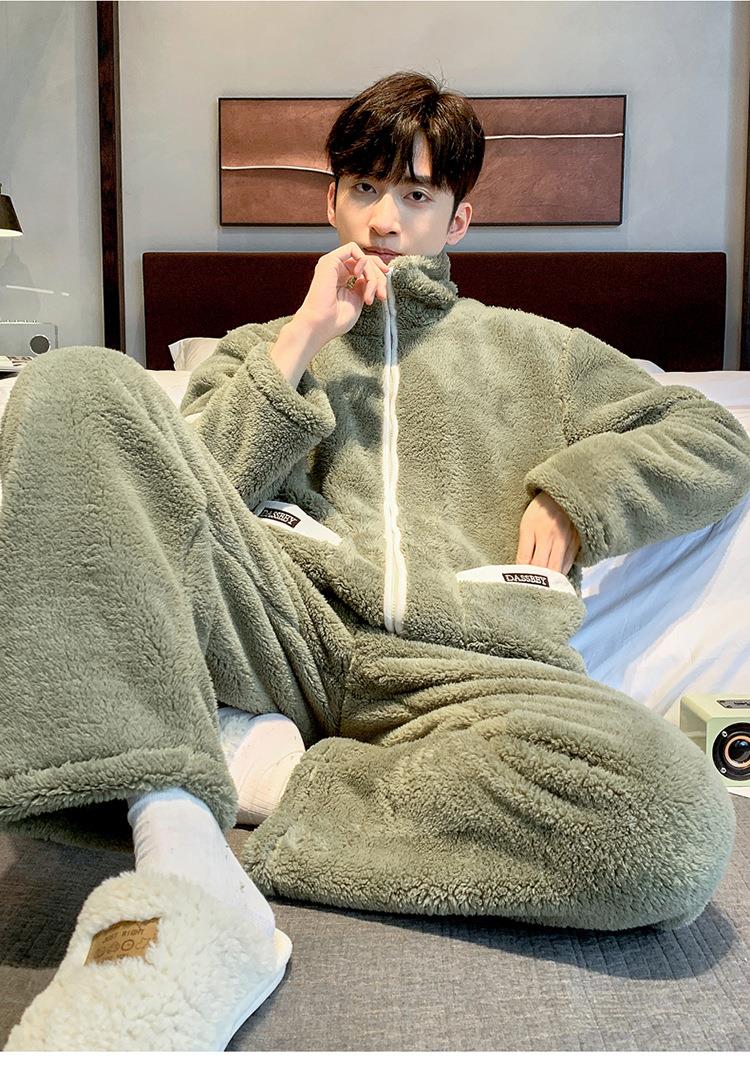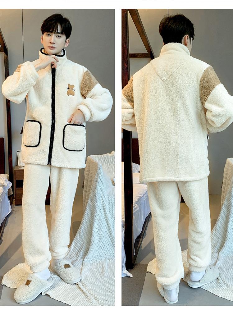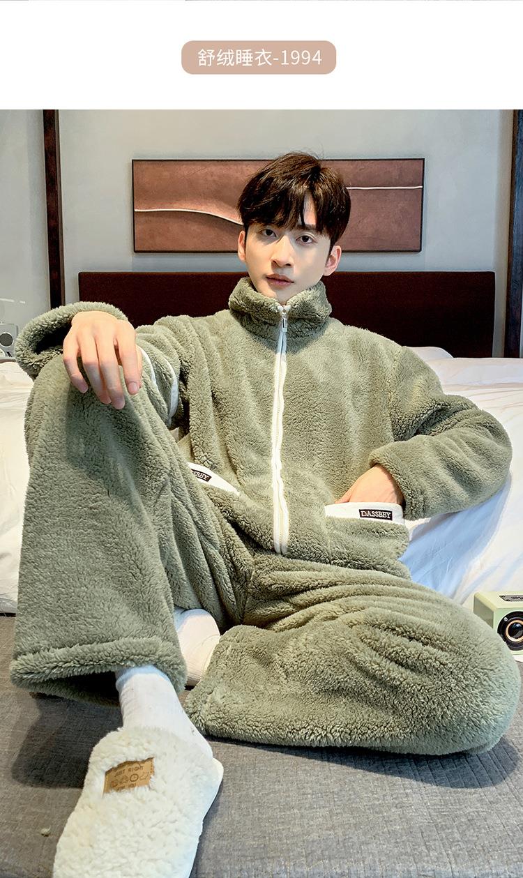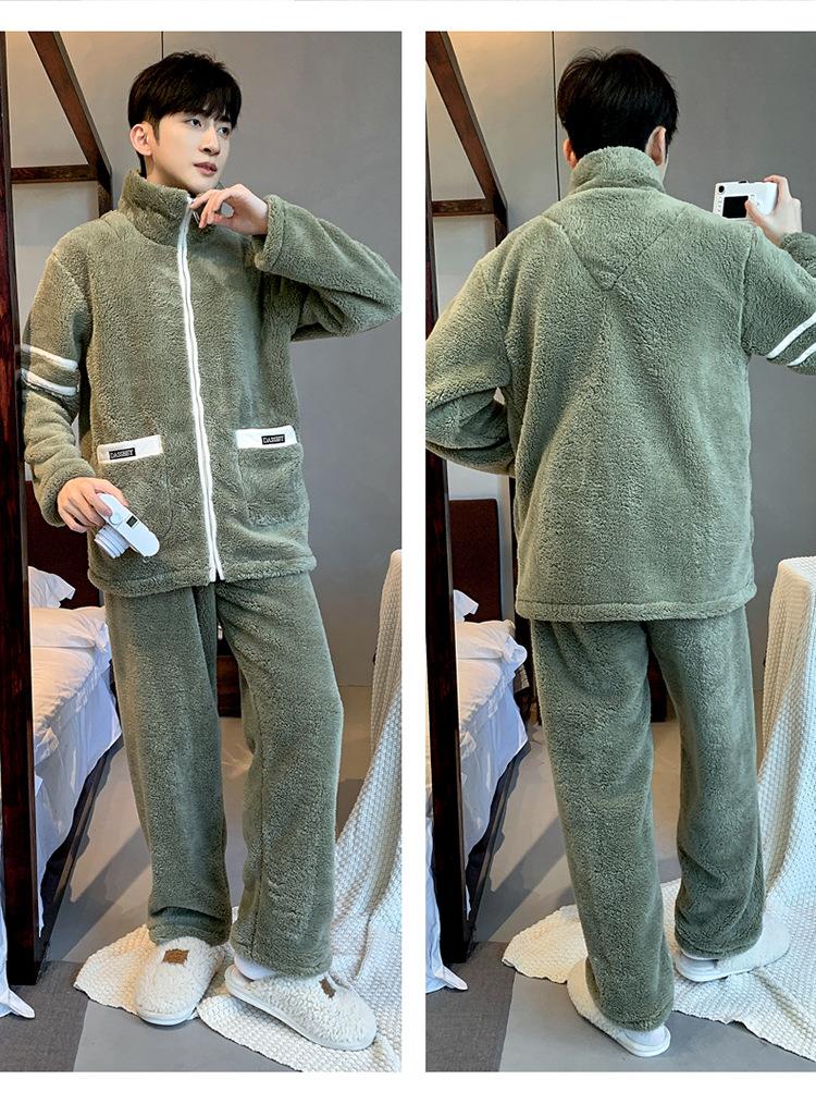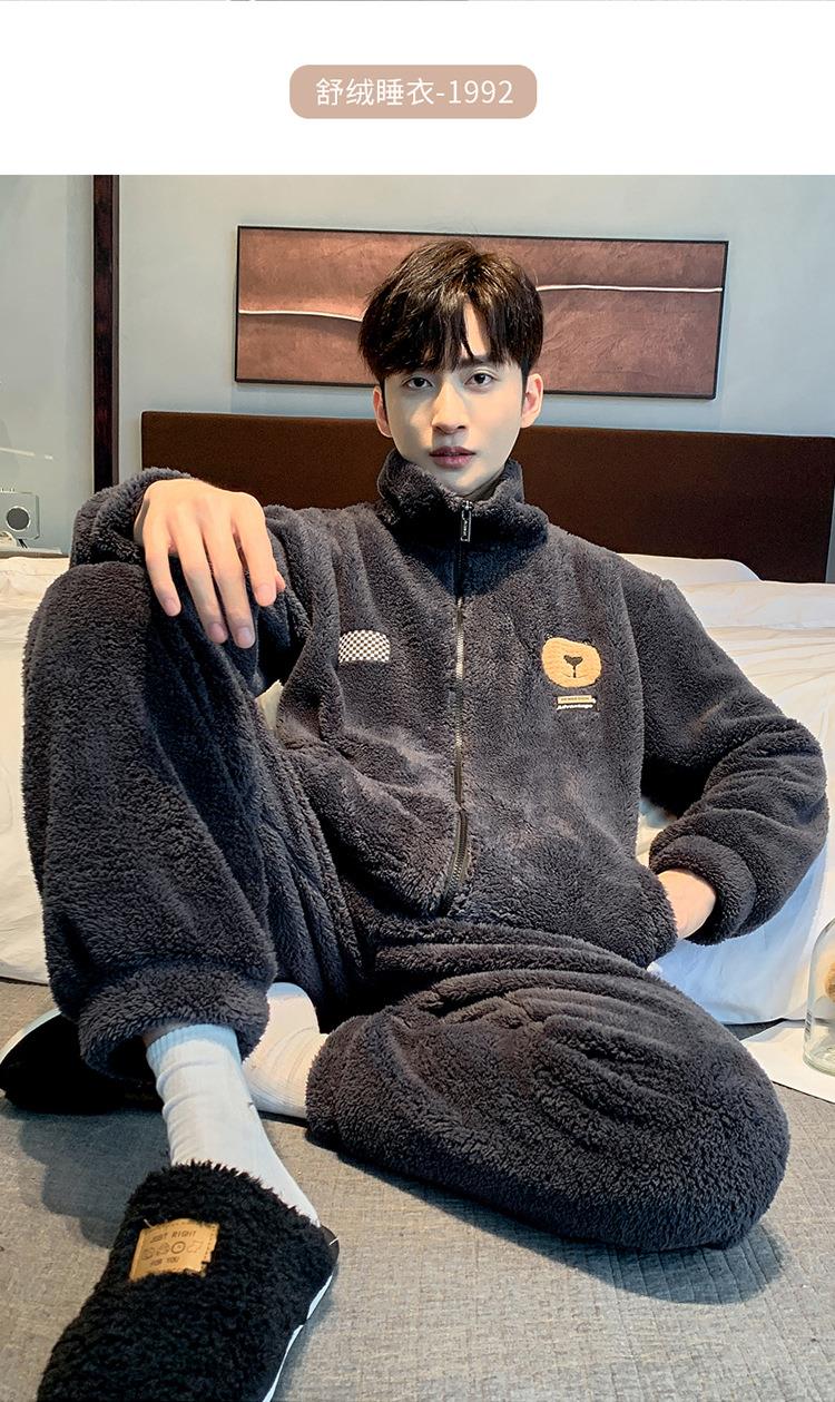法兰绒男士睡衣加绒加厚保暖套装冬季新款宽松加大码珊瑚绒家居服