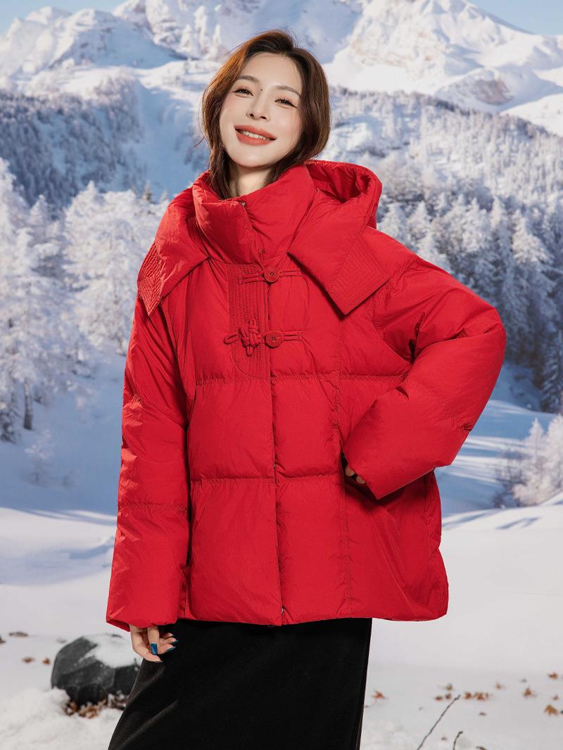 新国标90白鸭绒加肥加大码胖mm200斤中国风盘扣羽绒服女大码2520