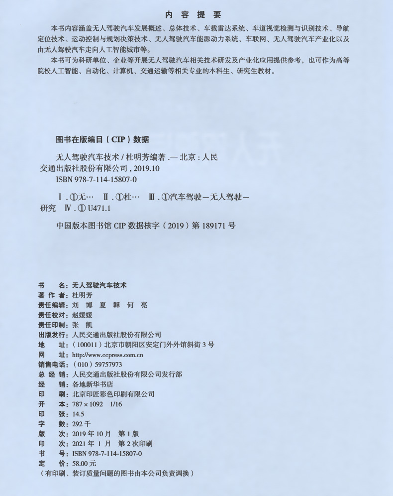 无人驾驶汽车技术人民交通出版社股份有限公司