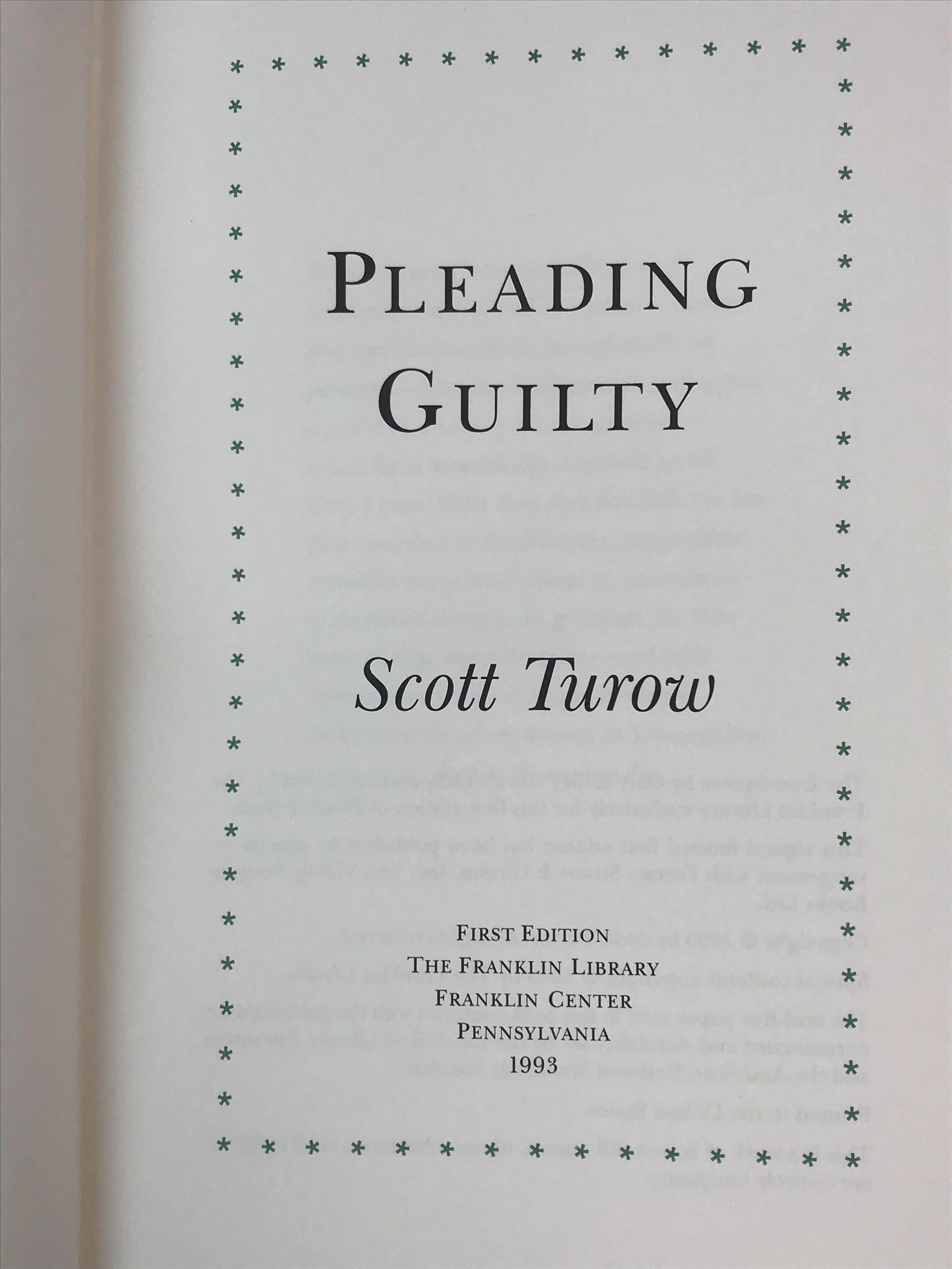 签名首版!斯科特・图罗《认罪》 富兰克林图书馆豪华皮装本