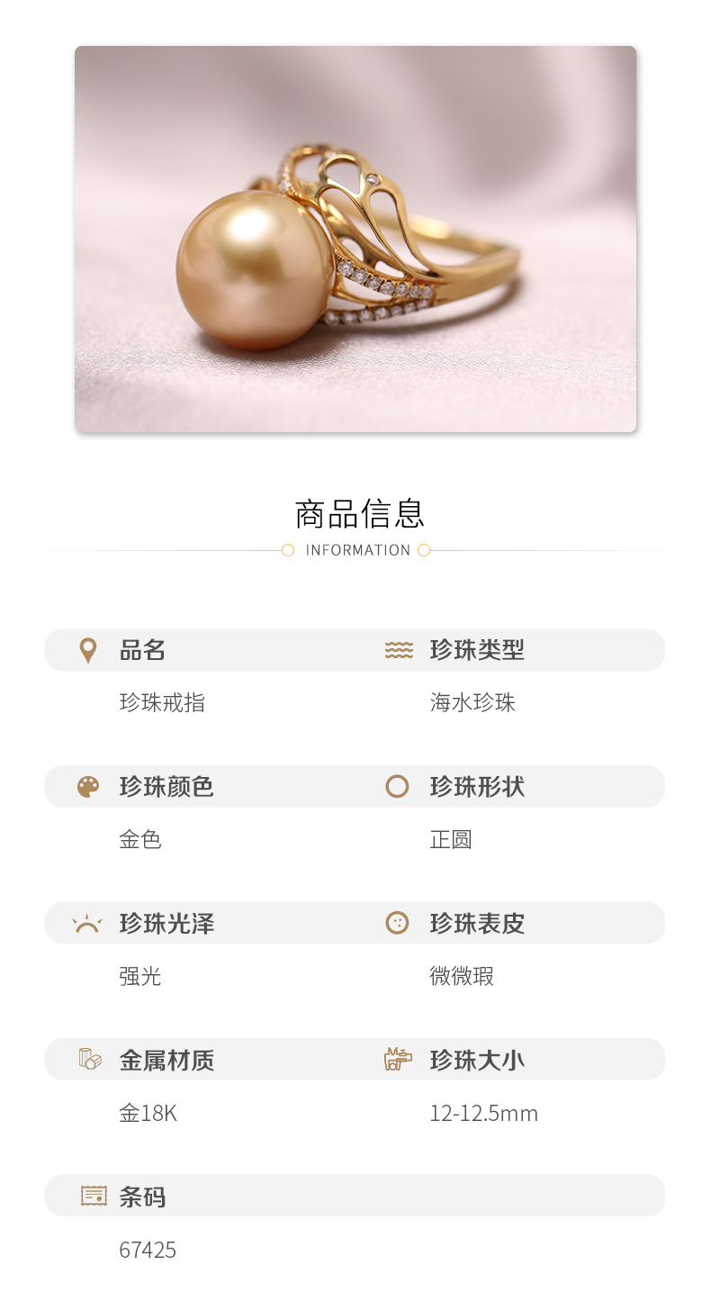 金18K海水珍珠戒指 12-12.5mm 67425