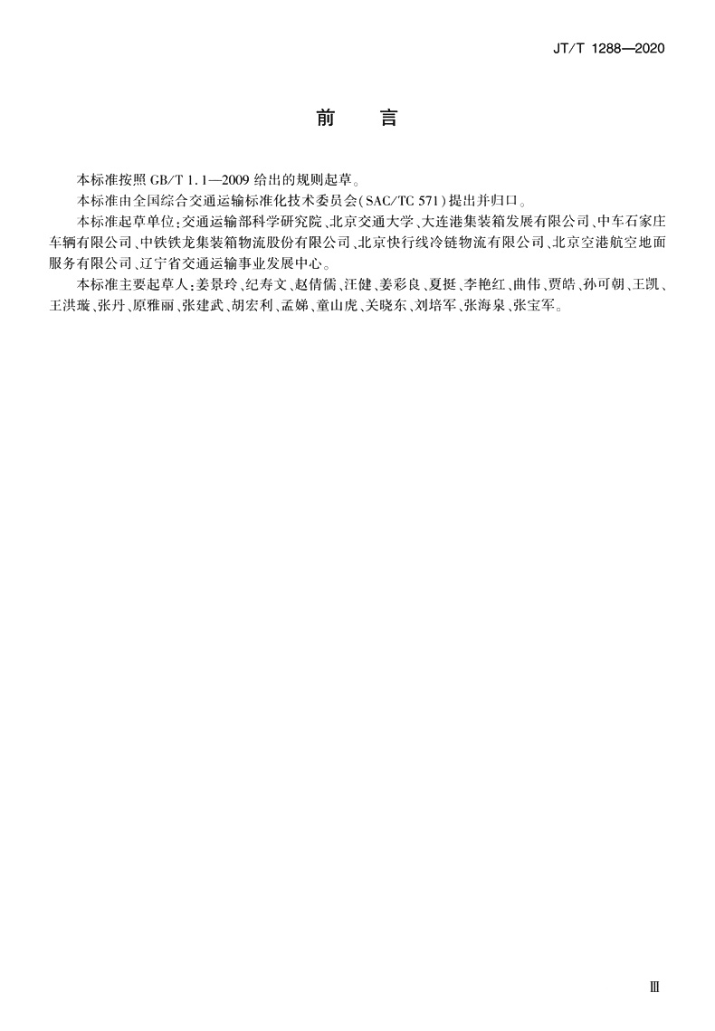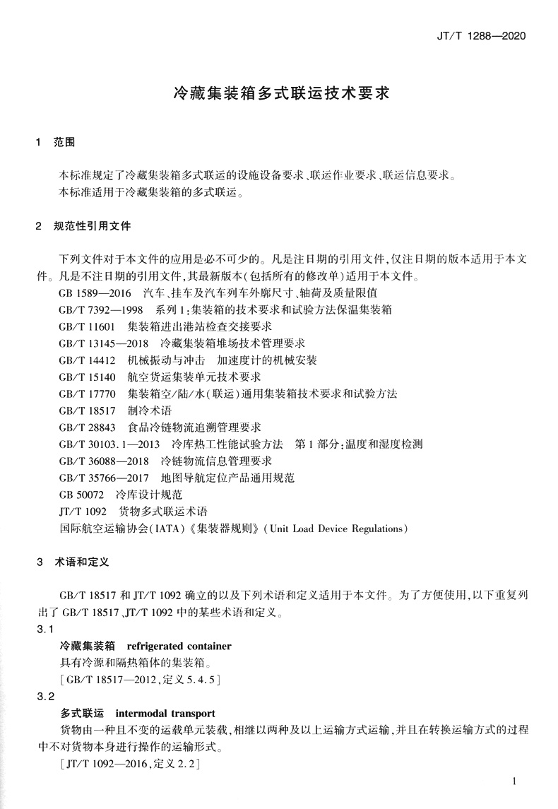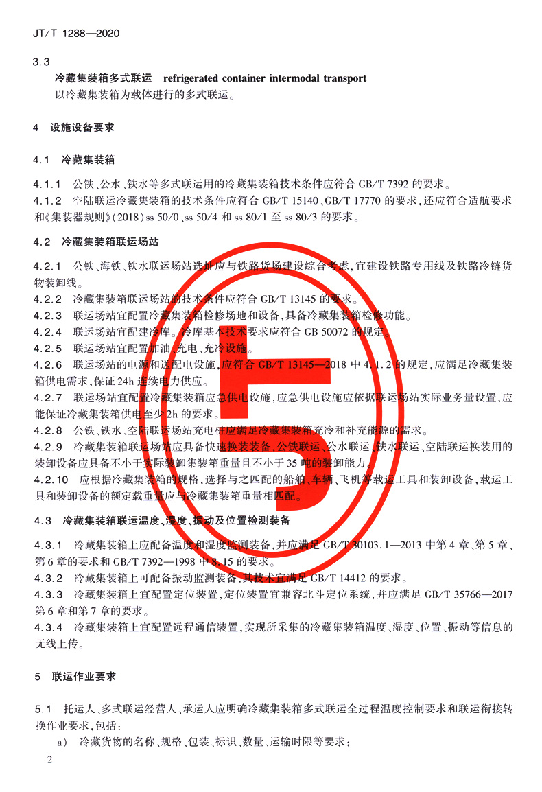 冷藏集装箱多式联运技术要求(JT/T 1288—2020)