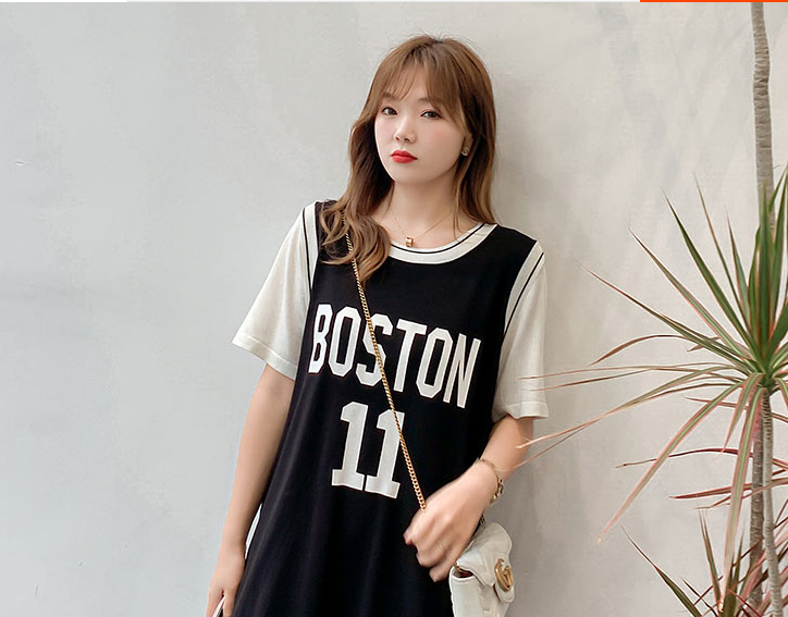 夏季2020新款大码女装ins中长款胖mm超a宽松运动t裙遮肉显瘦直筒