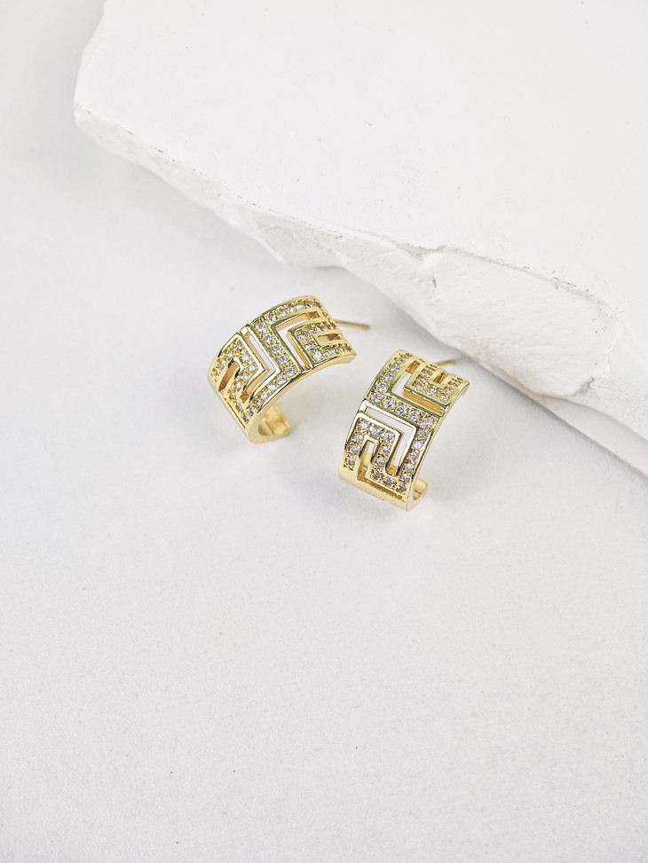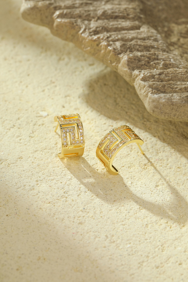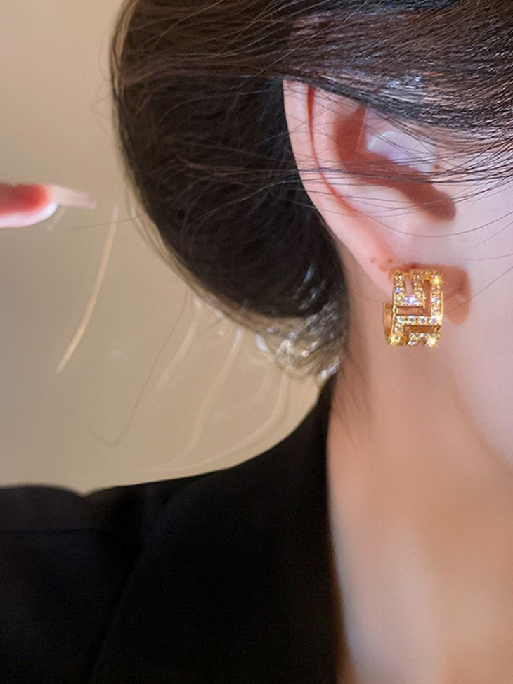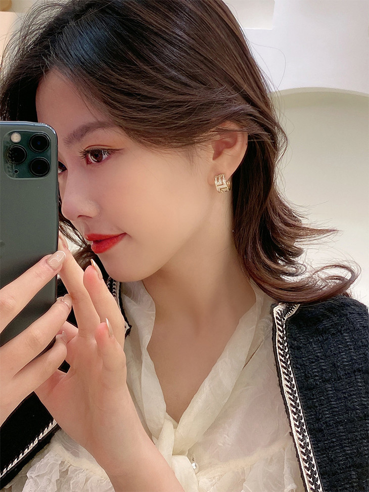 ⚜几何小香 它宛若一件精美的艺术品,每一处都让人无法移开视线 金色的半弧形设计与L形镂空元素结合 一颗颗璀璨的锆石被巧妙地嵌入其中 简洁的线条勾勒出奢华感,简约却不简单