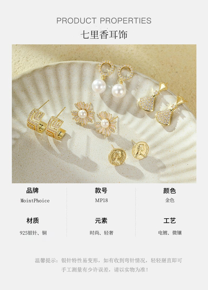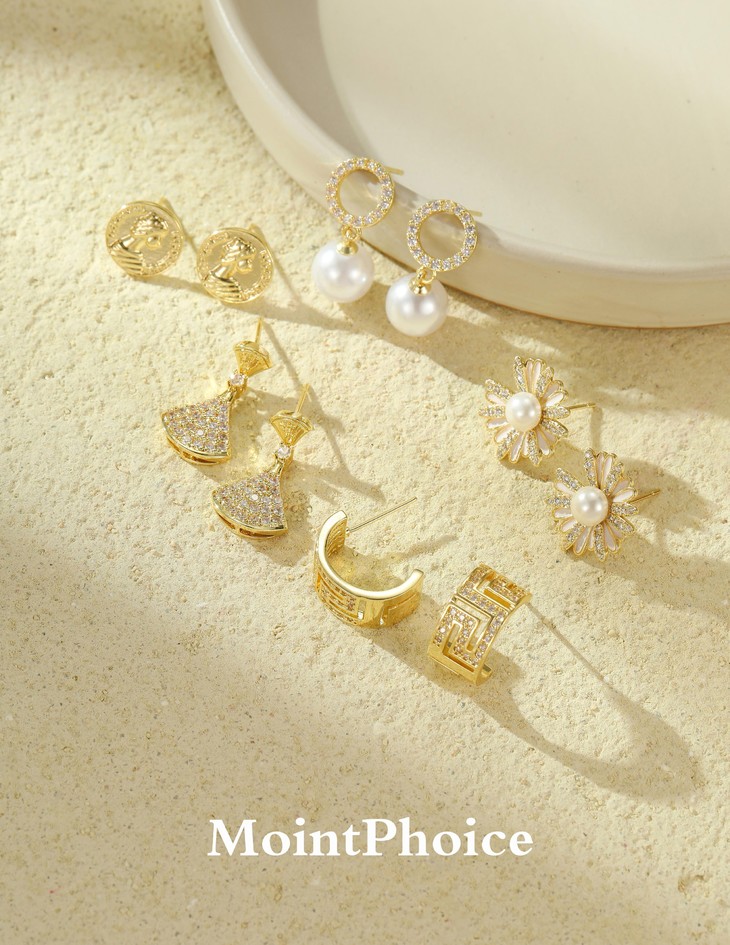 对于爱美的我们来说 无论是通勤办公室OL风,还是周末约会休闲 一款精致的耳饰绝对能提升日常look MointPhoice新出了一系列非常好看的金色耳饰 一盒有5对不同的耳钉,都是独一份的好搭款式 耳针材质选用防敏的s925银针 全都是下了血本的!做工质感不要太棒