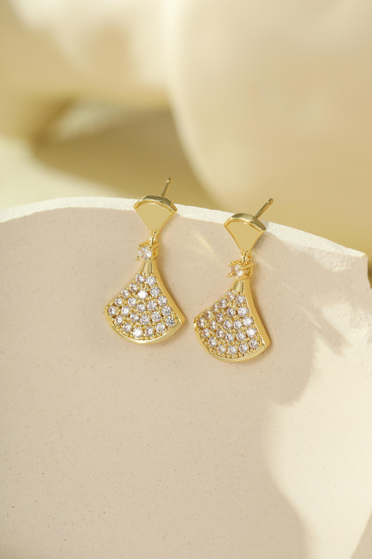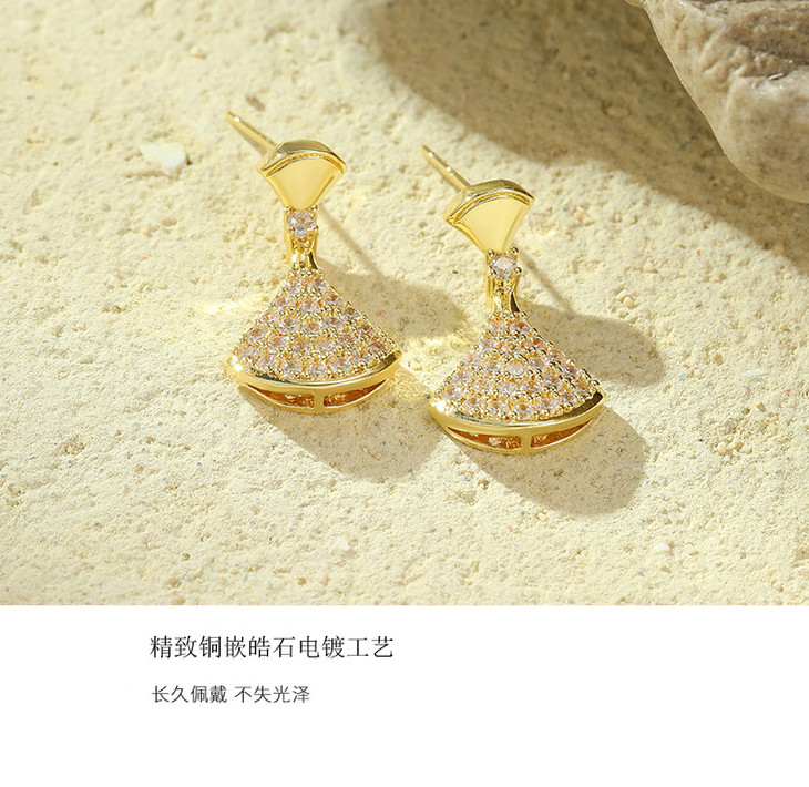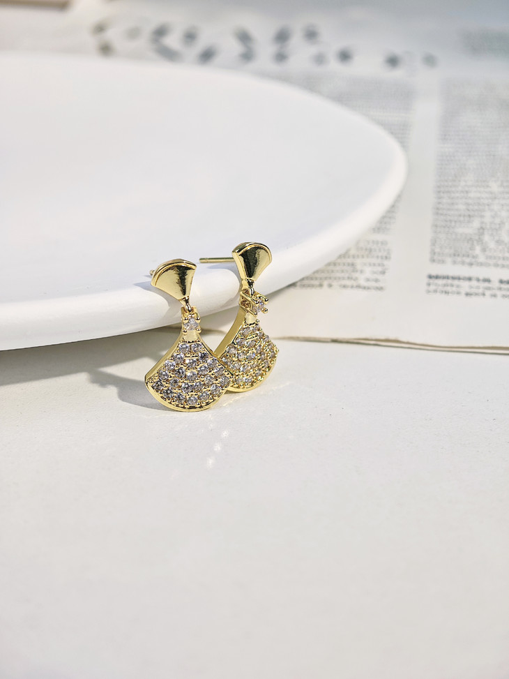 ⚜小裙子耳钉 刘亦菲的同款气质耳饰,也是非常有特色了! 它设计灵感来源于轻奢优雅的小裙子,整体造型经典大方 镶嵌着满钻的金色扇形坠面就像飞扬的裙摆 每一个角度都能捕捉到光线,blingbling的很抢眼 谁戴谁就是神仙姐姐本仙😜