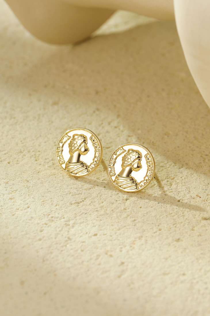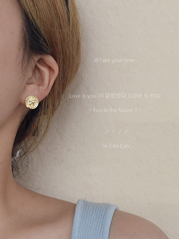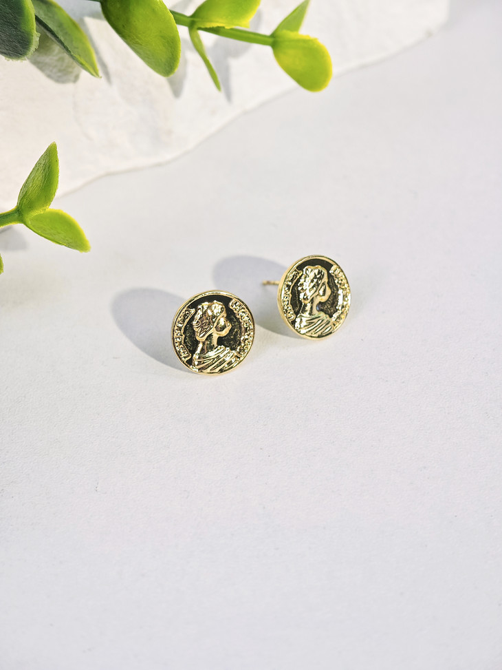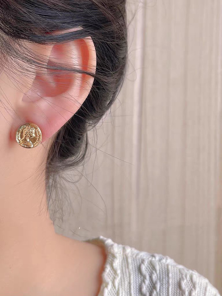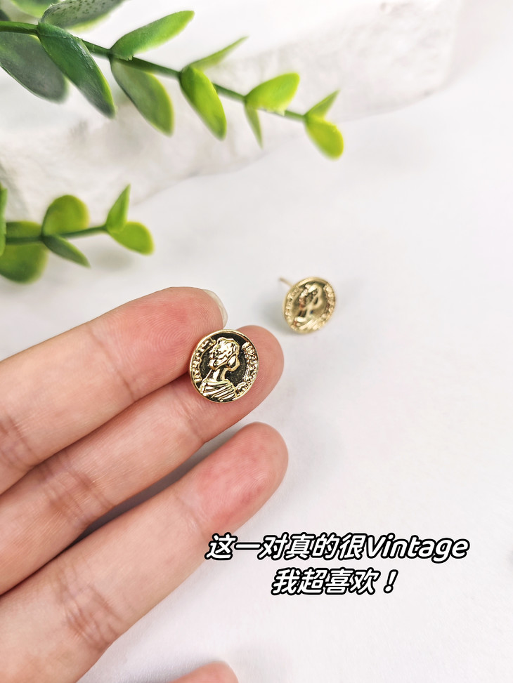 ⚜金币耳钉 属于Vintage风格的耳钉 小巧的金色圆形硬币样式,光泽度巨好 上面中古人像浮雕有种油画感般的感觉 一整个拿捏复古气质,高级感拉满