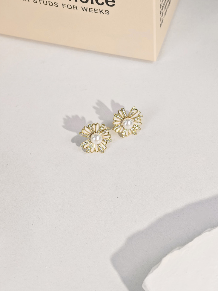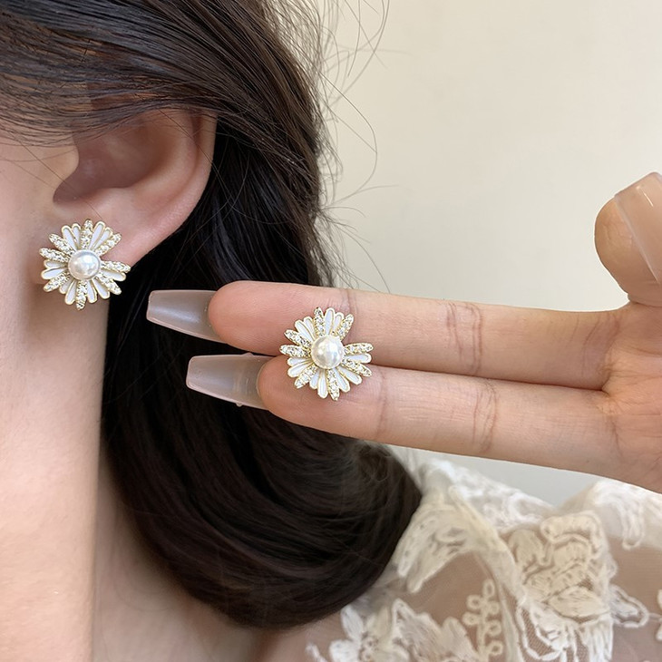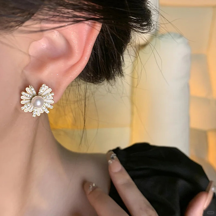 ⚜雏菊耳钉 仿佛在微风中轻轻摇曳的小雏菊 耀眼的碎钻洒在花瓣上🌼 珍珠的点缀,更是增添了几分温柔 精致与柔美相结合,简直美翻了~
