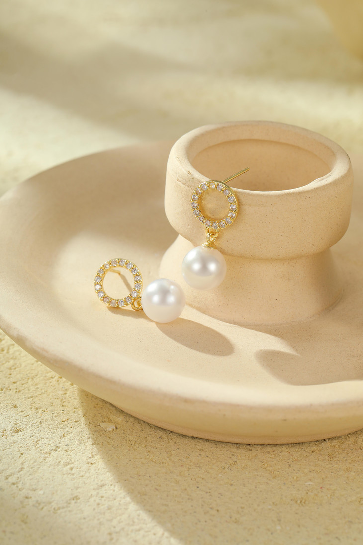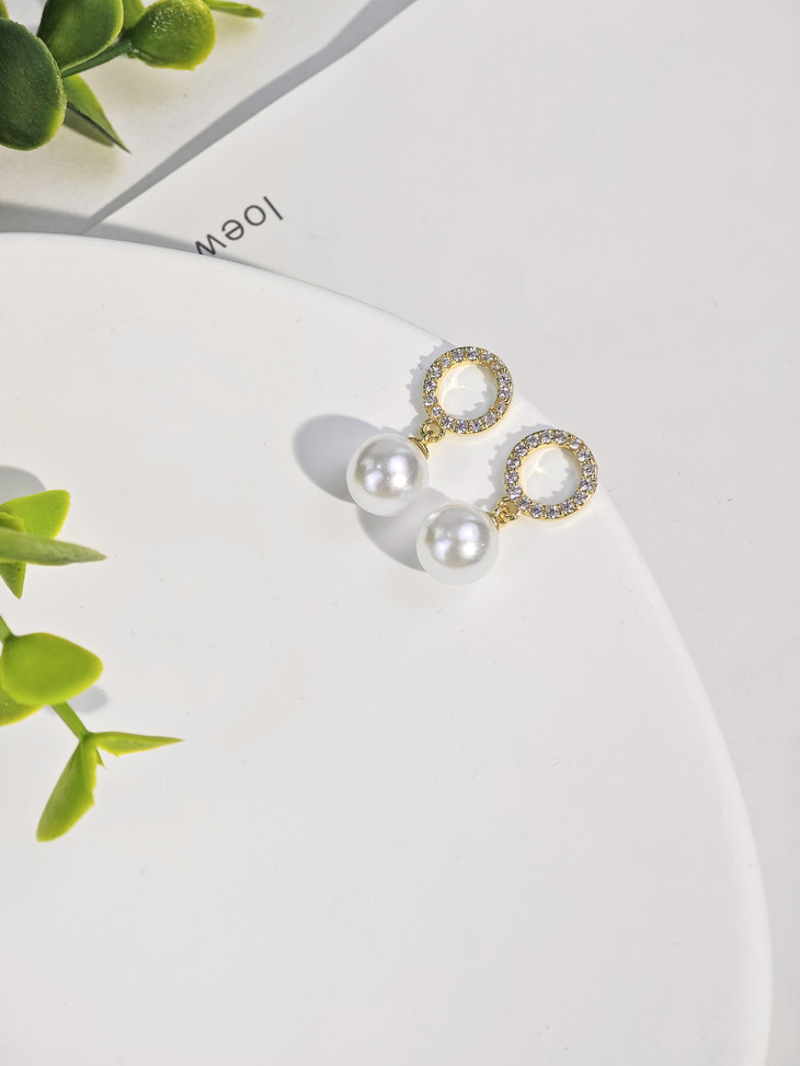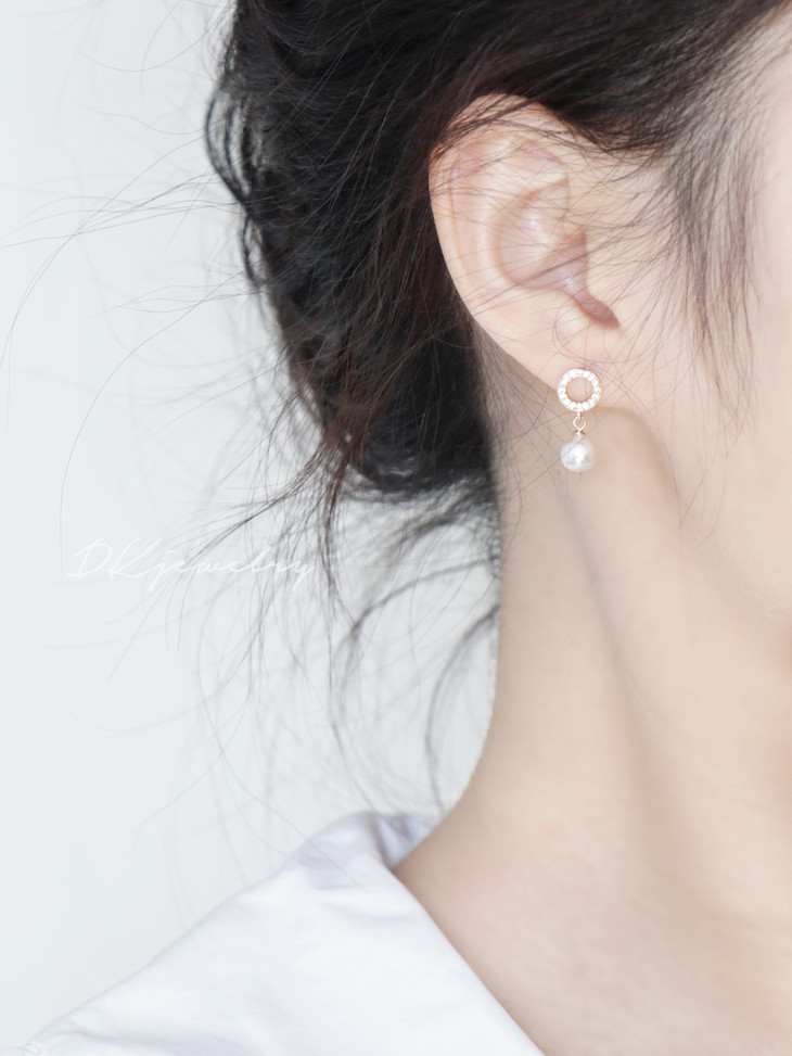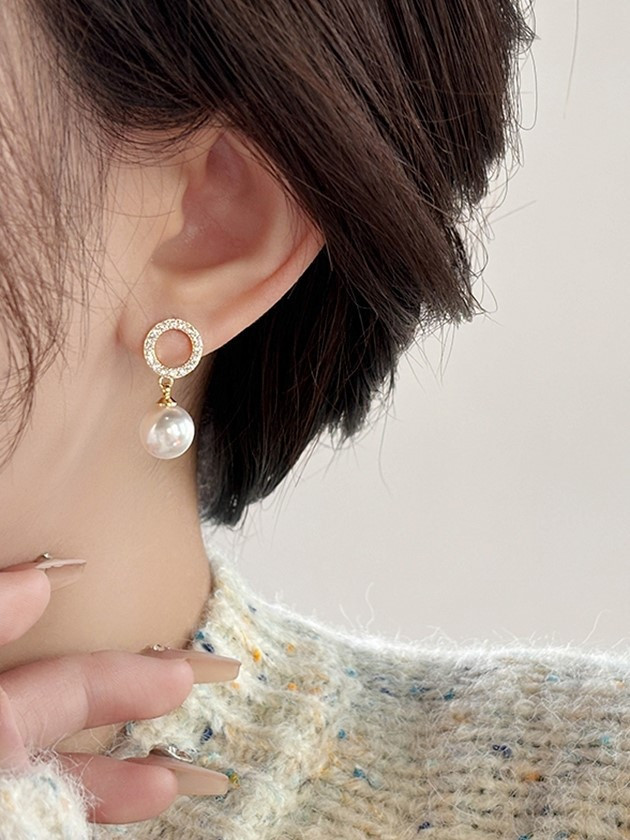 ⚜圈圈珍珠 法式极简圈圈搭配爆闪的锆石,质感满分! 坠着一颗温润莹亮的珍珠,在耳畔轻轻摇曳,更添几分柔美 上耳氛围感美女~就是素颜佩戴也不会出错