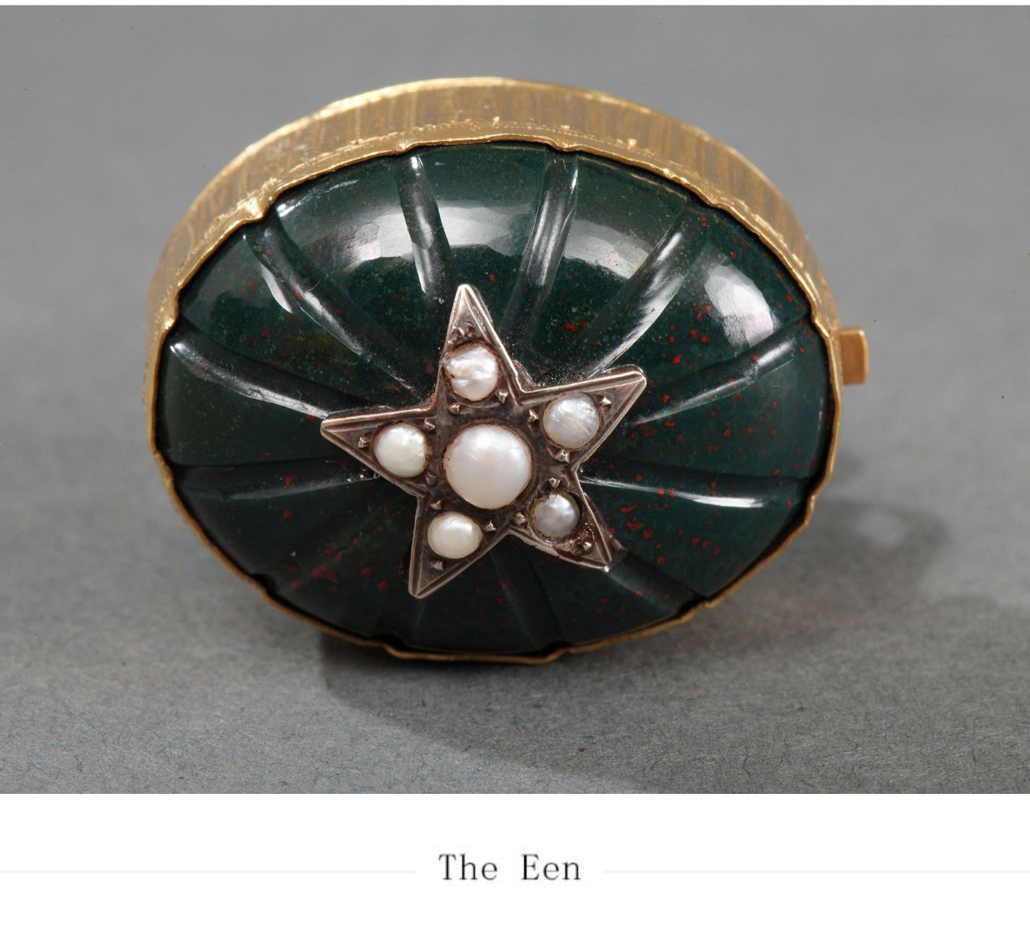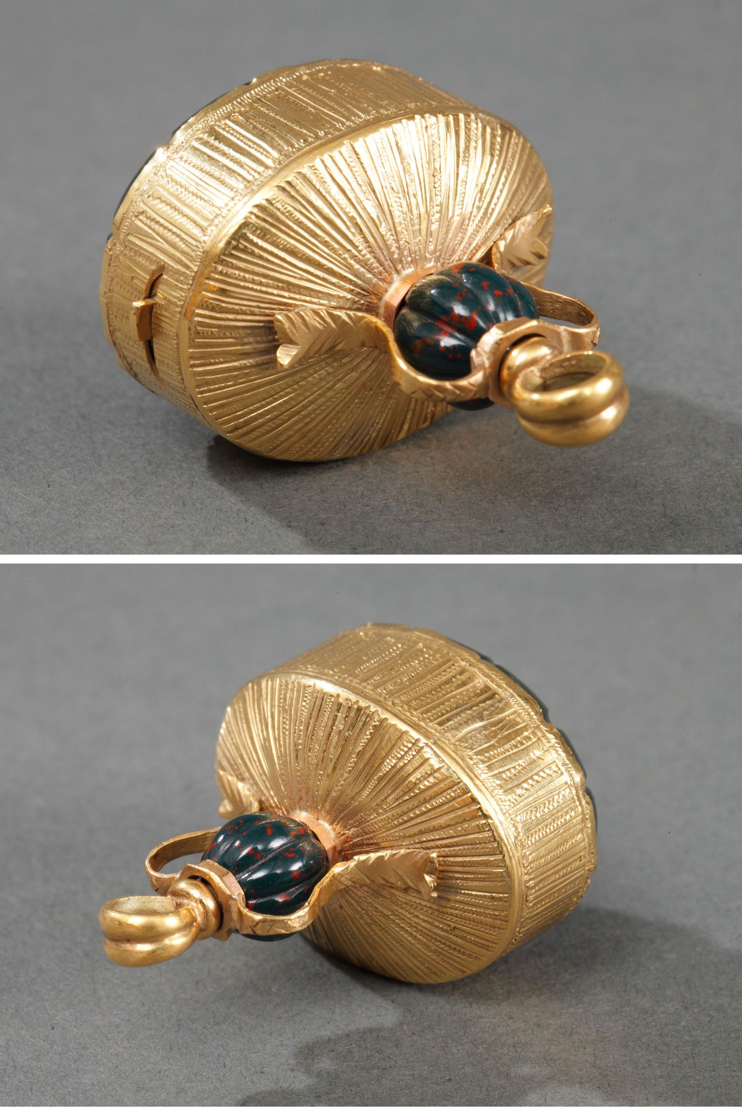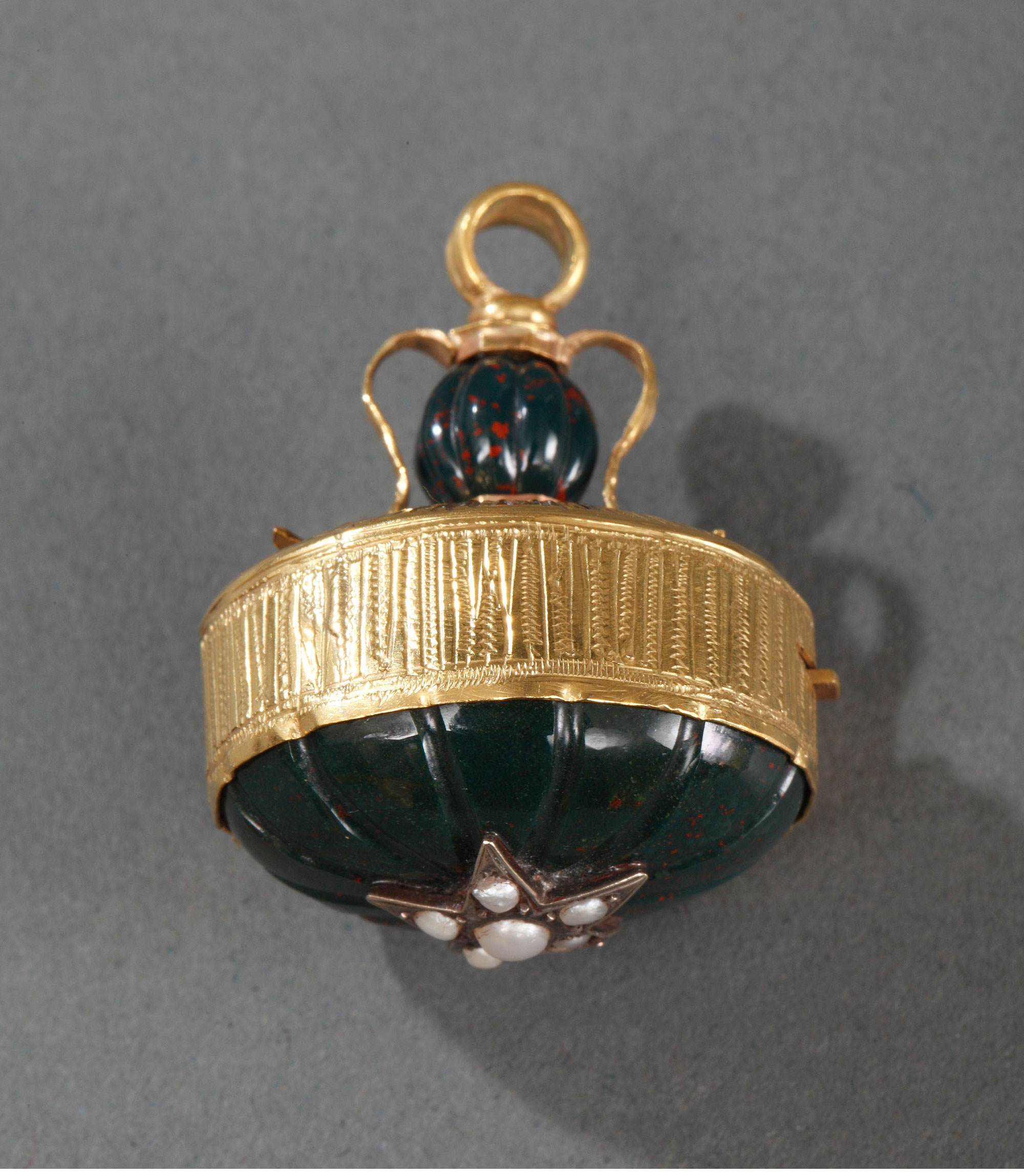 独角鹿西洋古董法国18K金镶嵌血滴石野生珍珠八音盒挂坠
