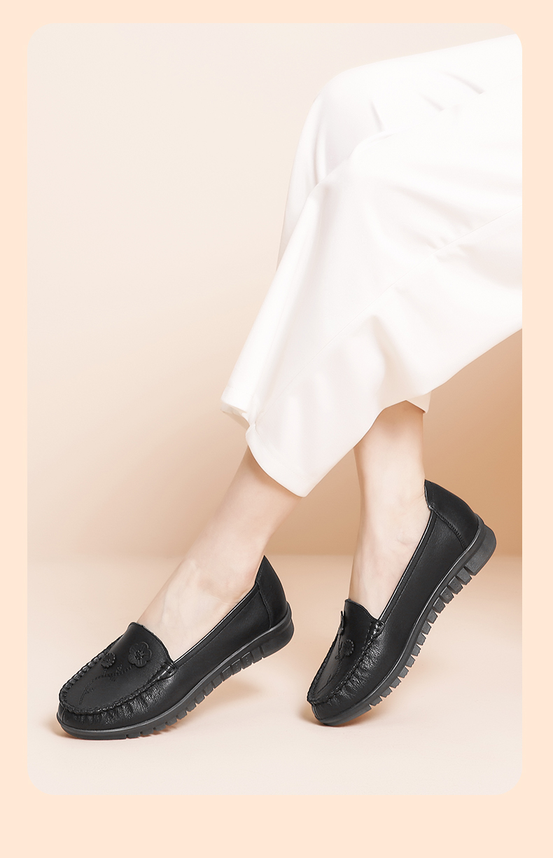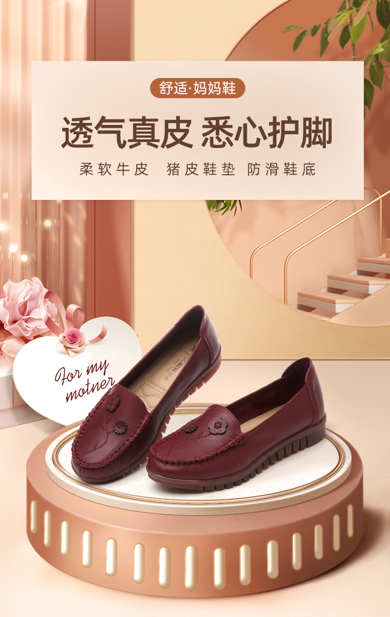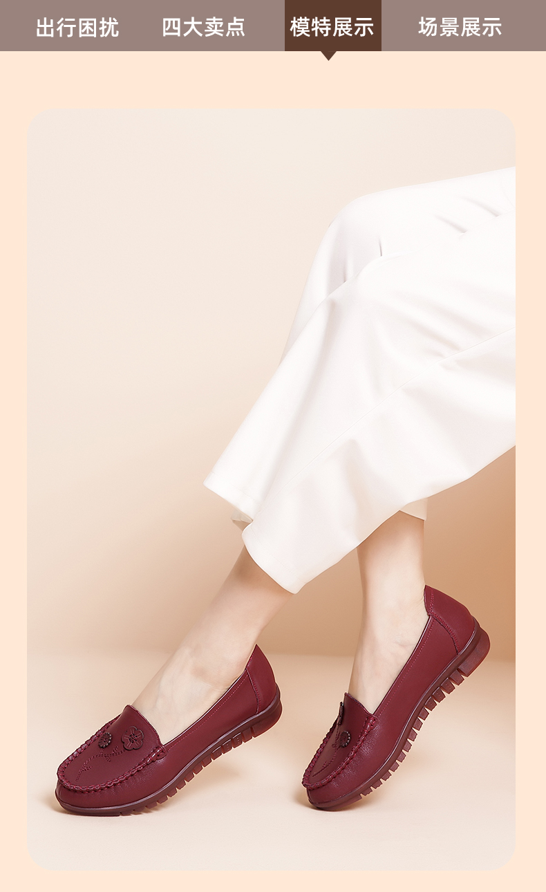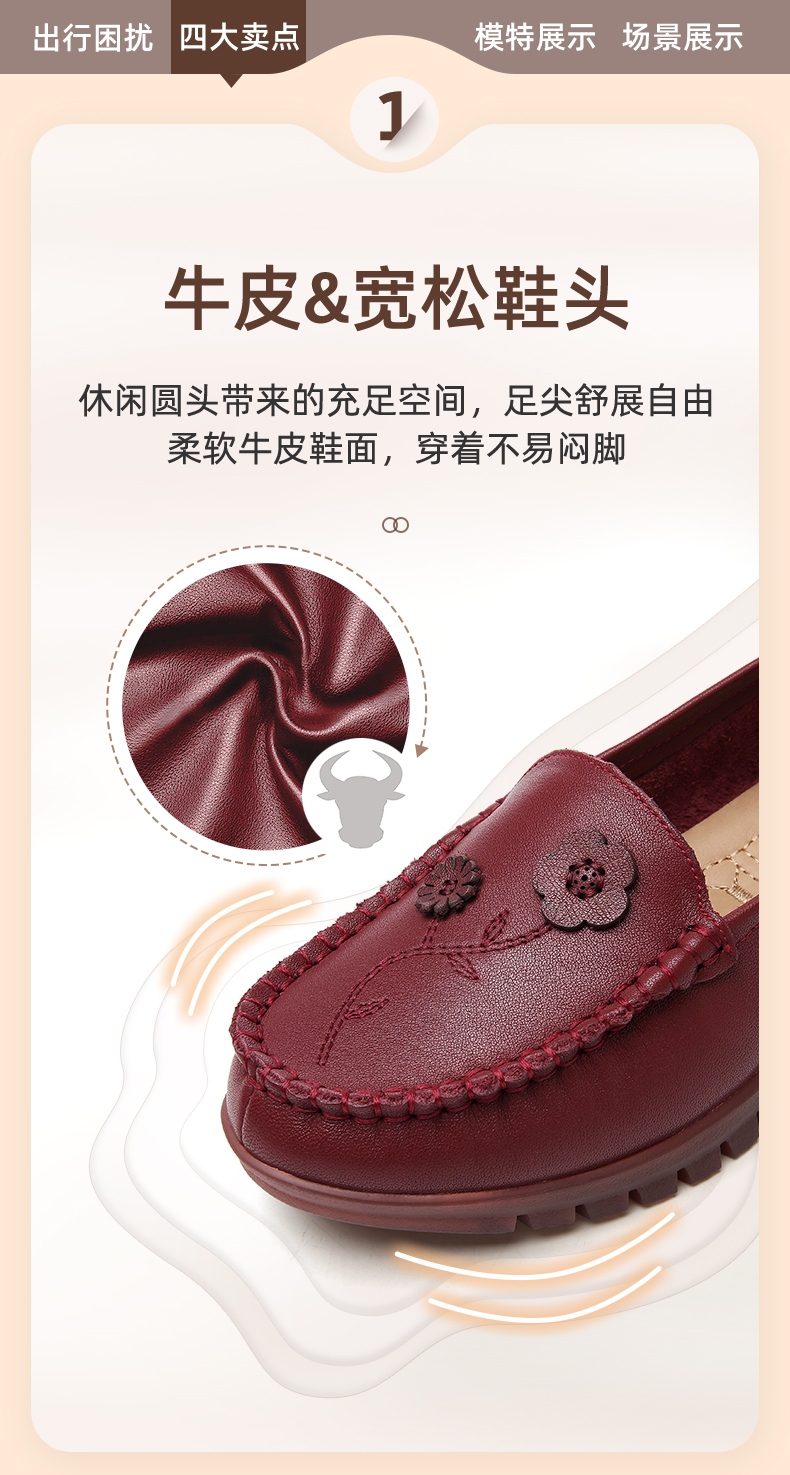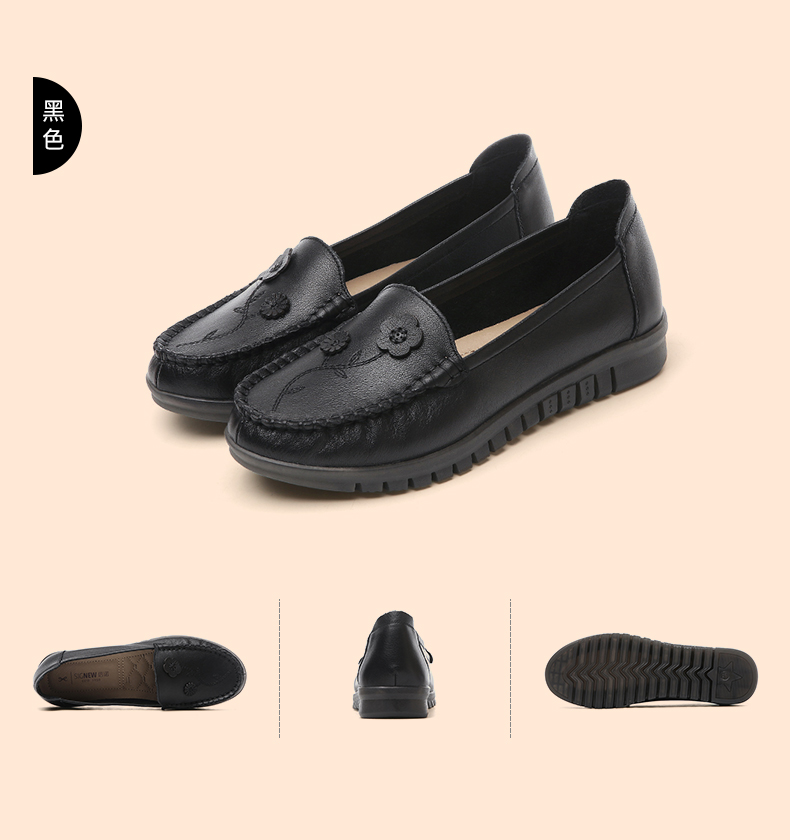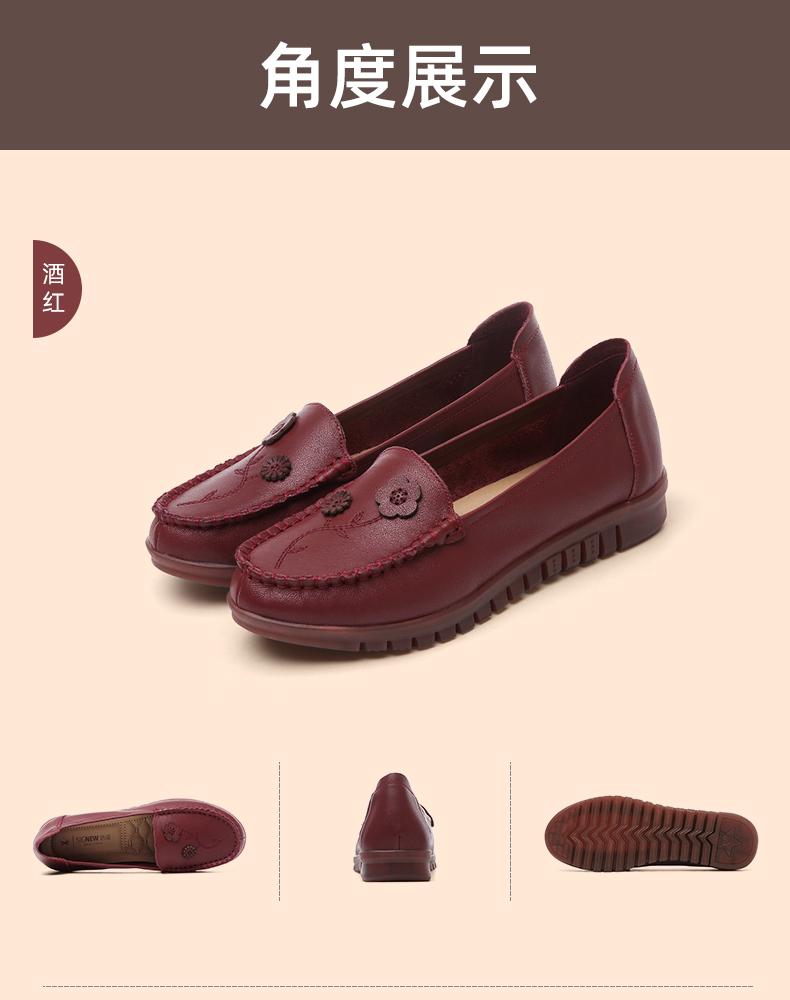信诺真皮舒适女鞋2022新款春季牛筋底妈妈鞋超软中老年人软底皮鞋22C2537-3