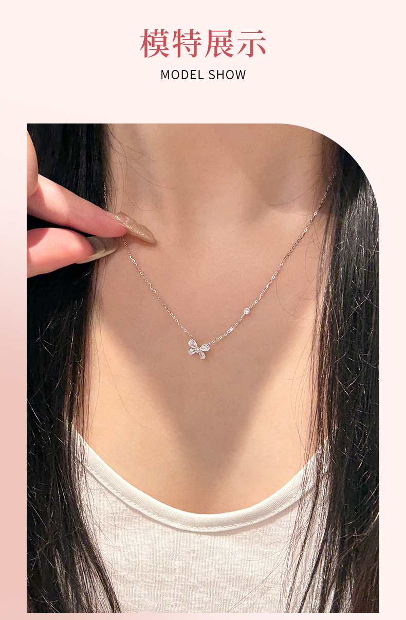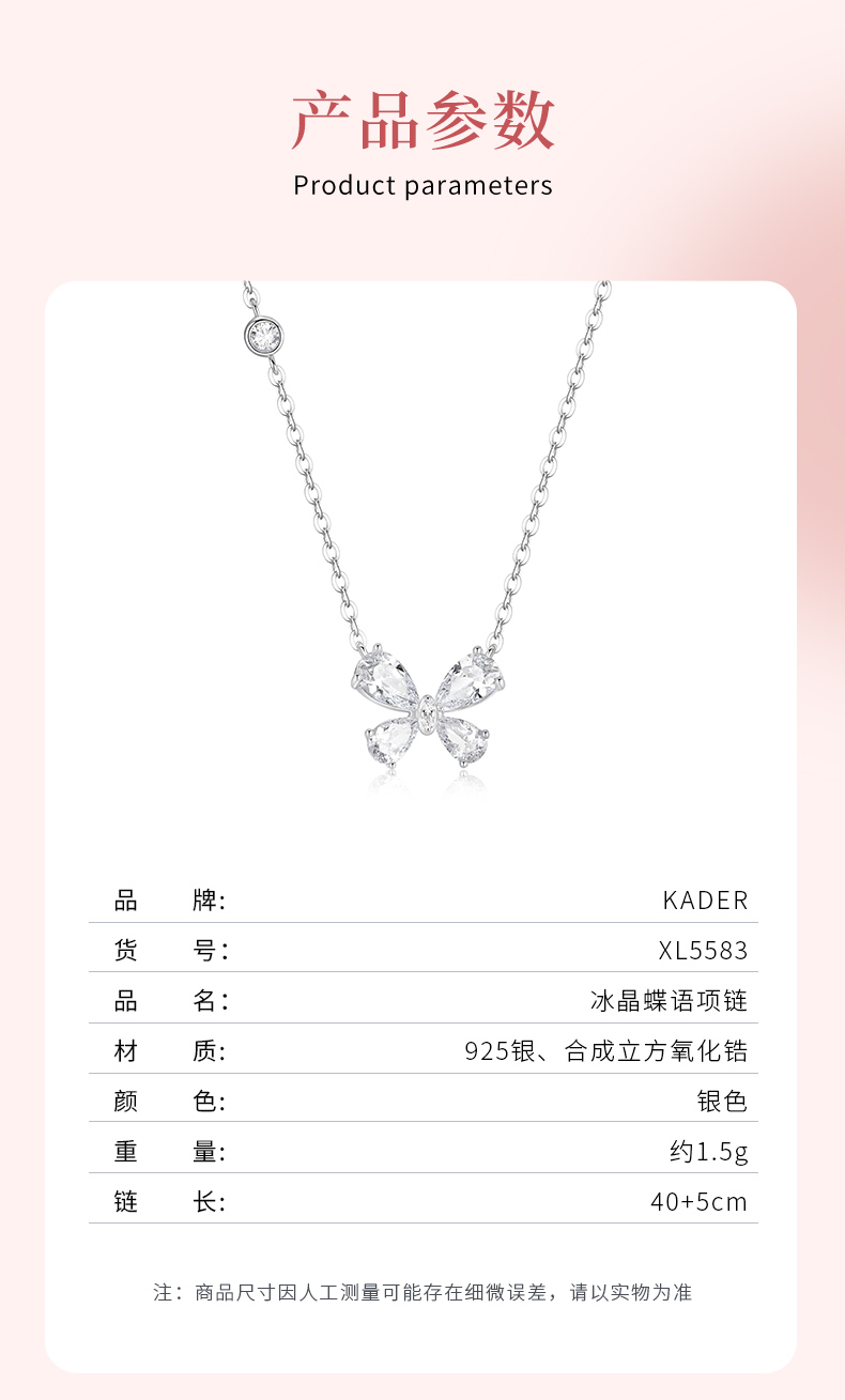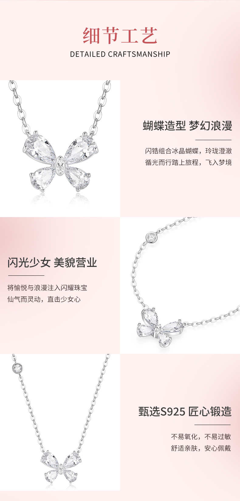 卡蒂罗KADER 冰晶蝶语项链 925银甜美满铺闪锆蝴蝶造型设计锁骨链 闪光少女自由浪漫