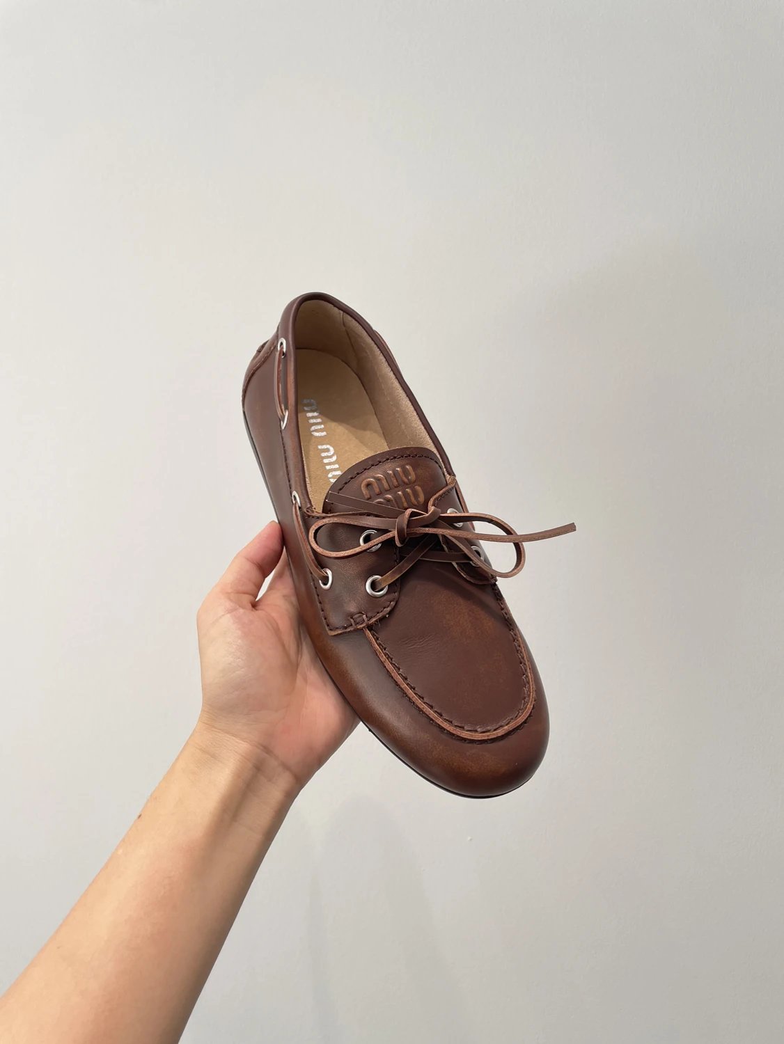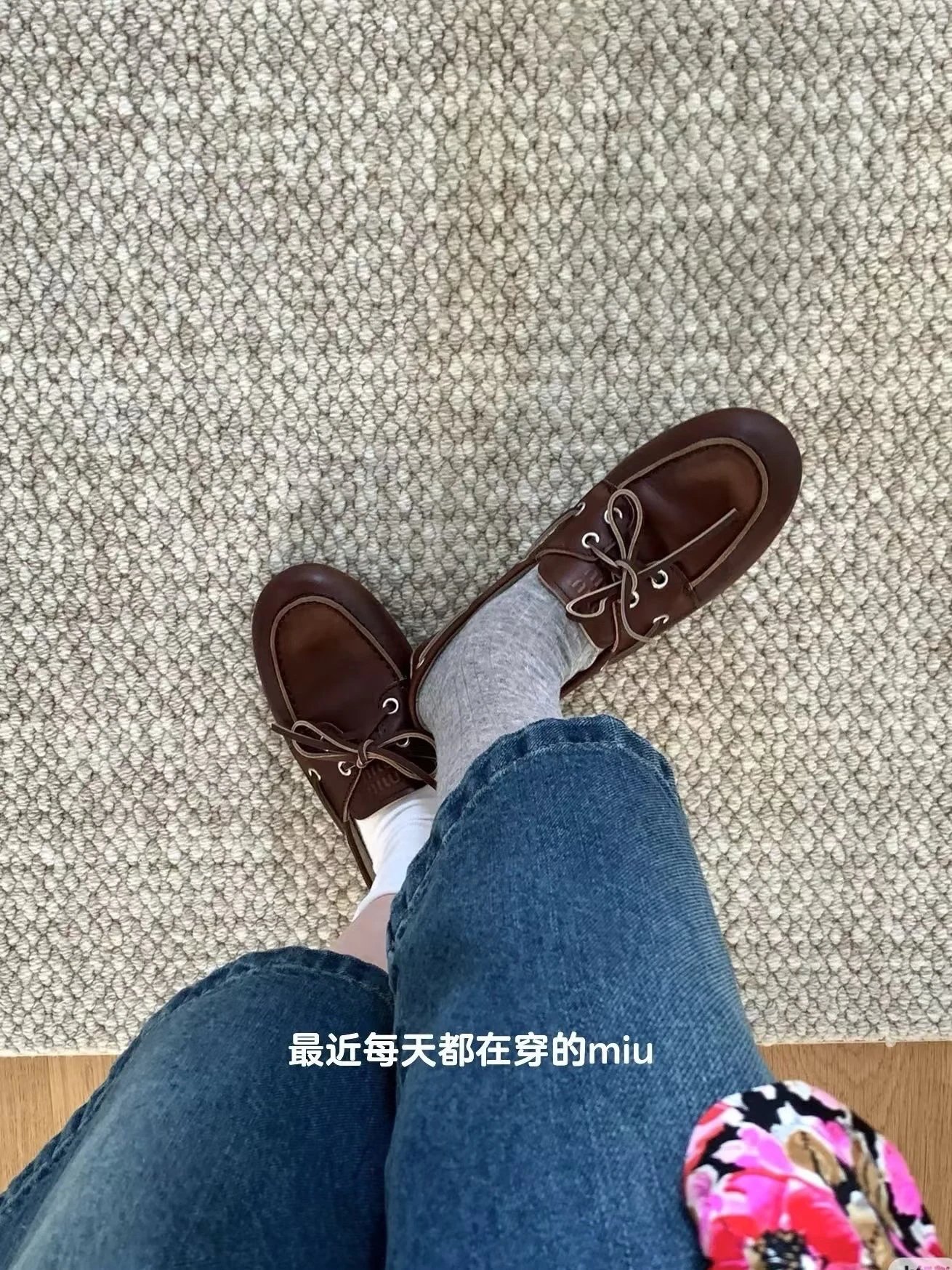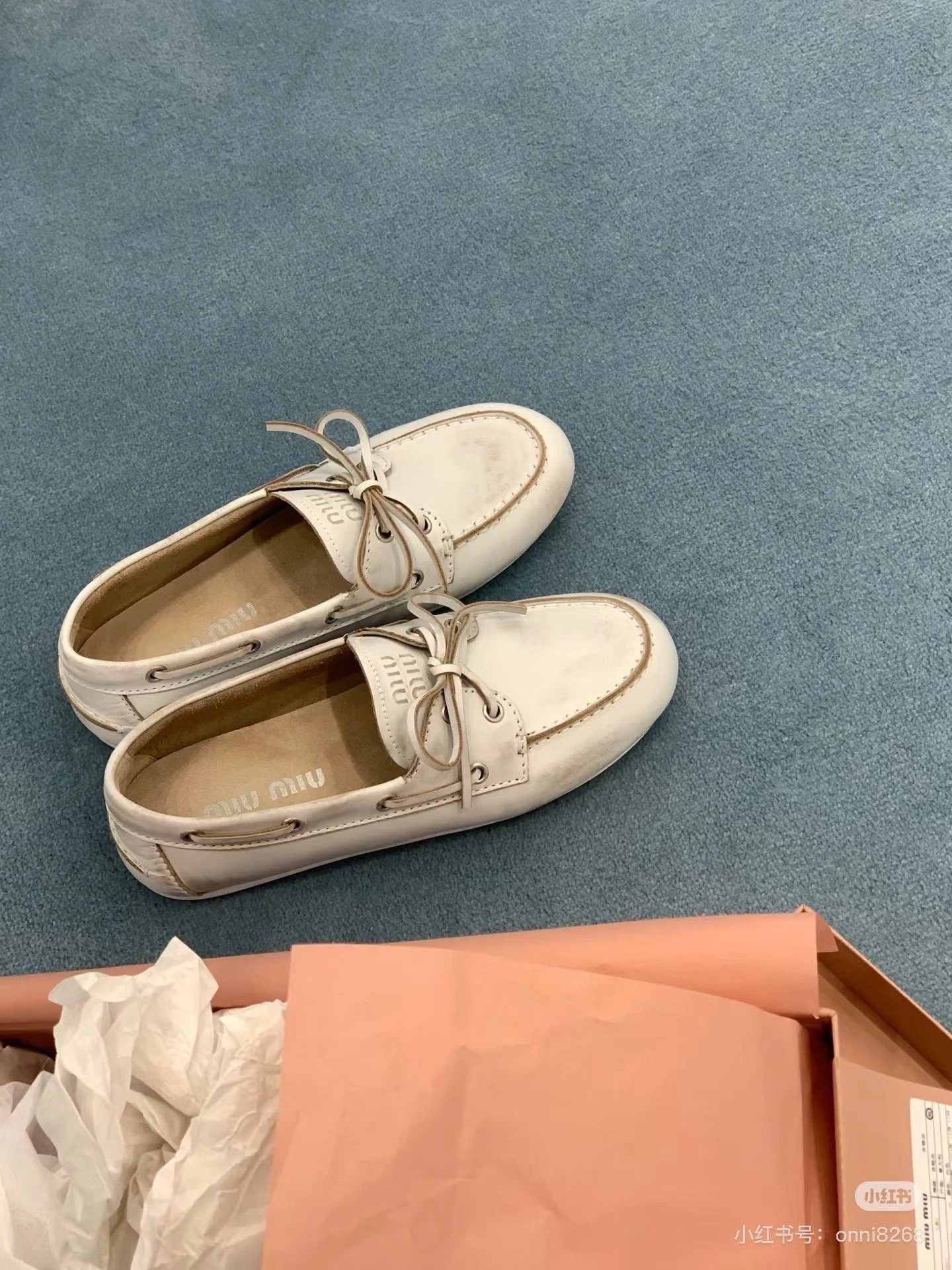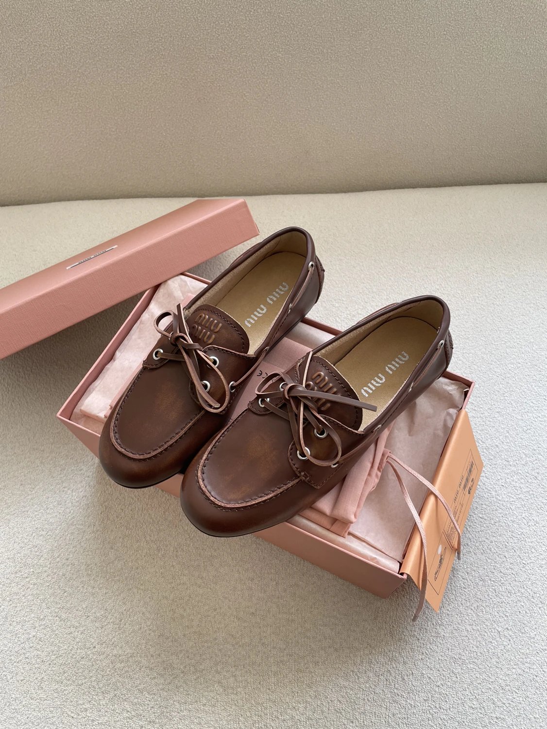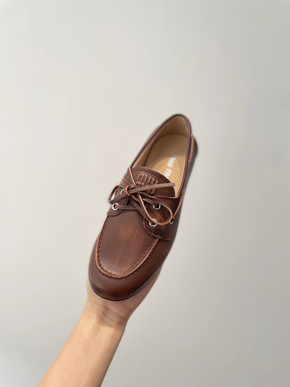 重磅渠道 miu 帆船乐福 做旧擦色系带乐福鞋 舒适软底复古单鞋皮鞋