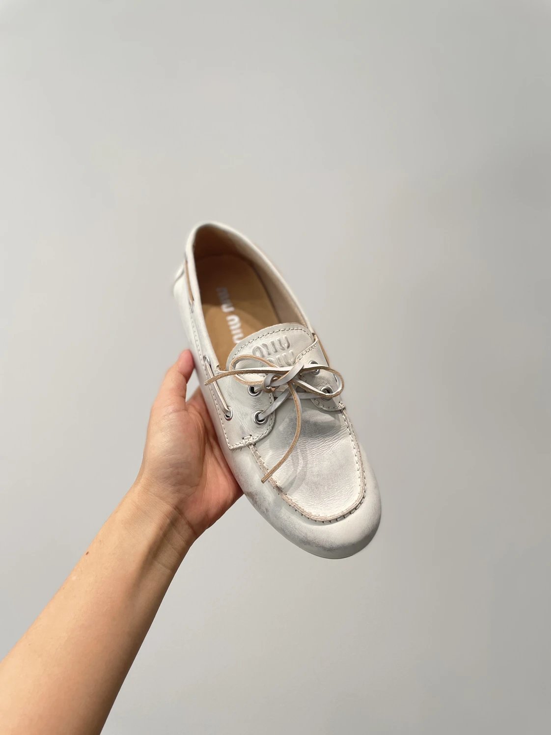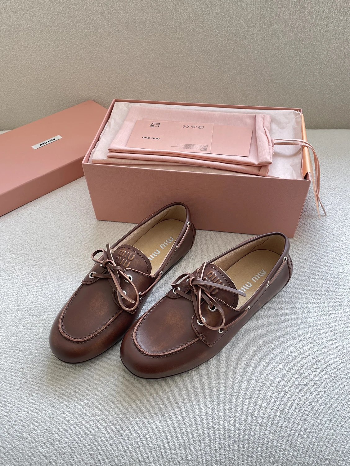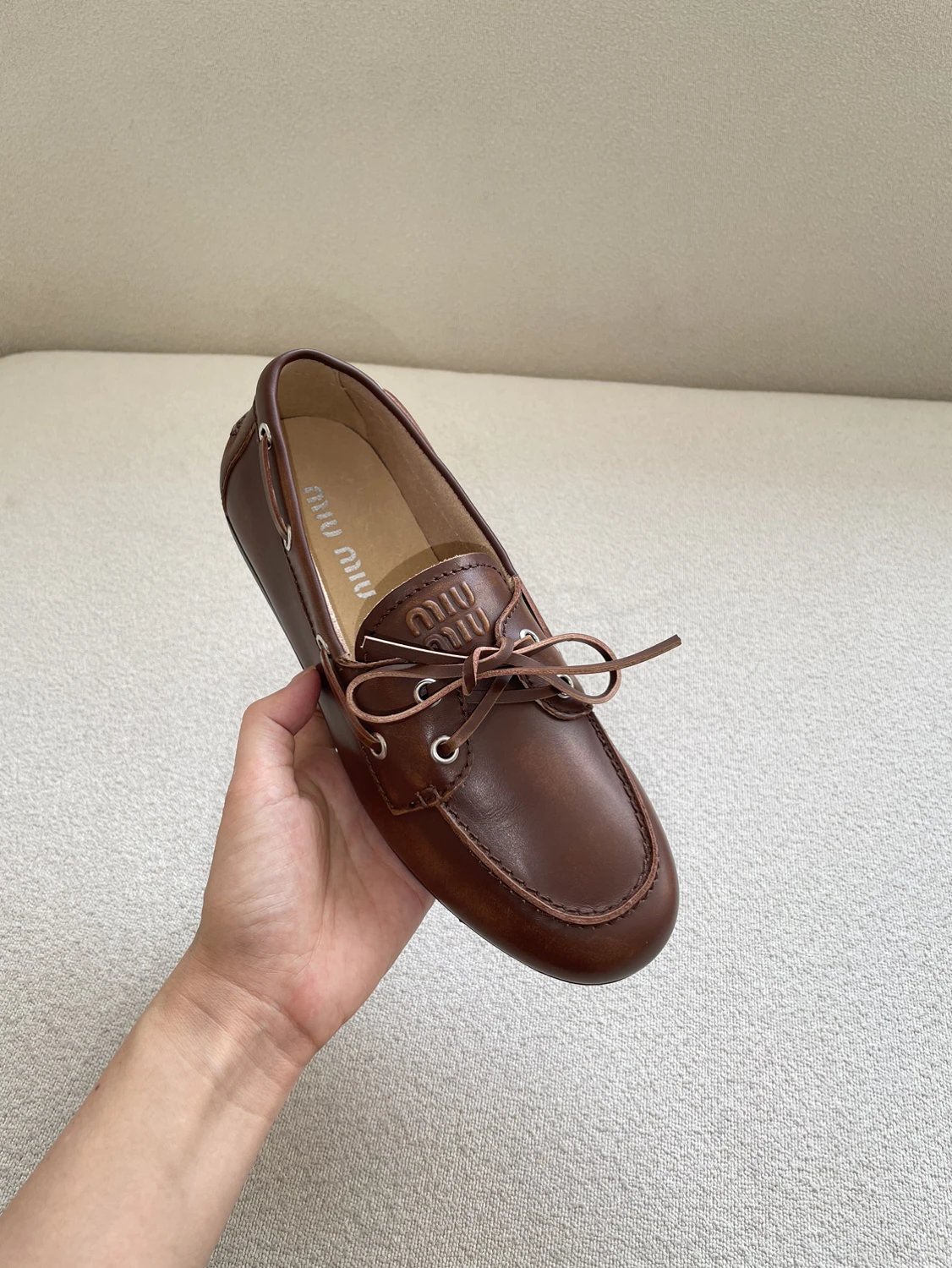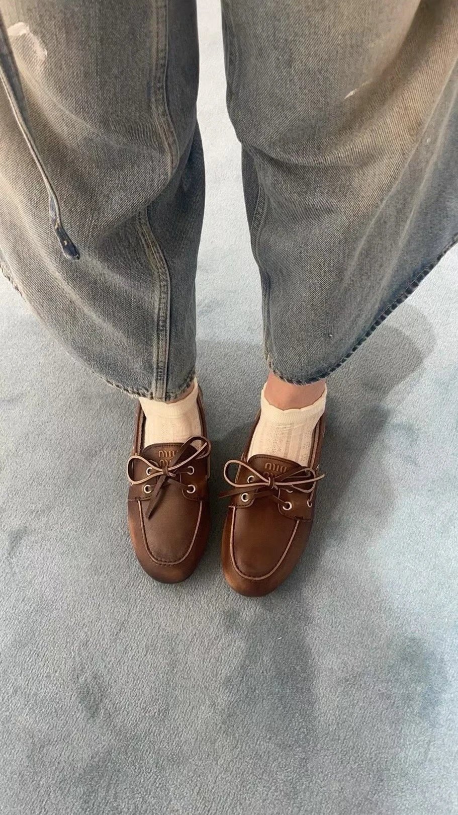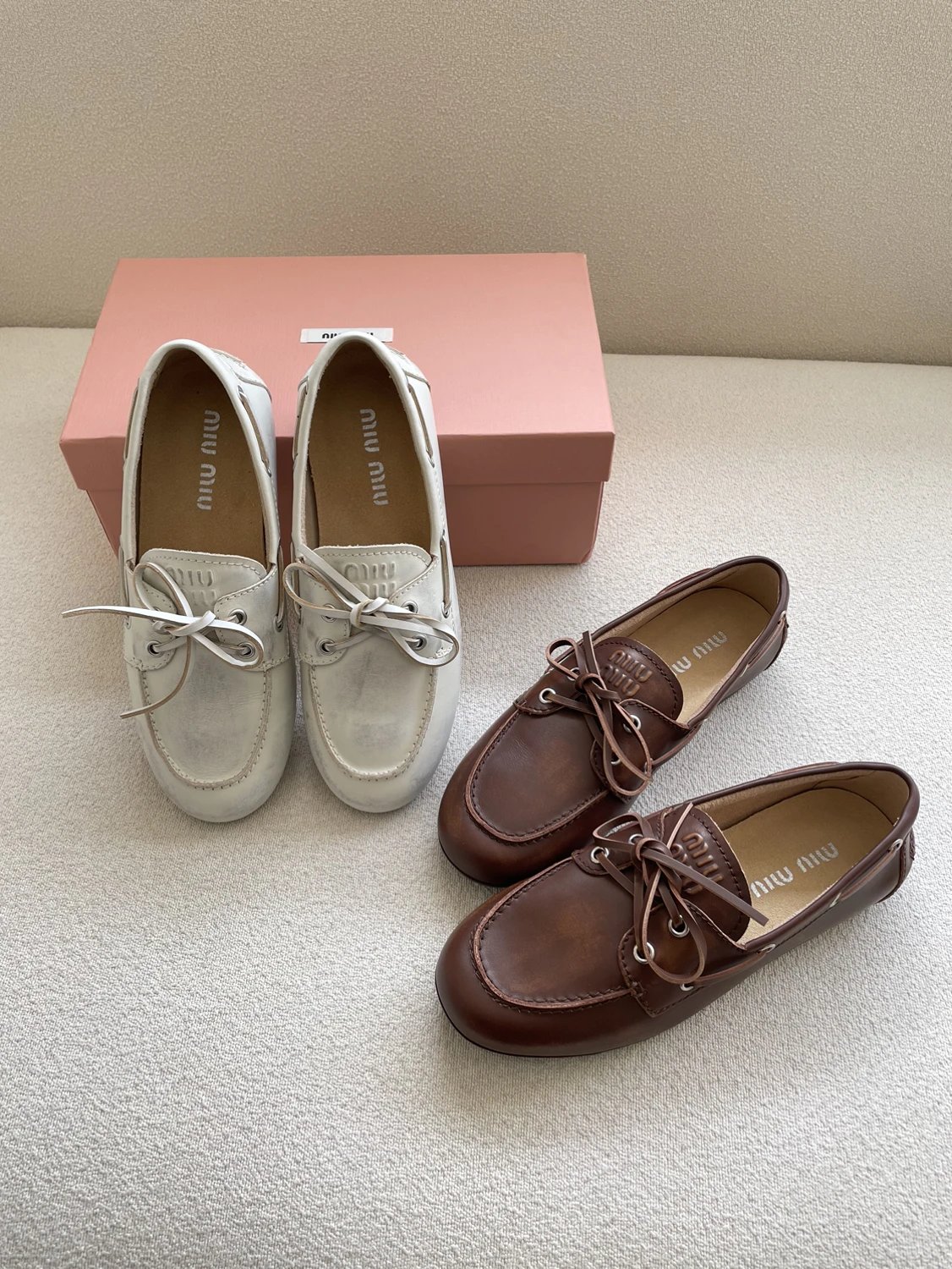 重磅渠道 miu 帆船乐福 做旧擦色系带乐福鞋 舒适软底复古单鞋皮鞋