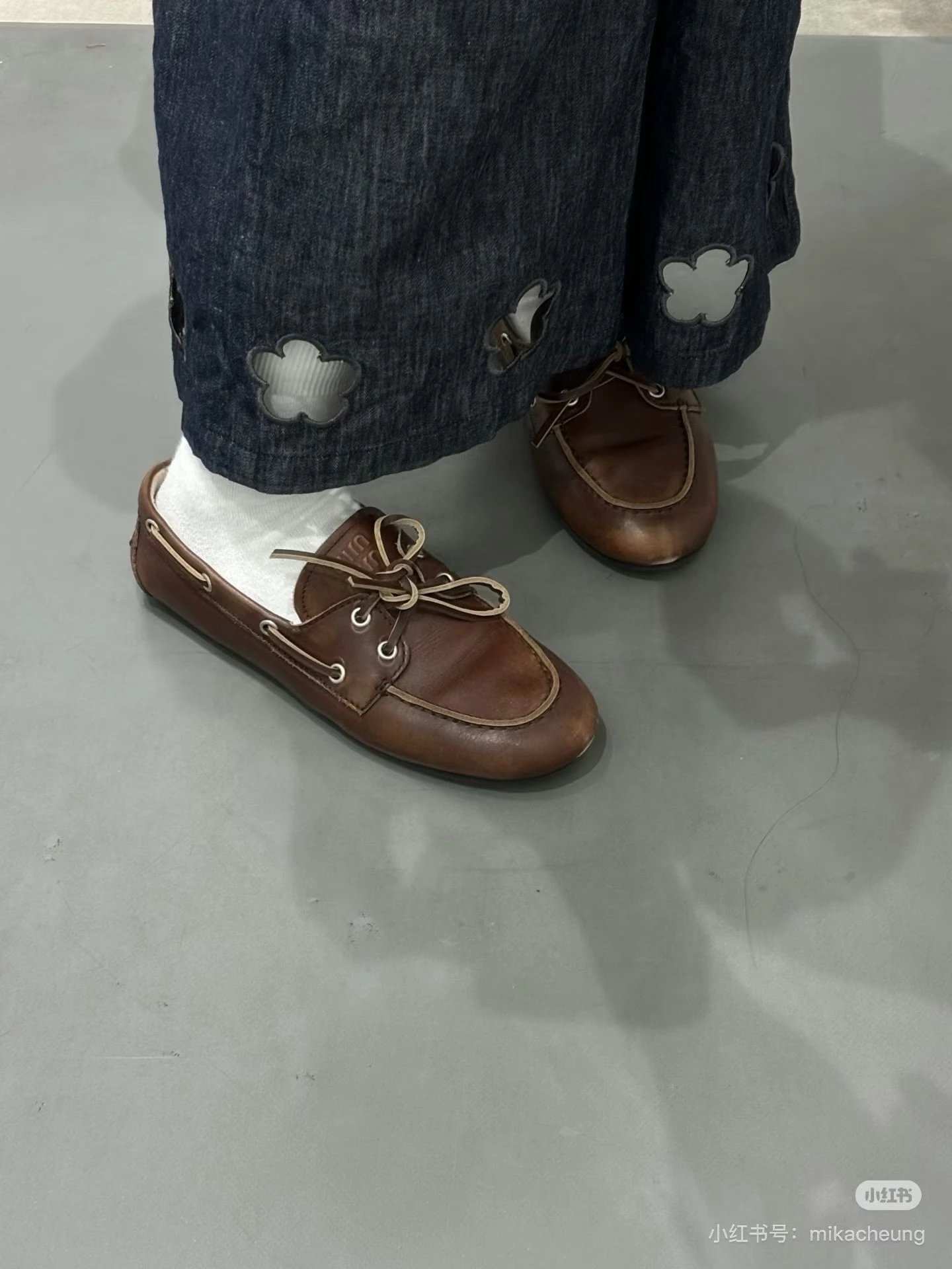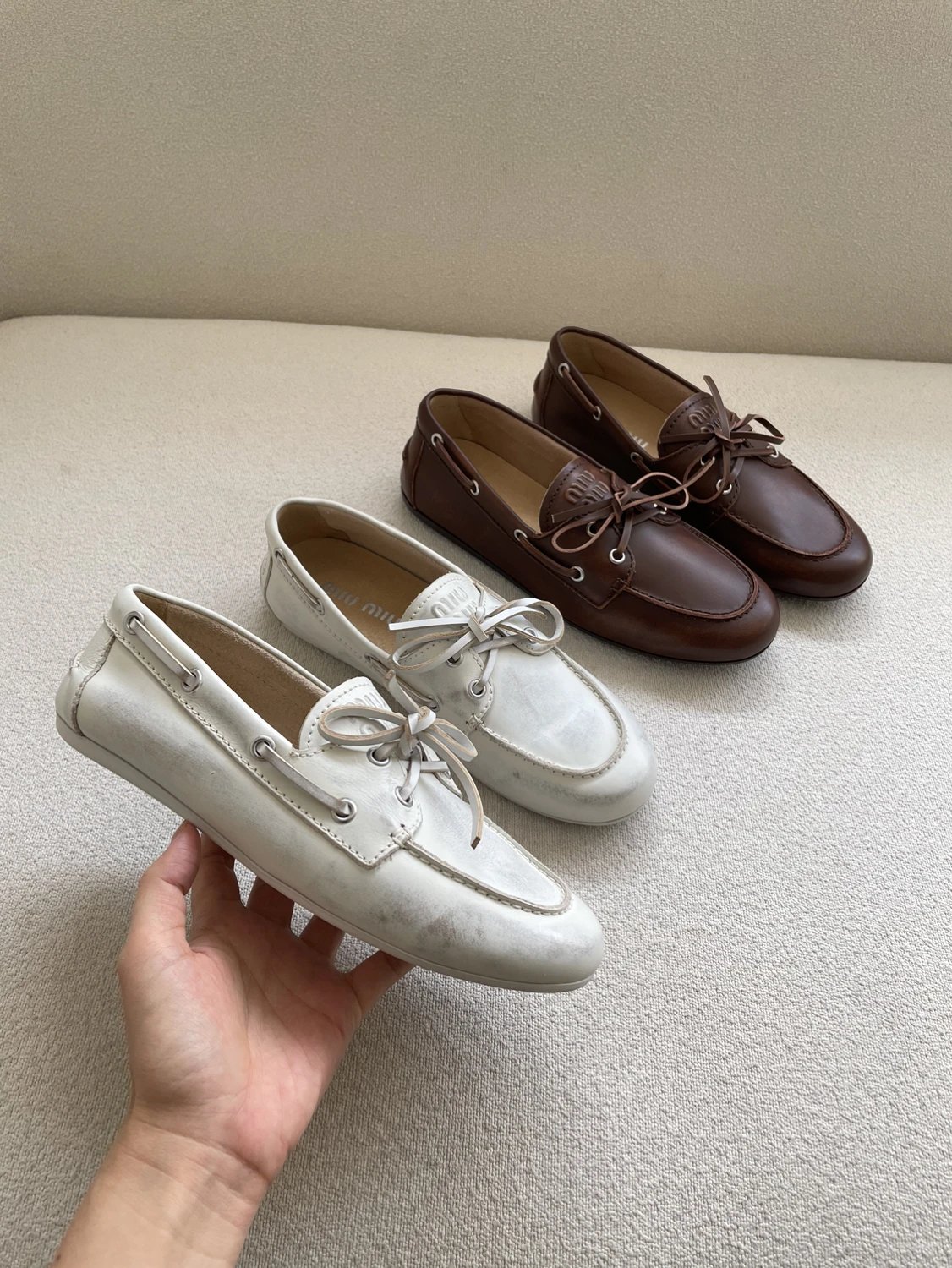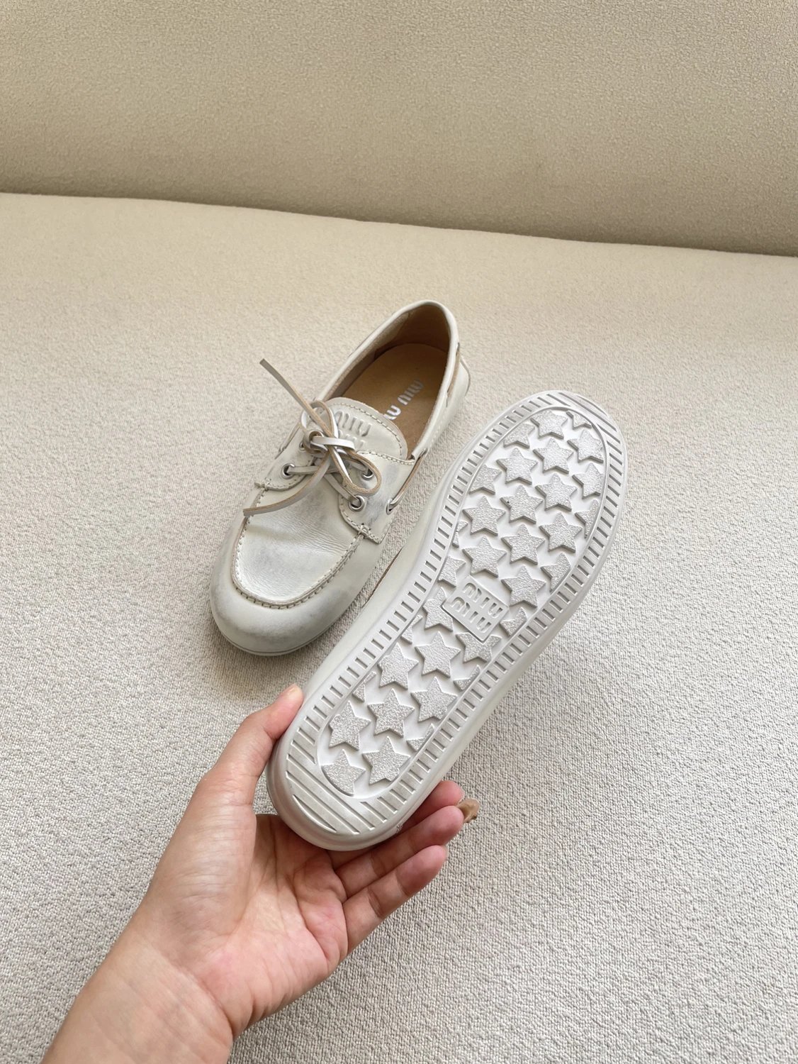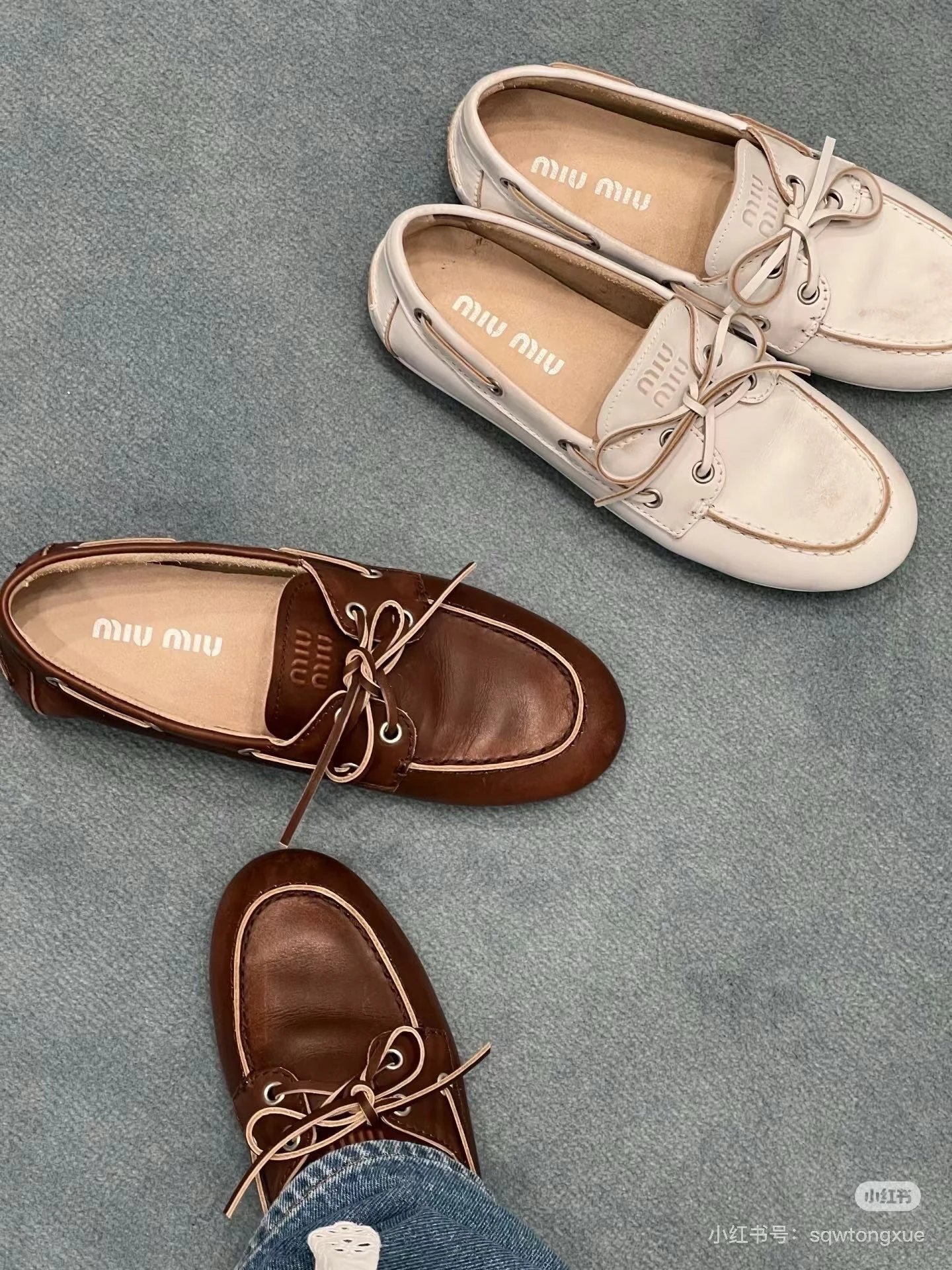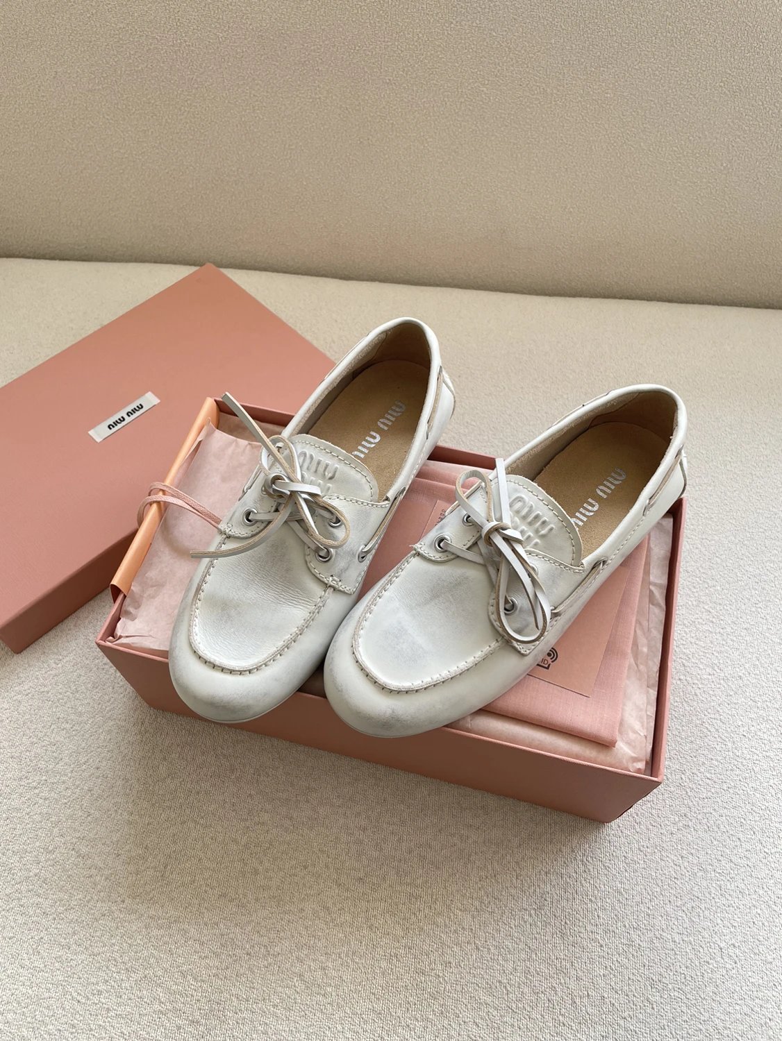 重磅渠道 miu 帆船乐福 做旧擦色系带乐福鞋 舒适软底复古单鞋皮鞋