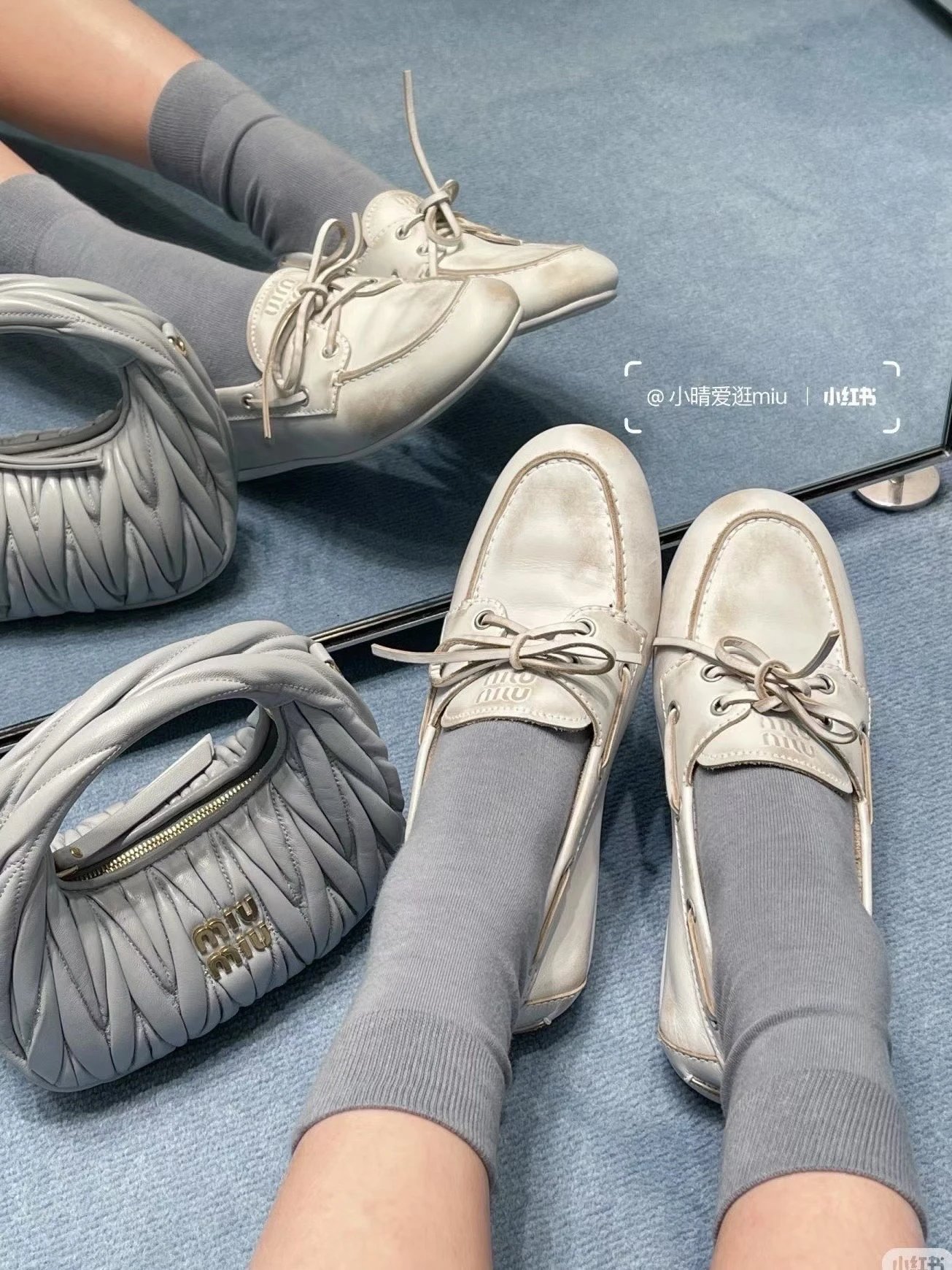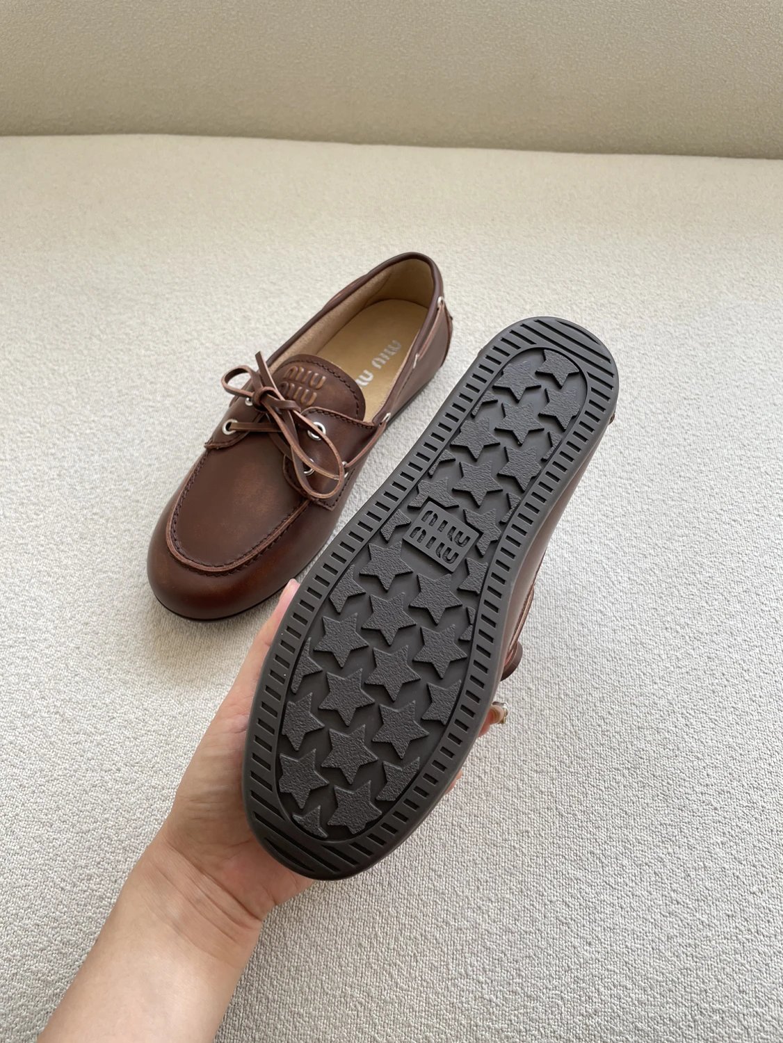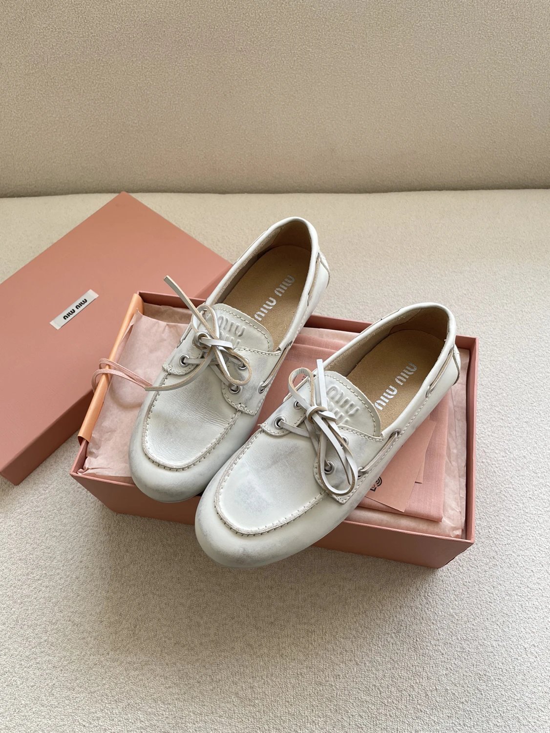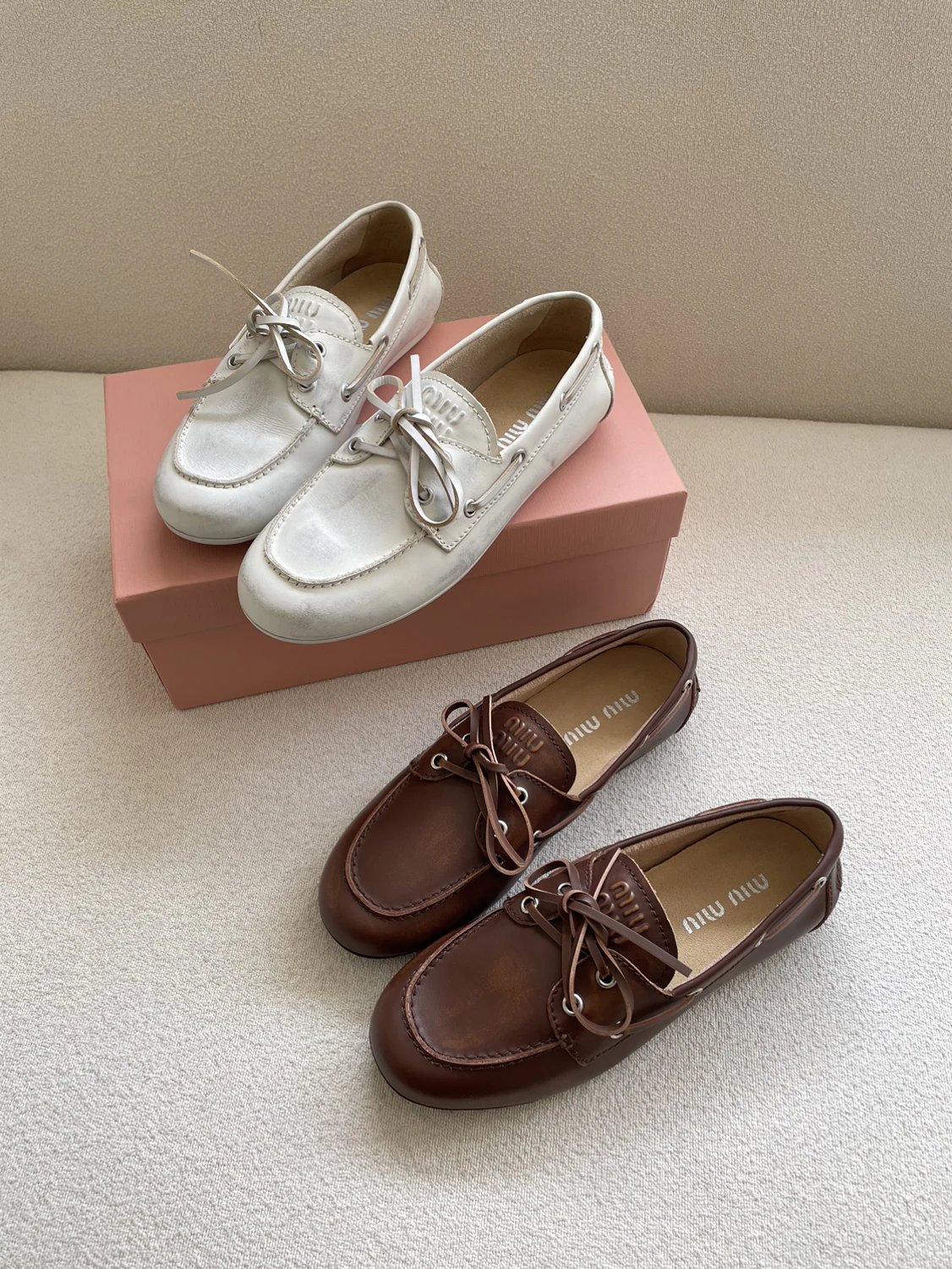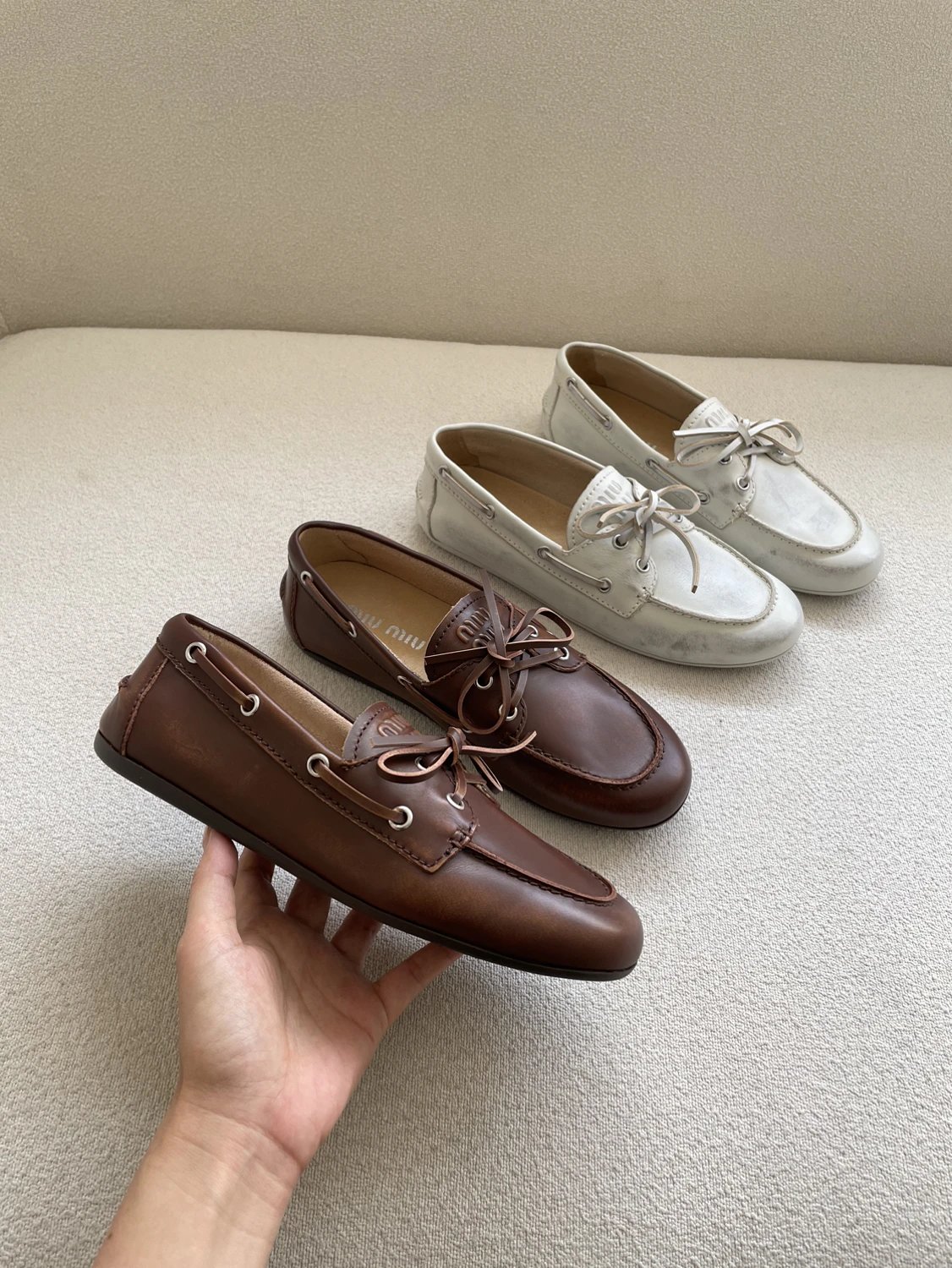 重磅渠道 miu 帆船乐福 做旧擦色系带乐福鞋 舒适软底复古单鞋皮鞋