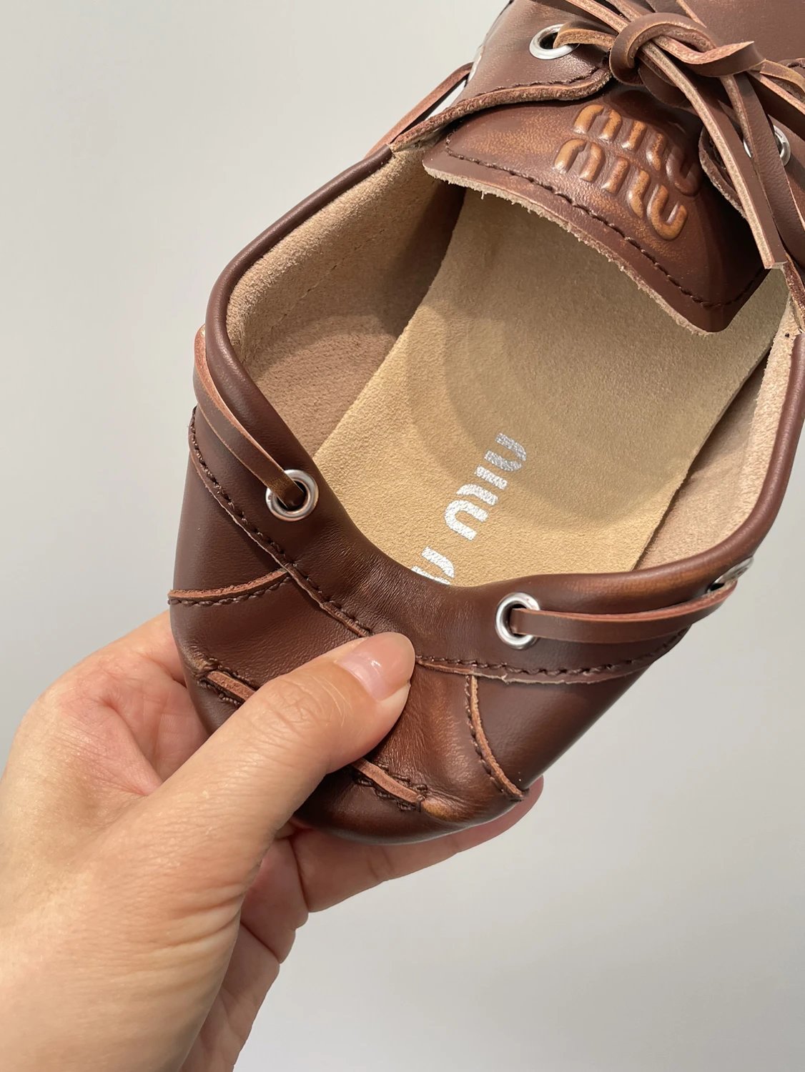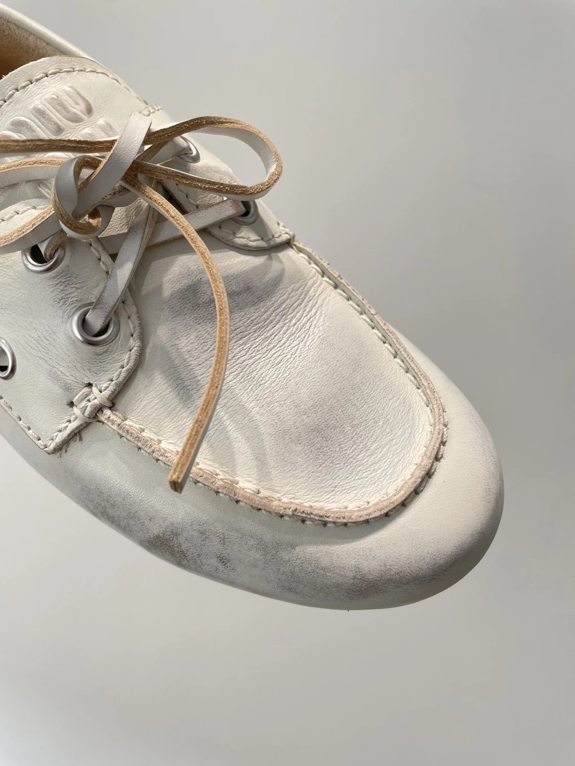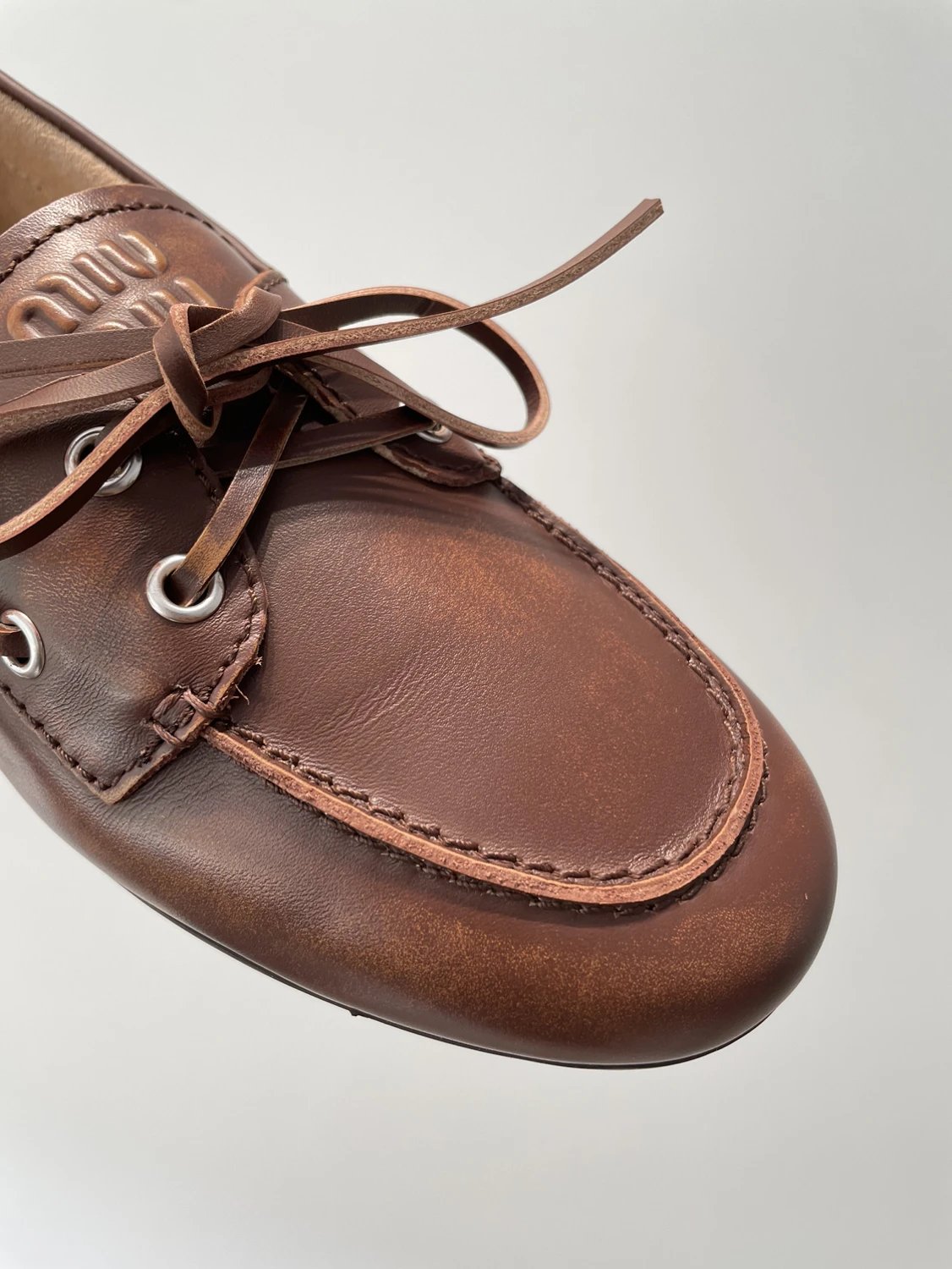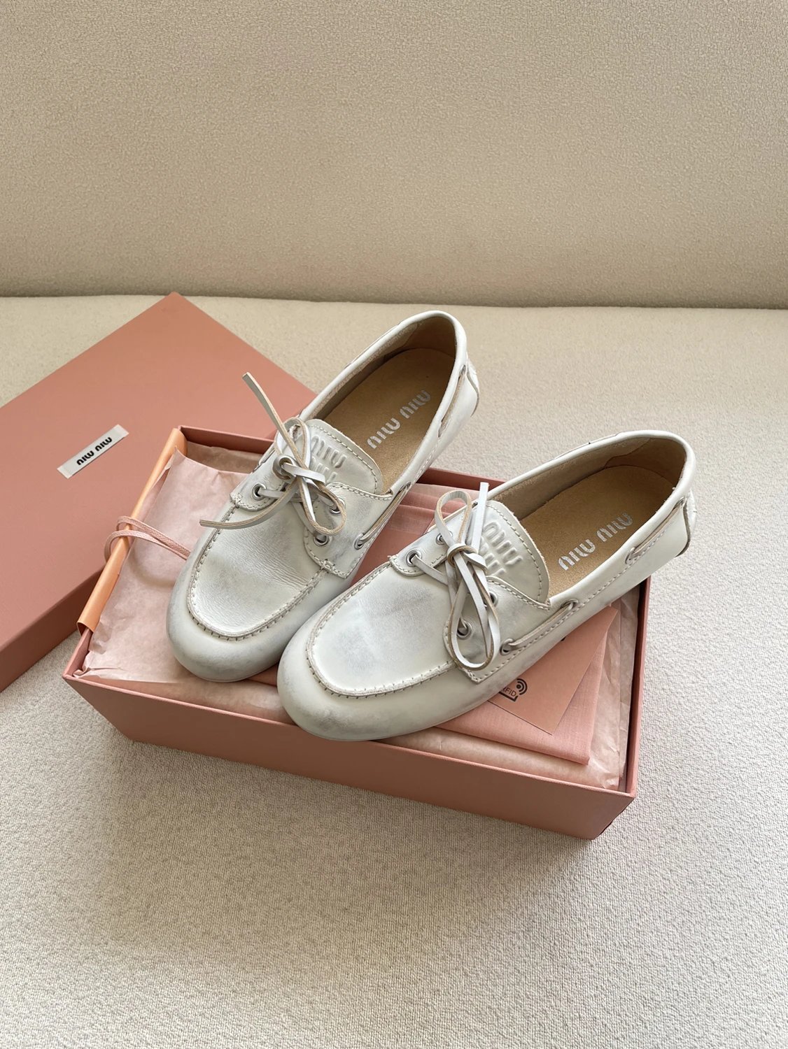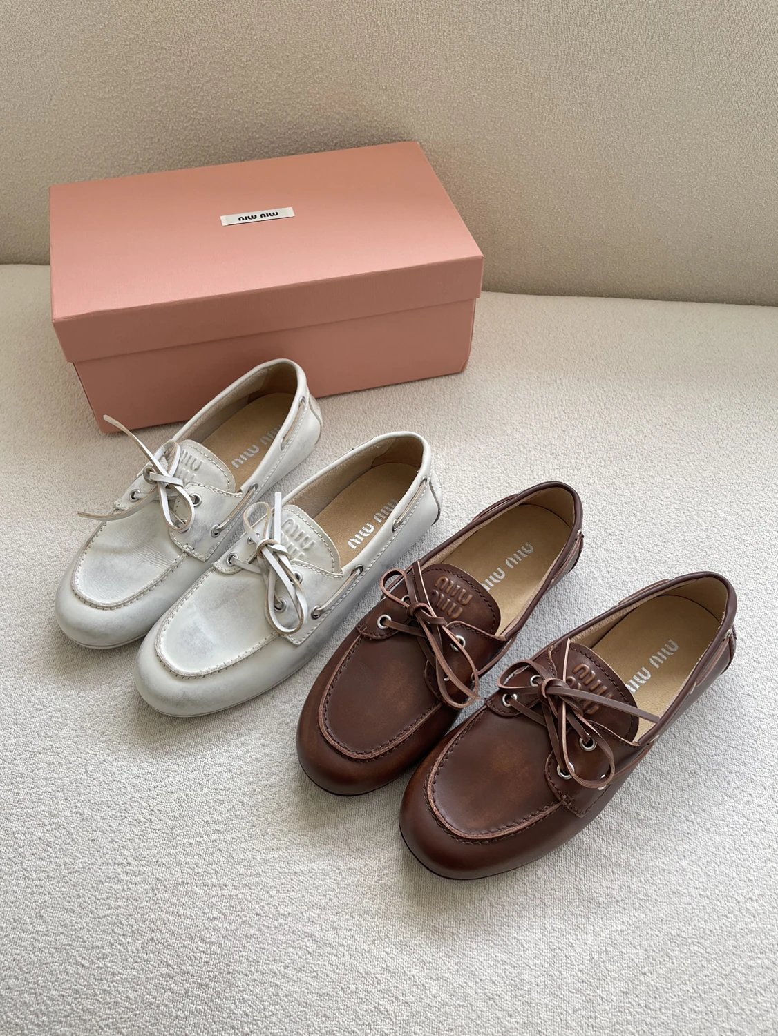 重磅渠道 miu 帆船乐福 做旧擦色系带乐福鞋 舒适软底复古单鞋皮鞋