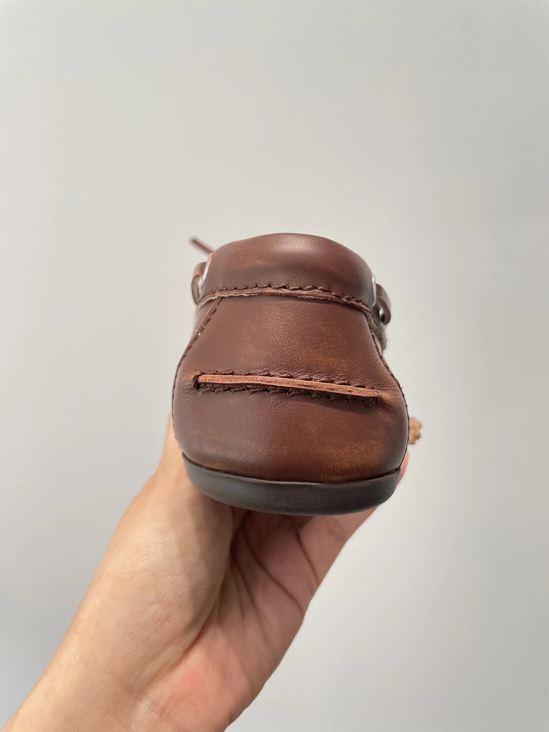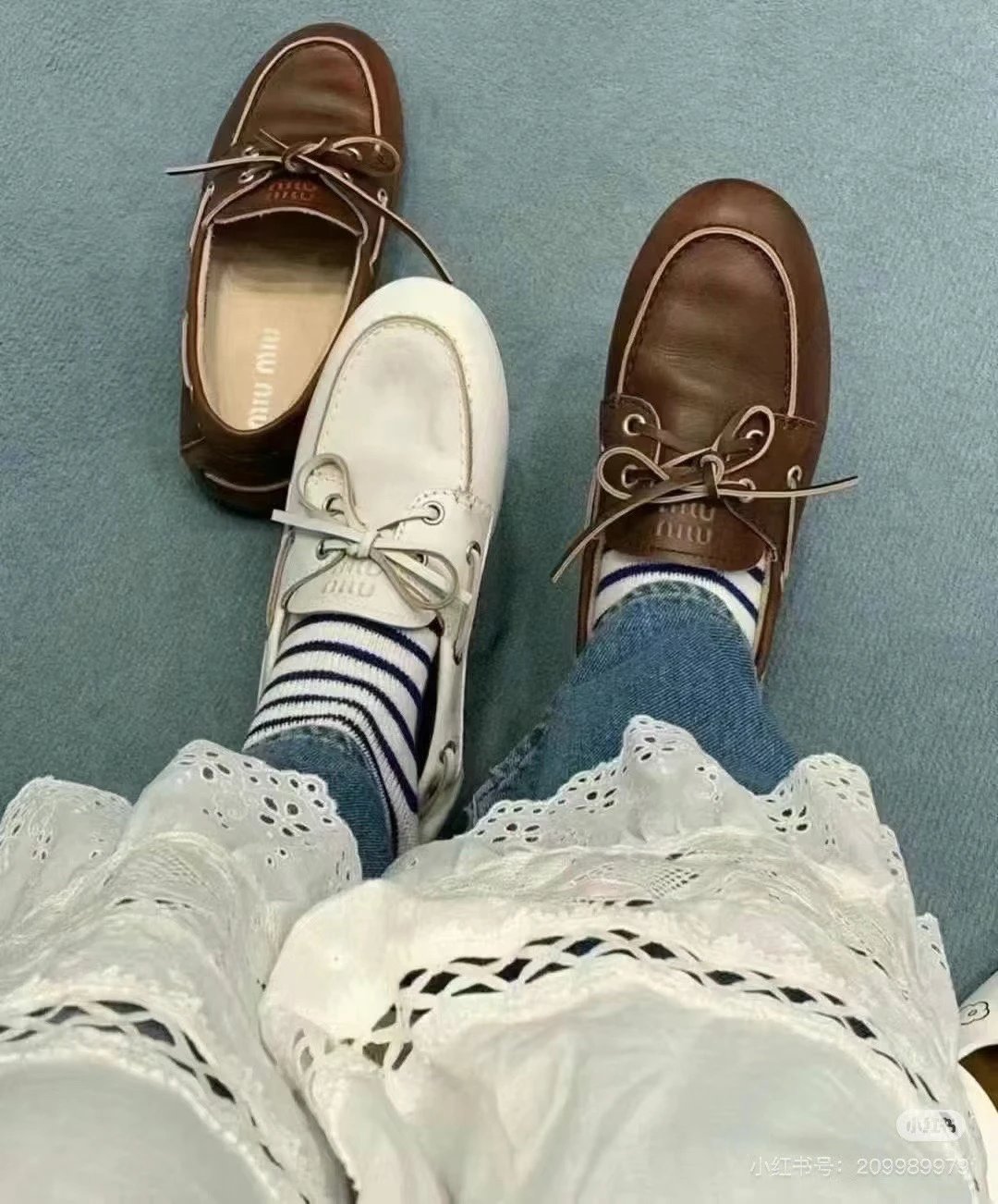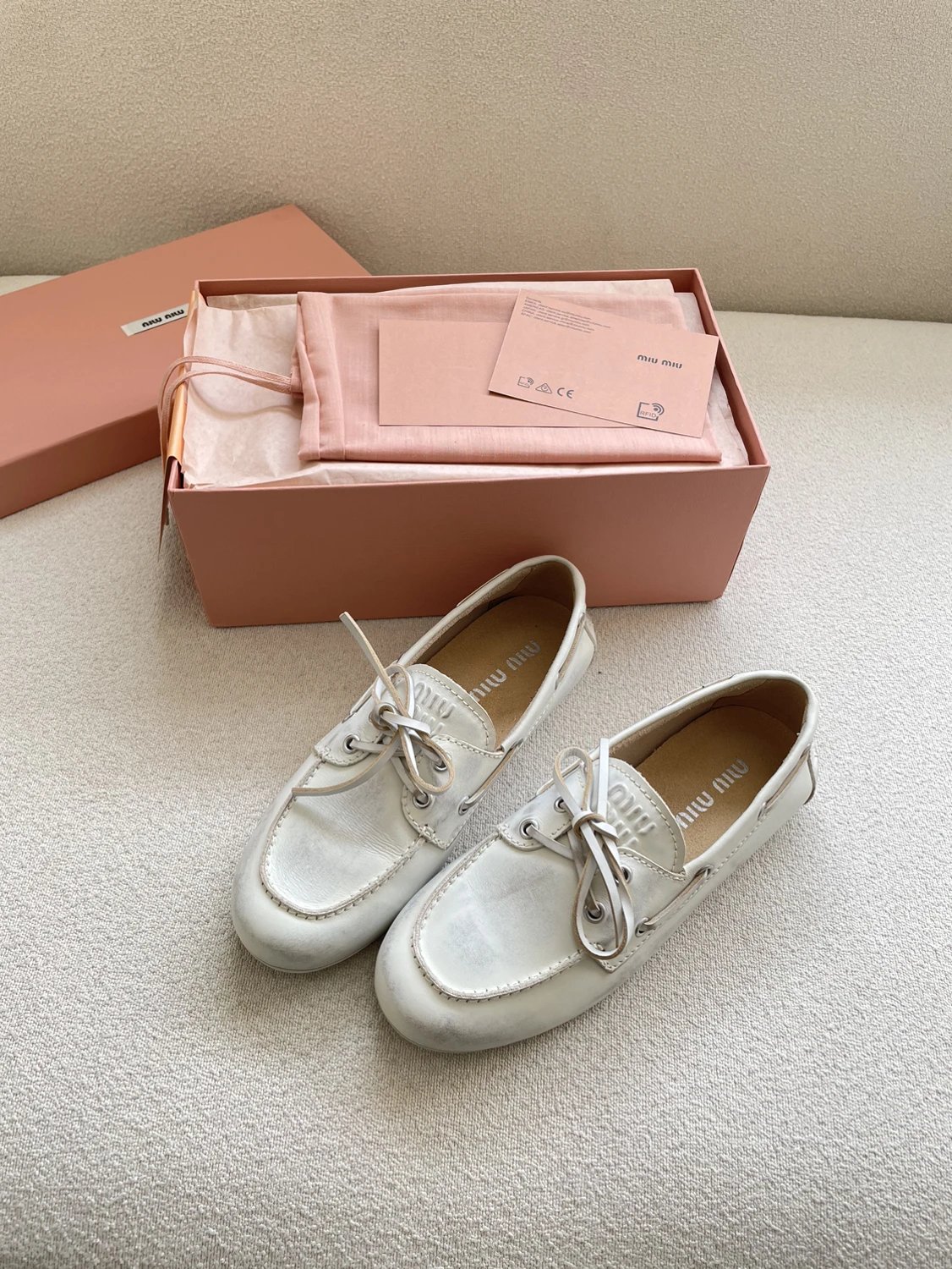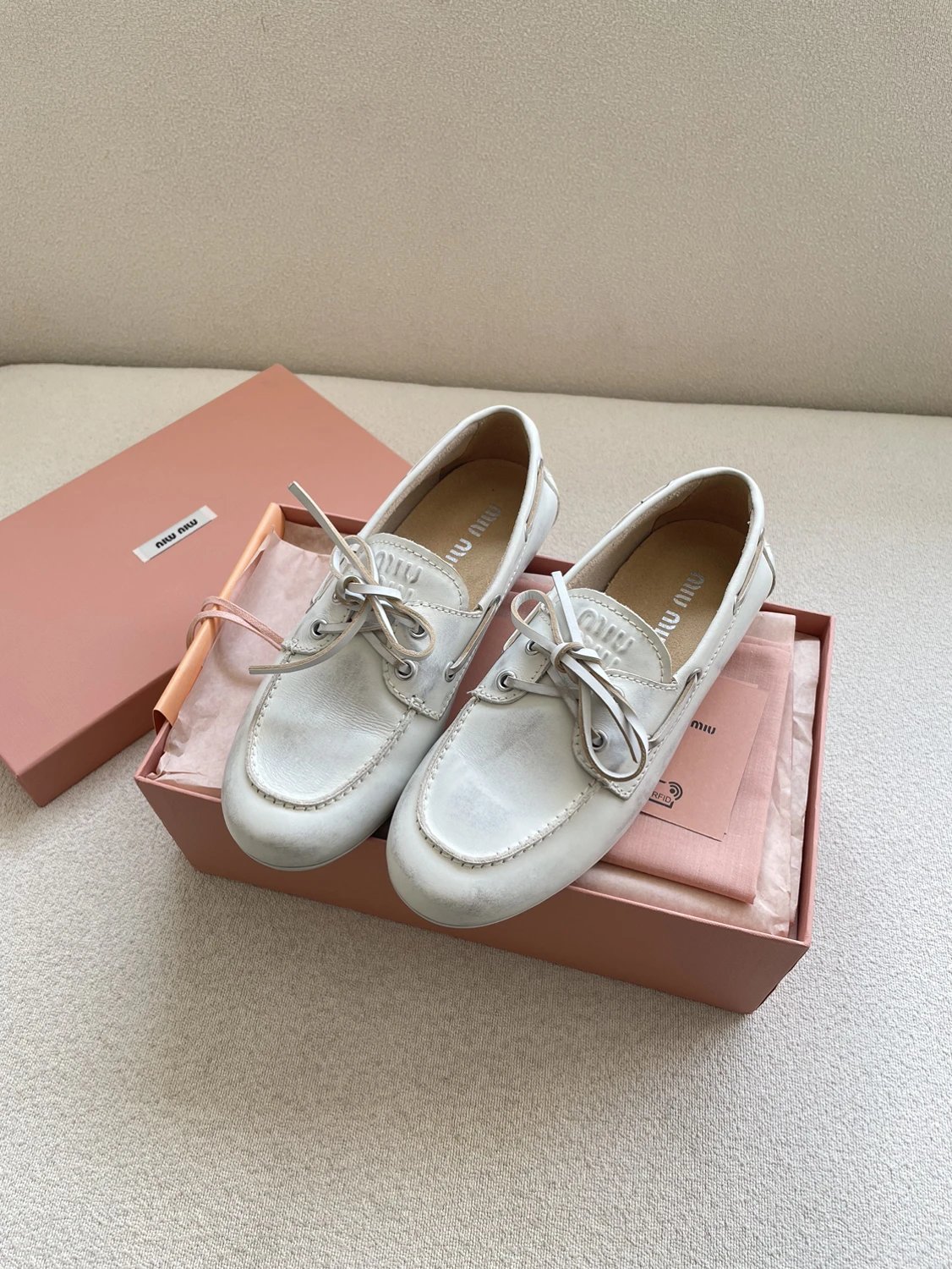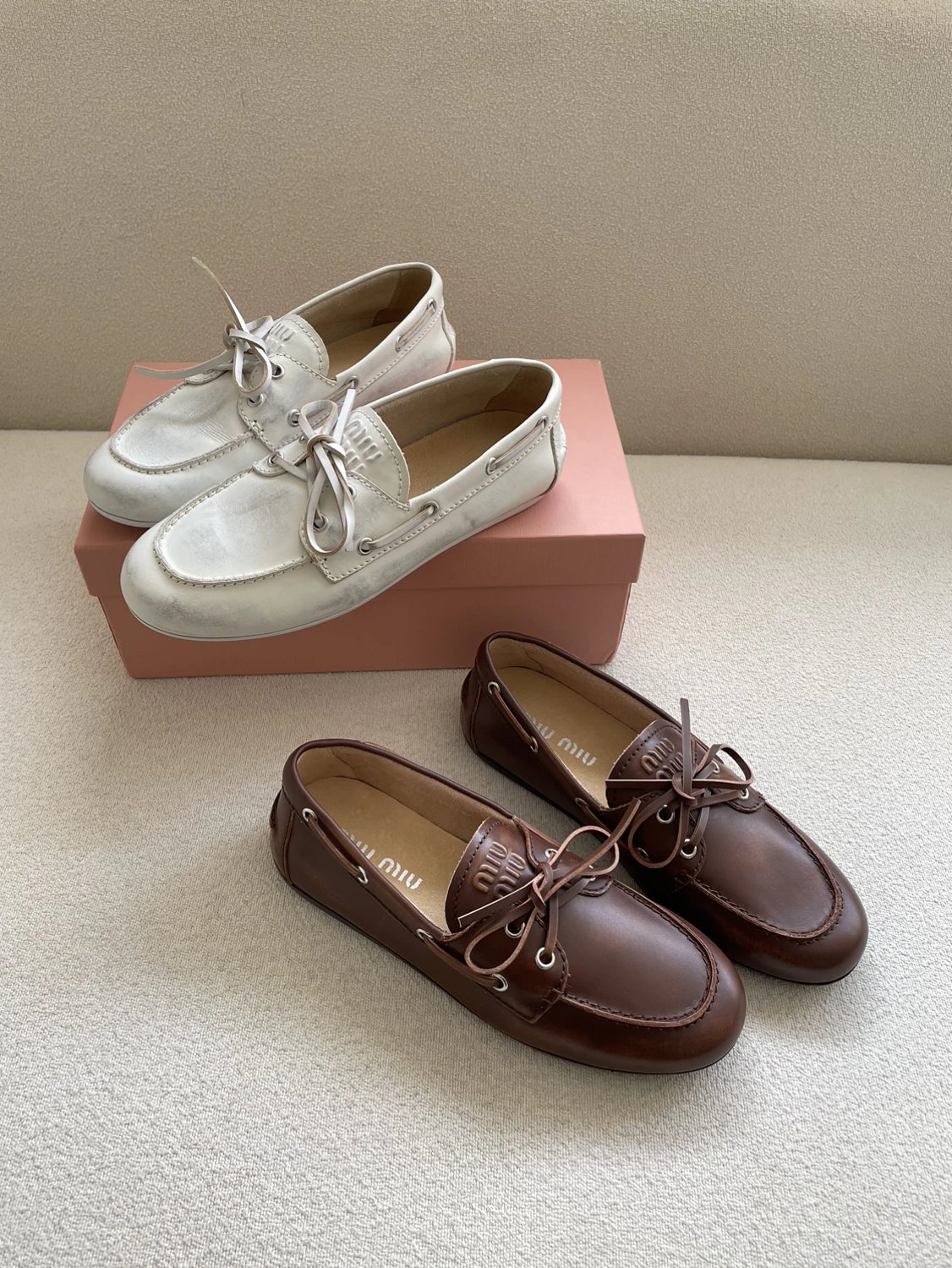重磅渠道 miu 帆船乐福 做旧擦色系带乐福鞋 舒适软底复古单鞋皮鞋