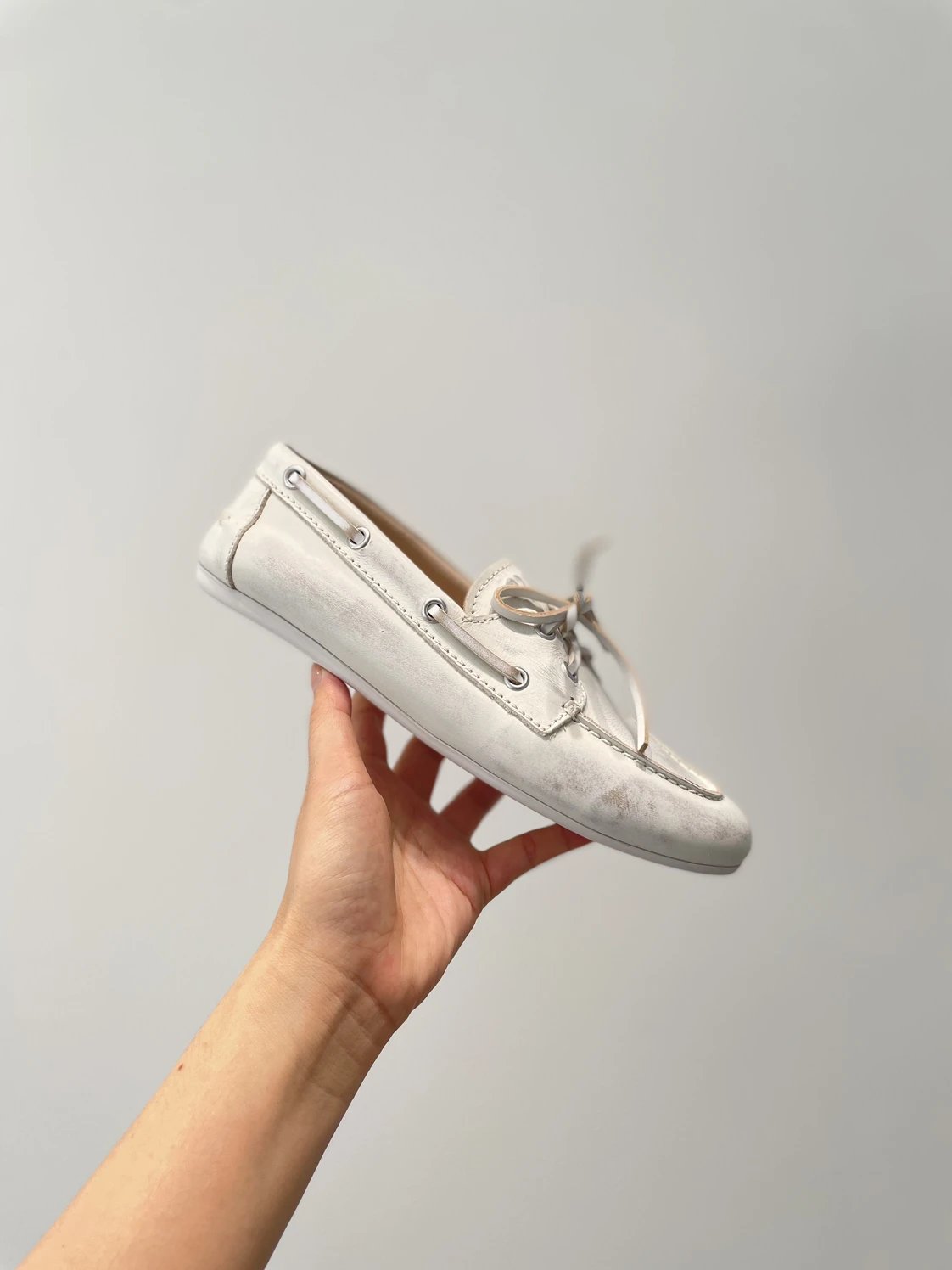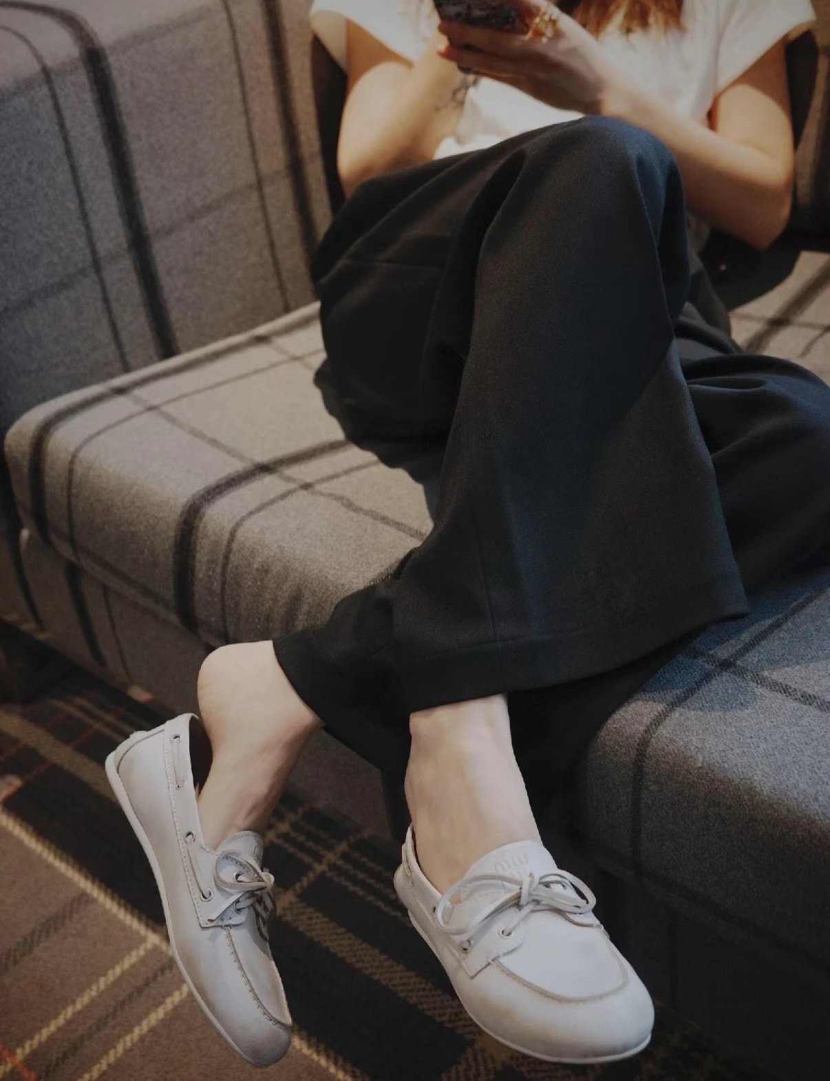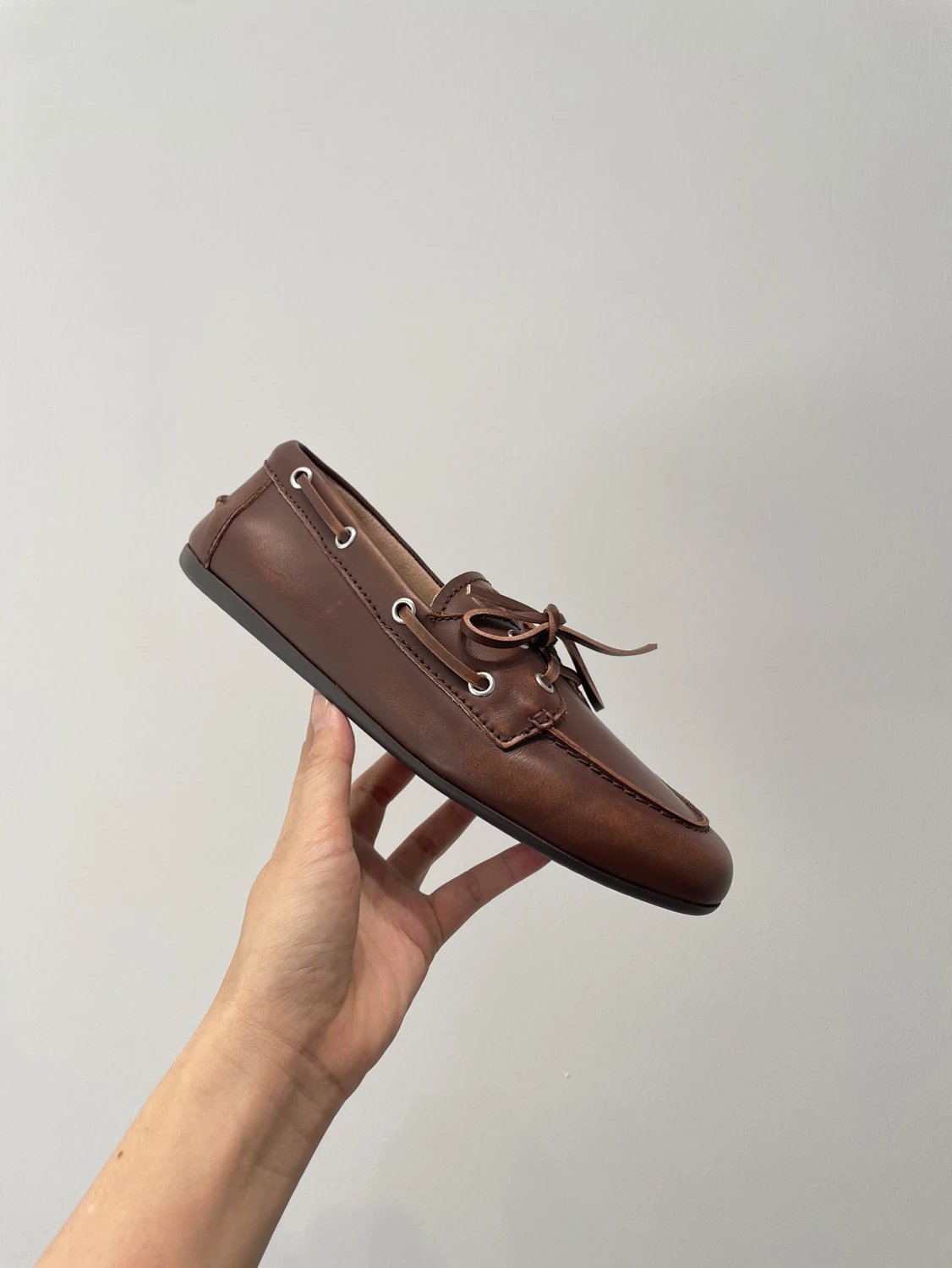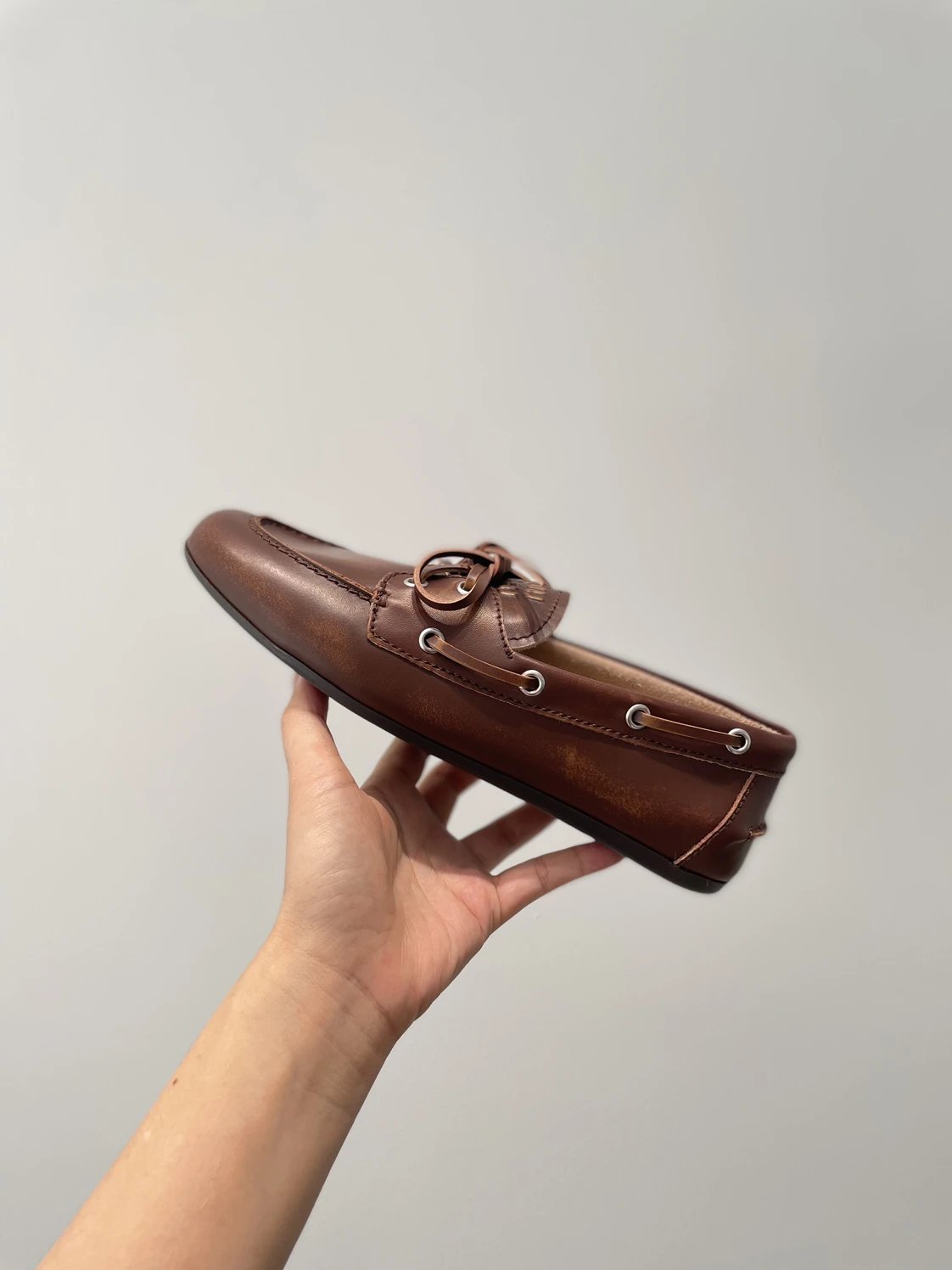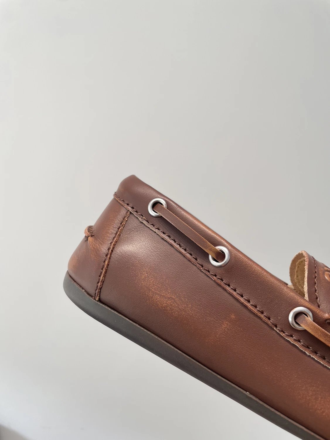 重磅渠道 miu 帆船乐福 做旧擦色系带乐福鞋 舒适软底复古单鞋皮鞋