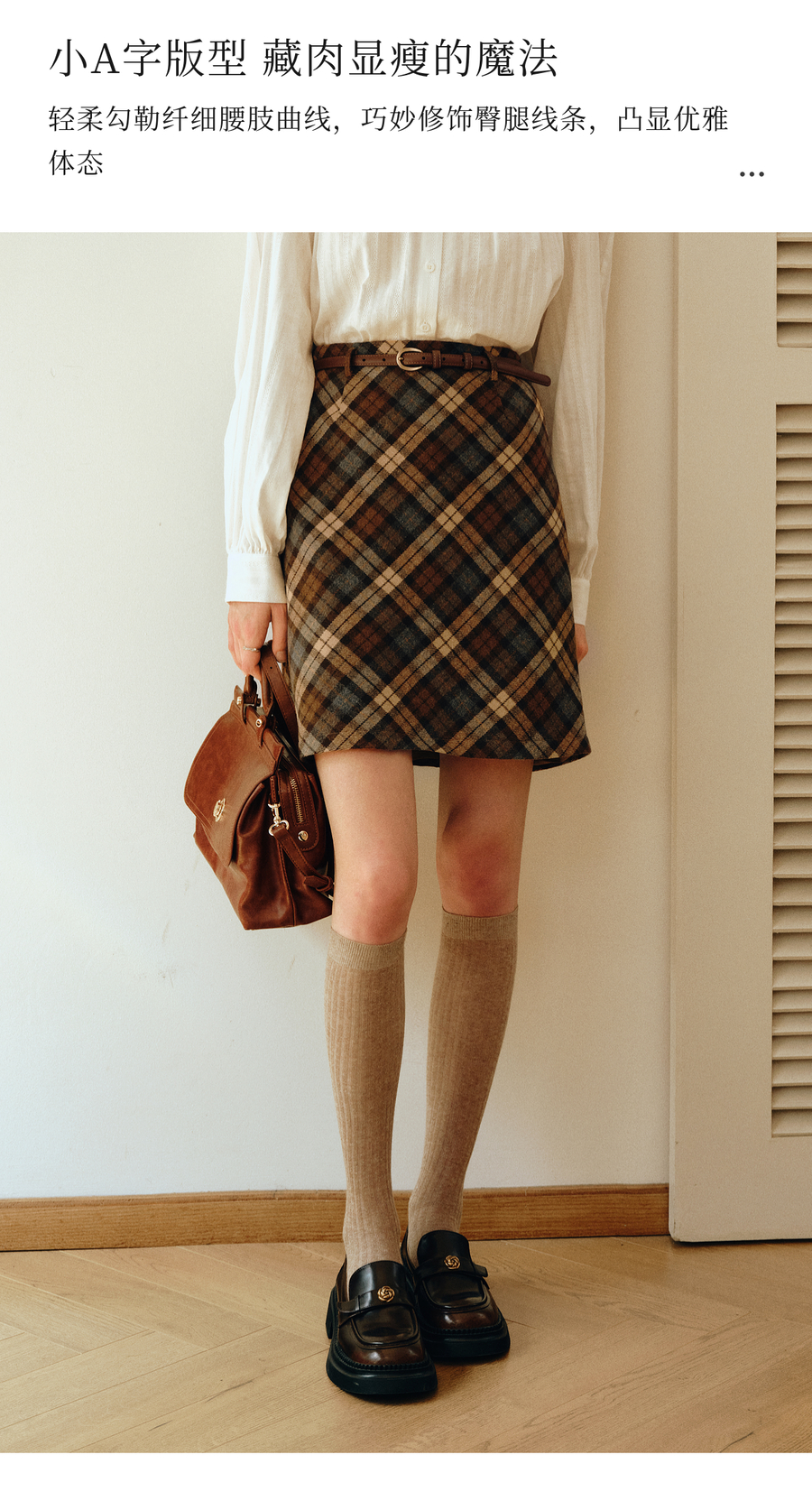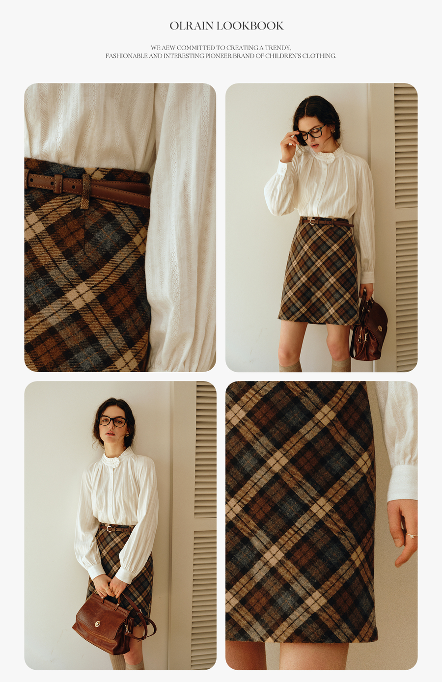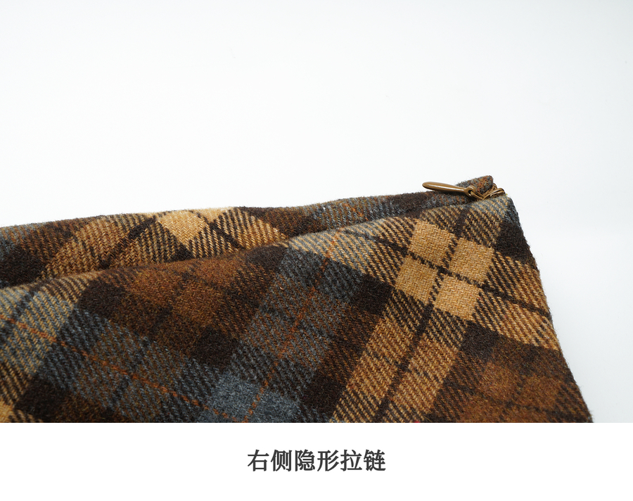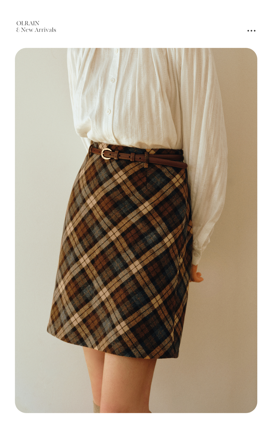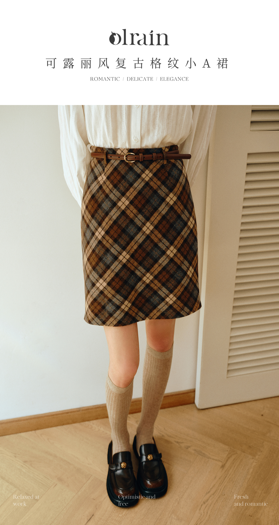 OLrain欧芮儿2025新款女秋季可露丽风复古格纹小A裙中腰半身裙