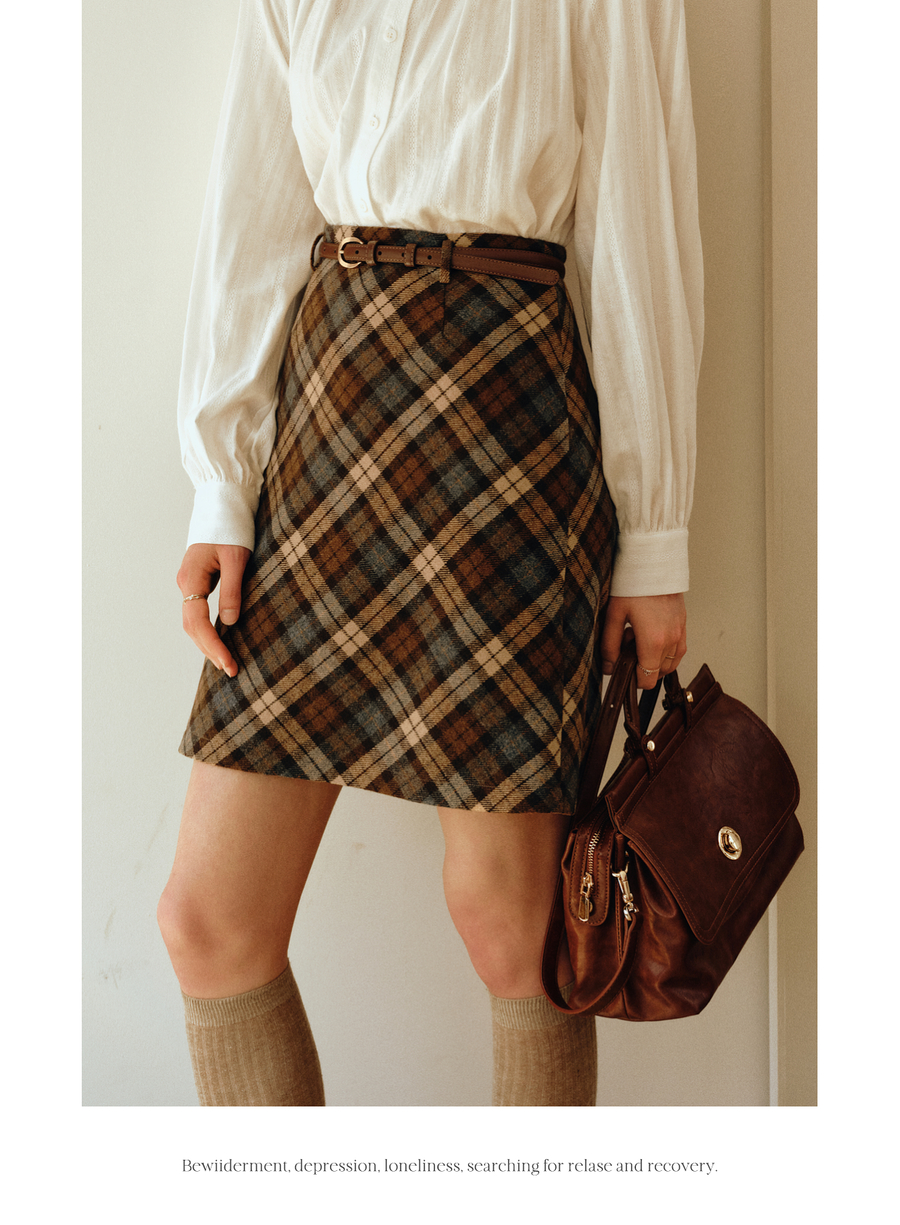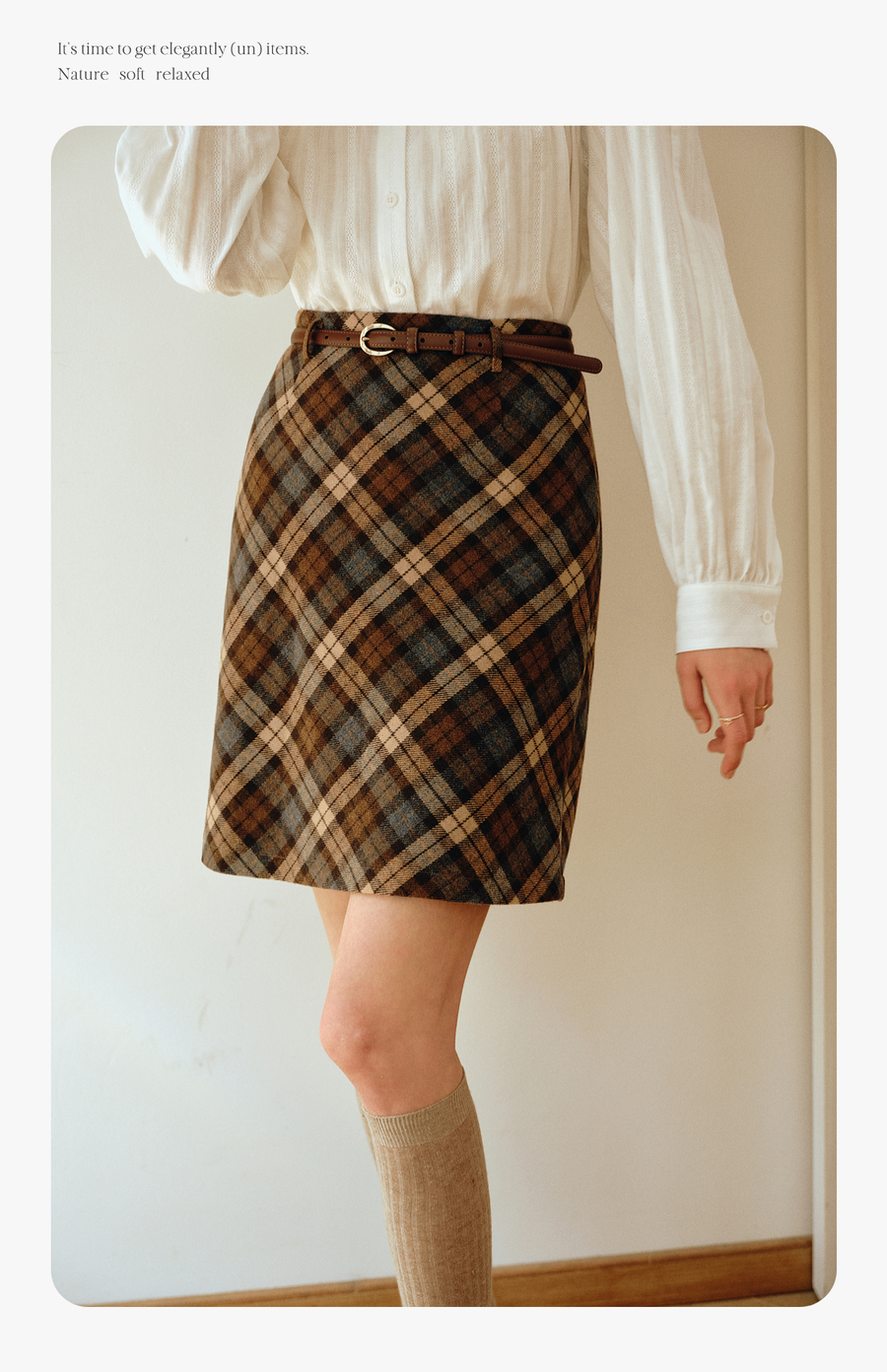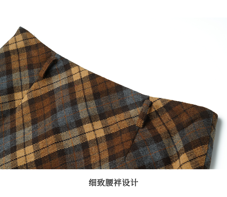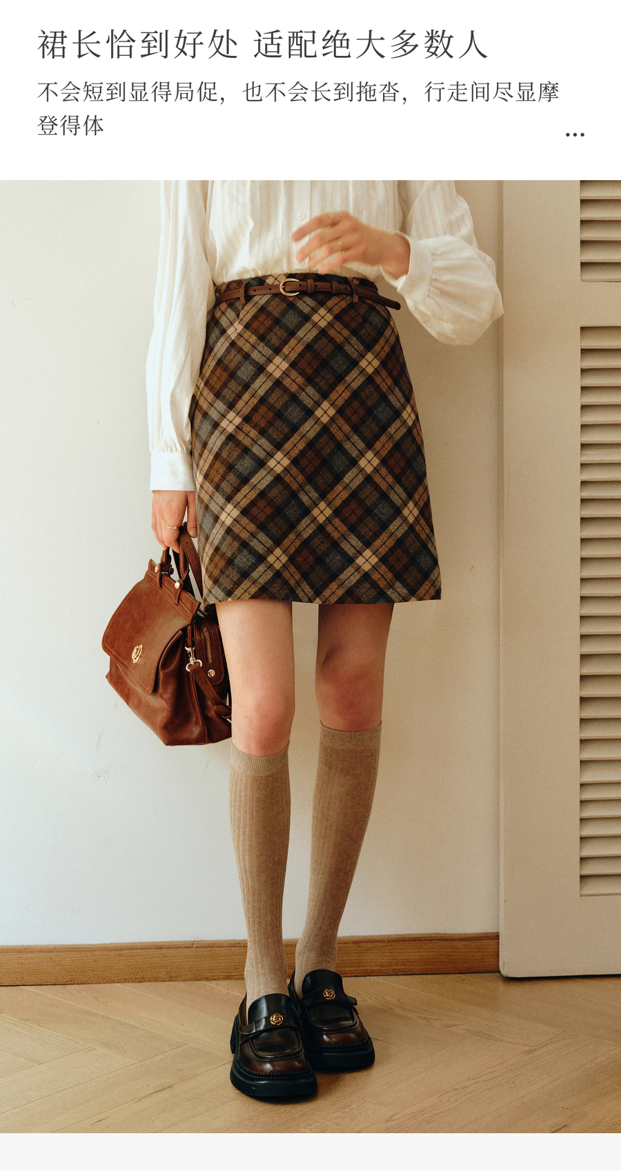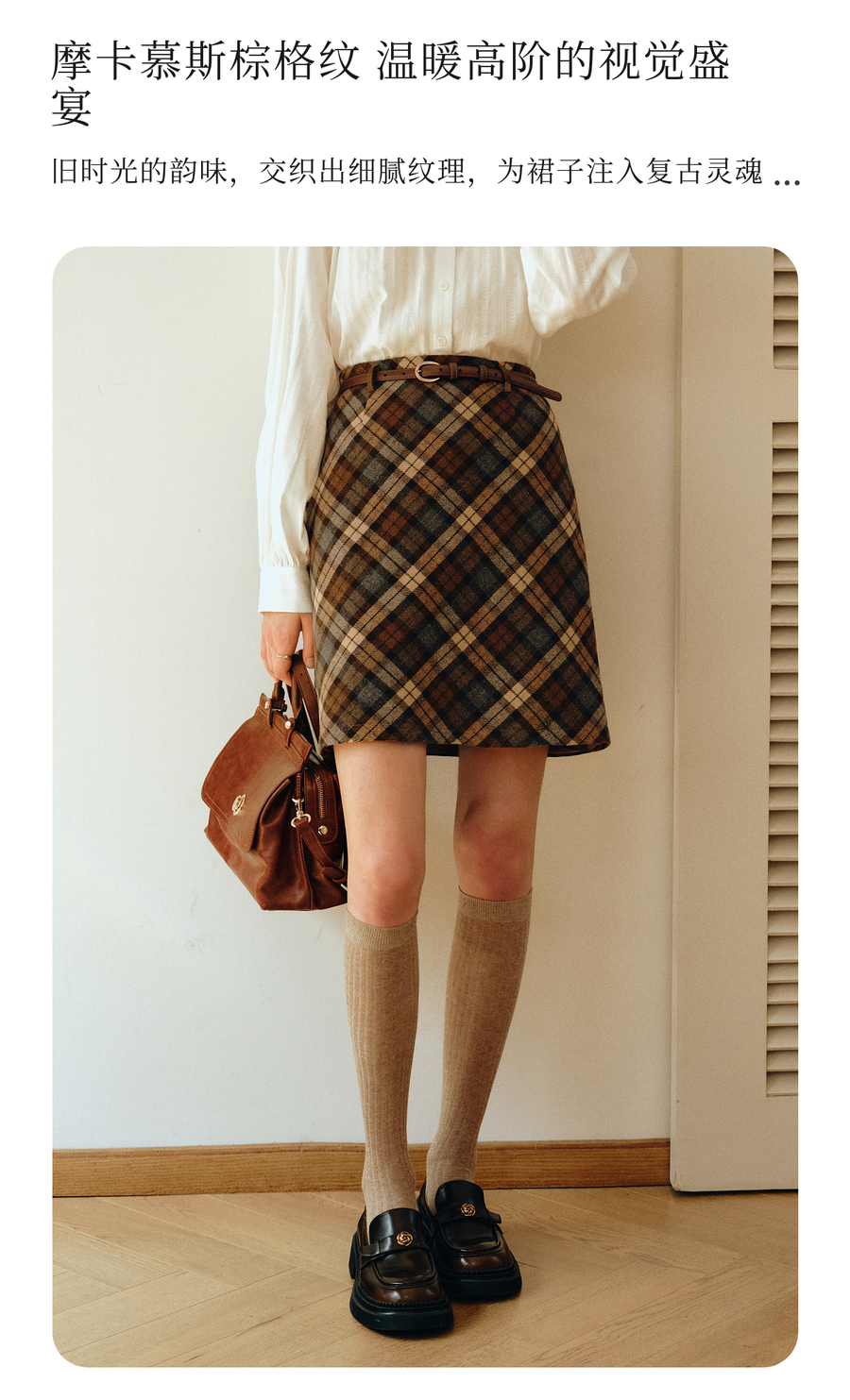 OLrain欧芮儿2025新款女秋季可露丽风复古格纹小A裙中腰半身裙