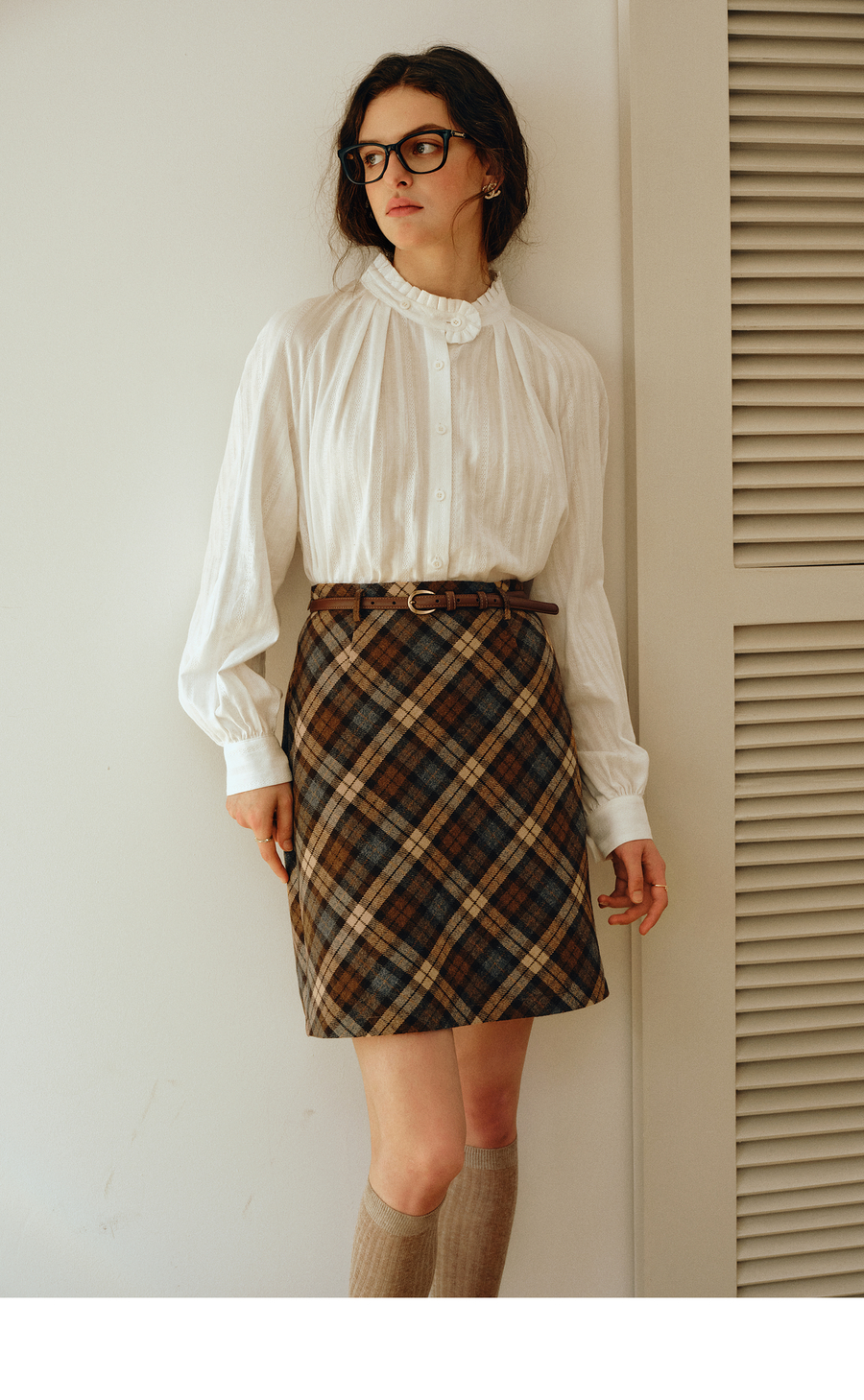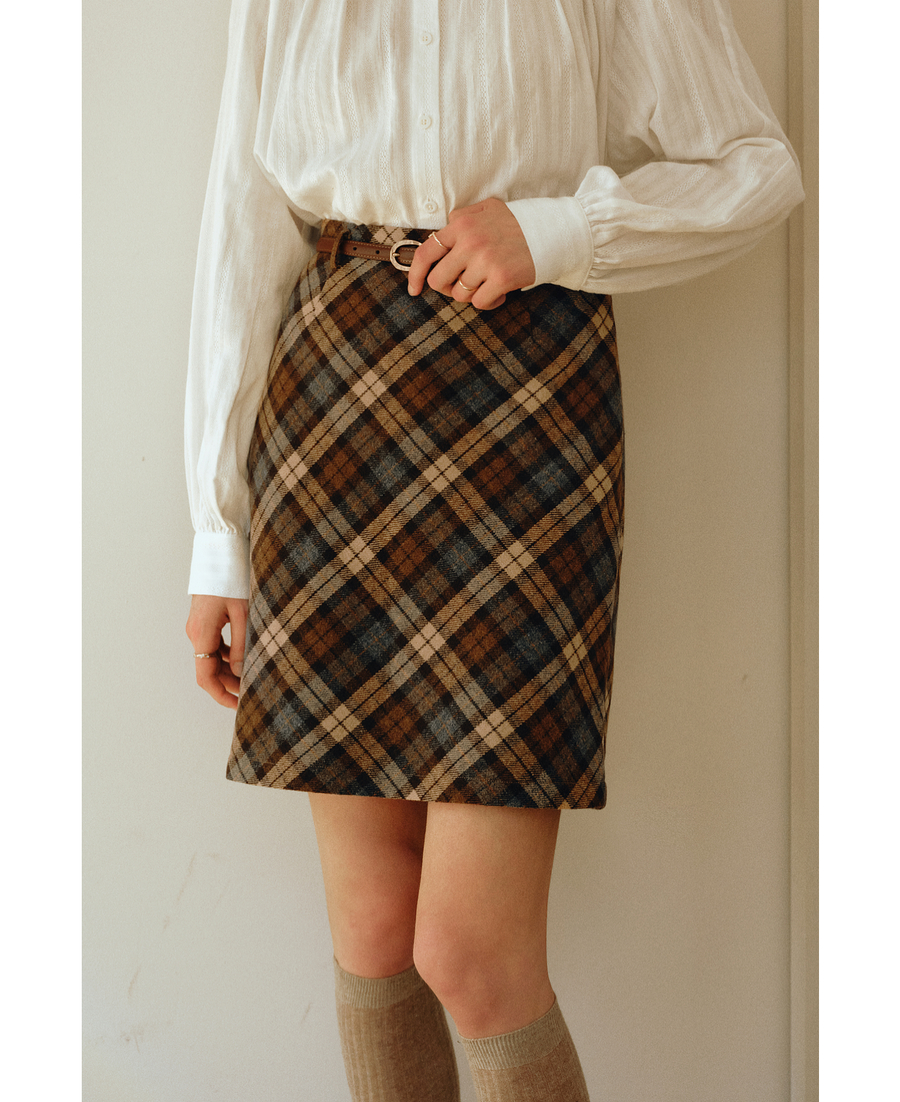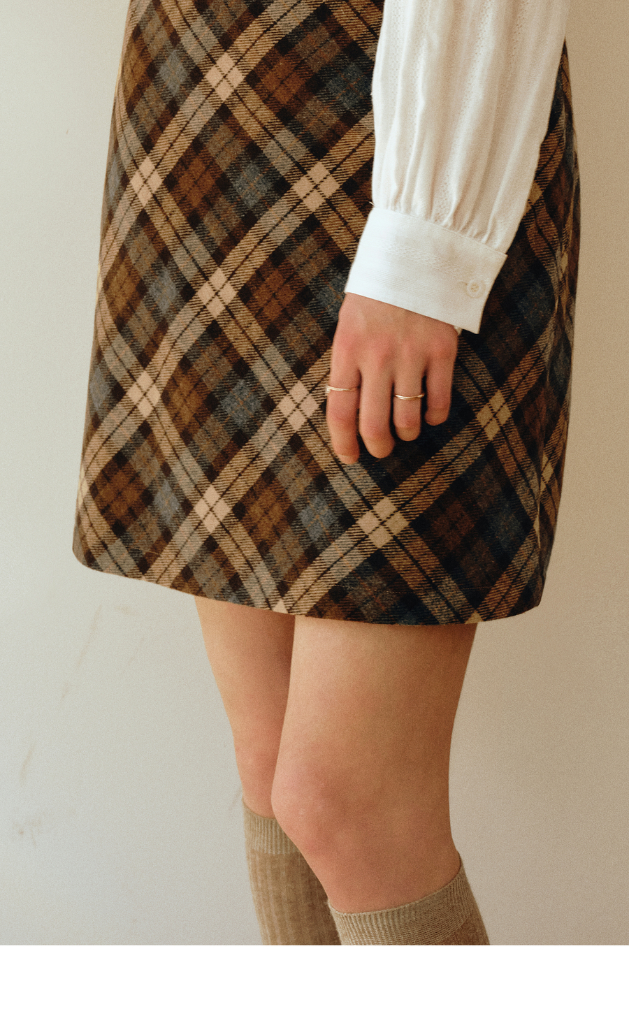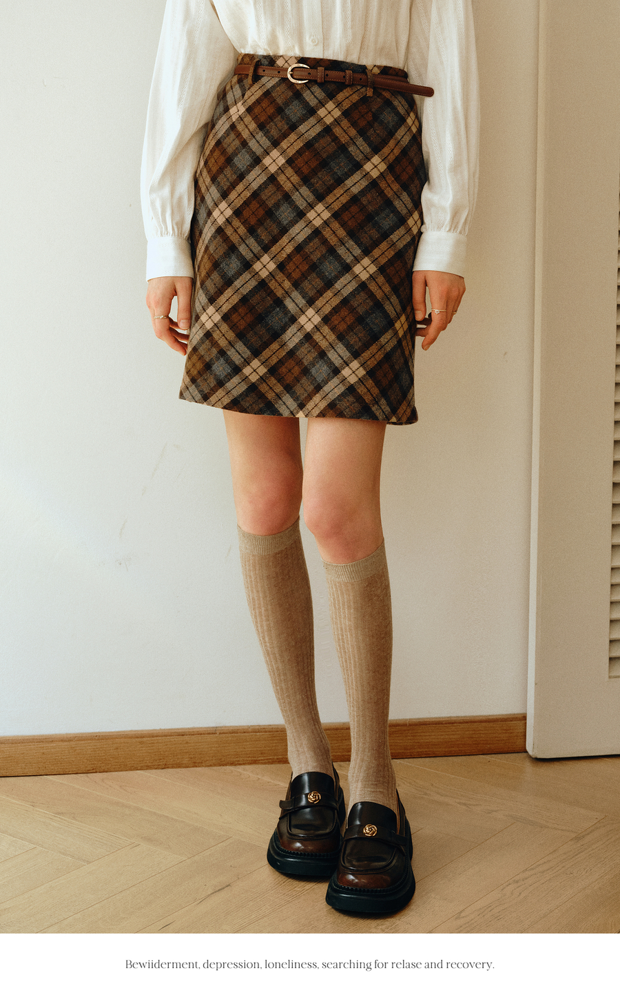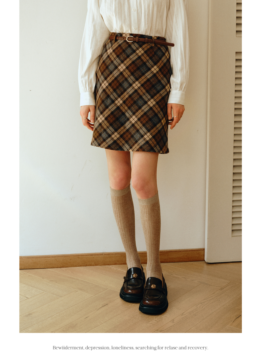 OLrain欧芮儿2025新款女秋季可露丽风复古格纹小A裙中腰半身裙