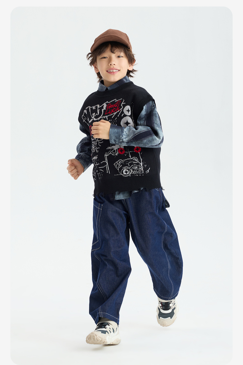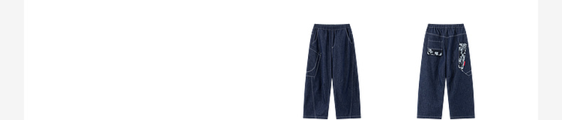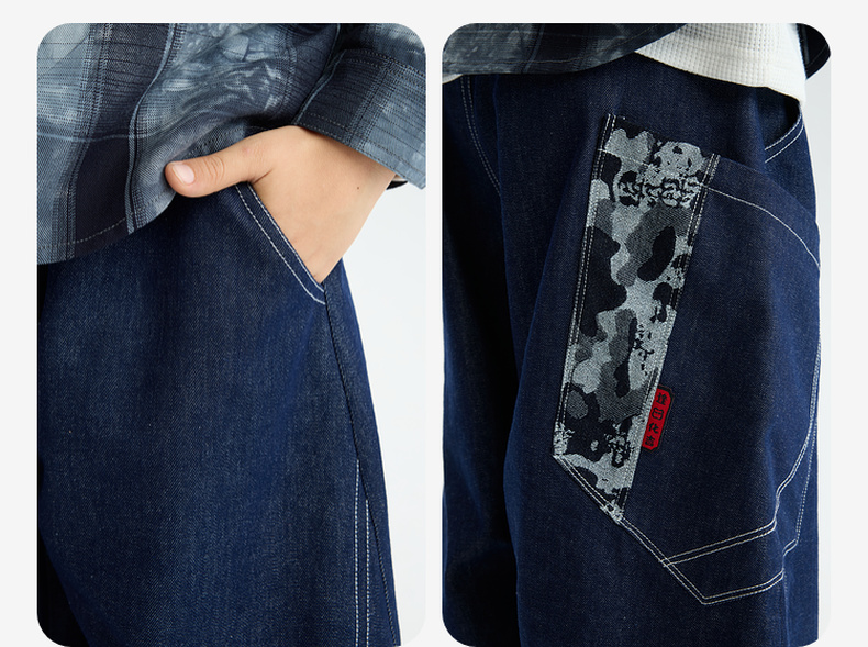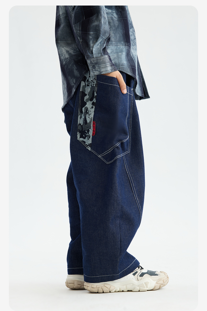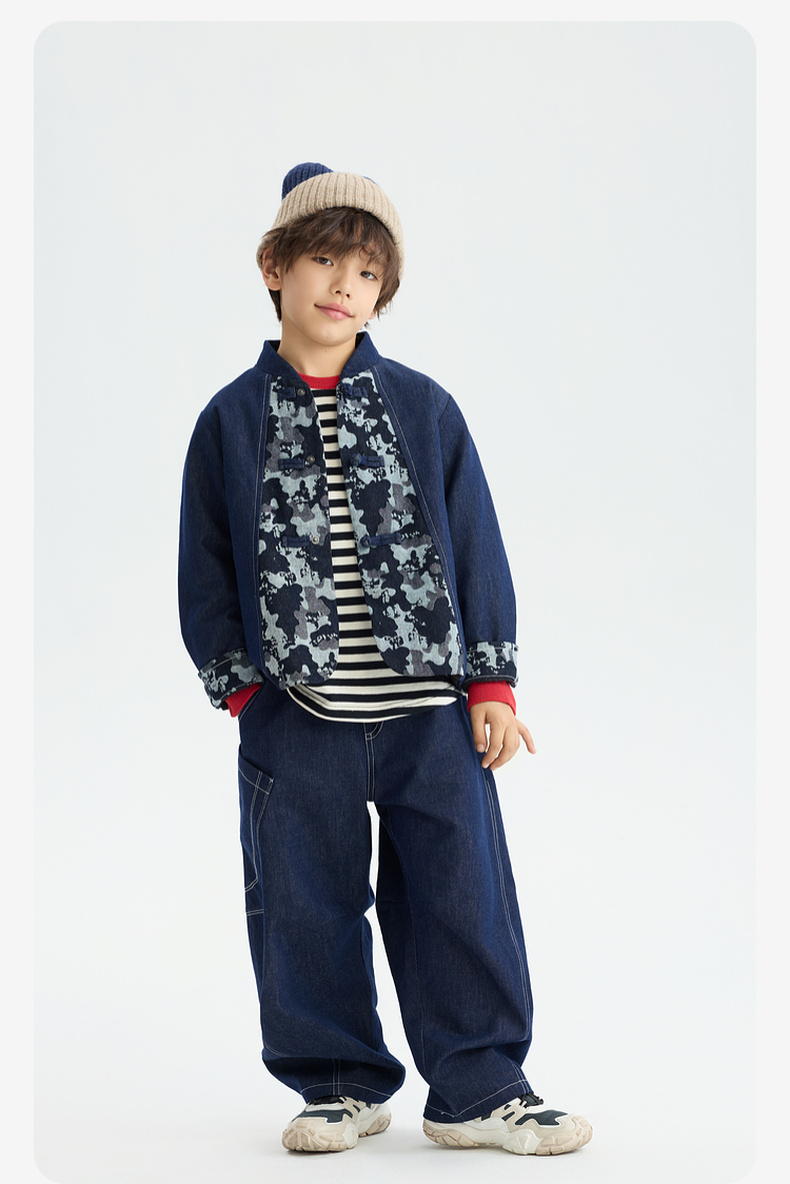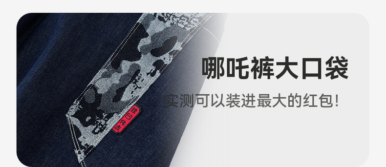 MANHOJIA【百宝袋红包裤】儿童牛仔裤新款新中式水墨提花牛仔长裤