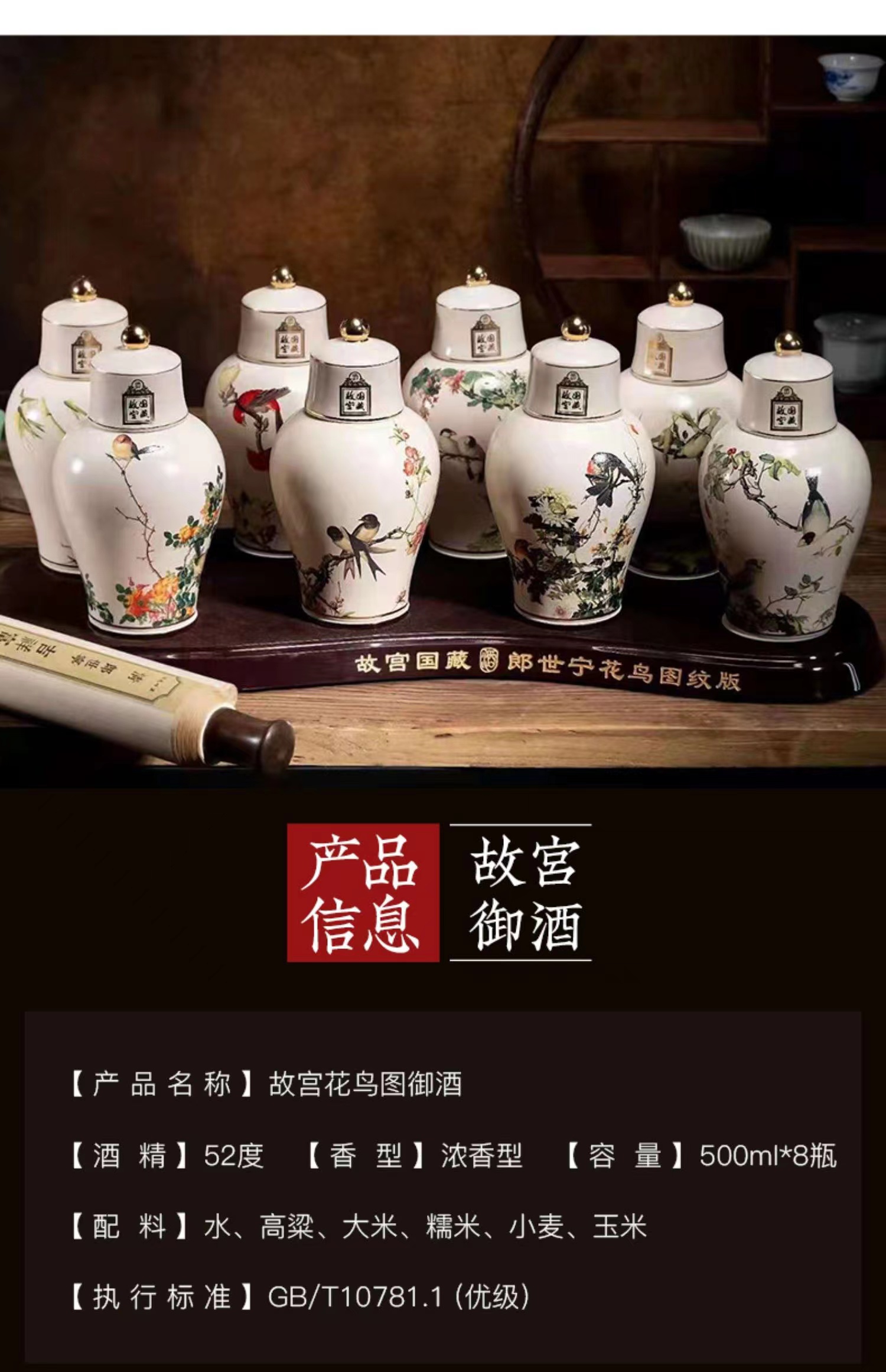 故宫郎世宁花鸟图御酒52度 500ml*8
