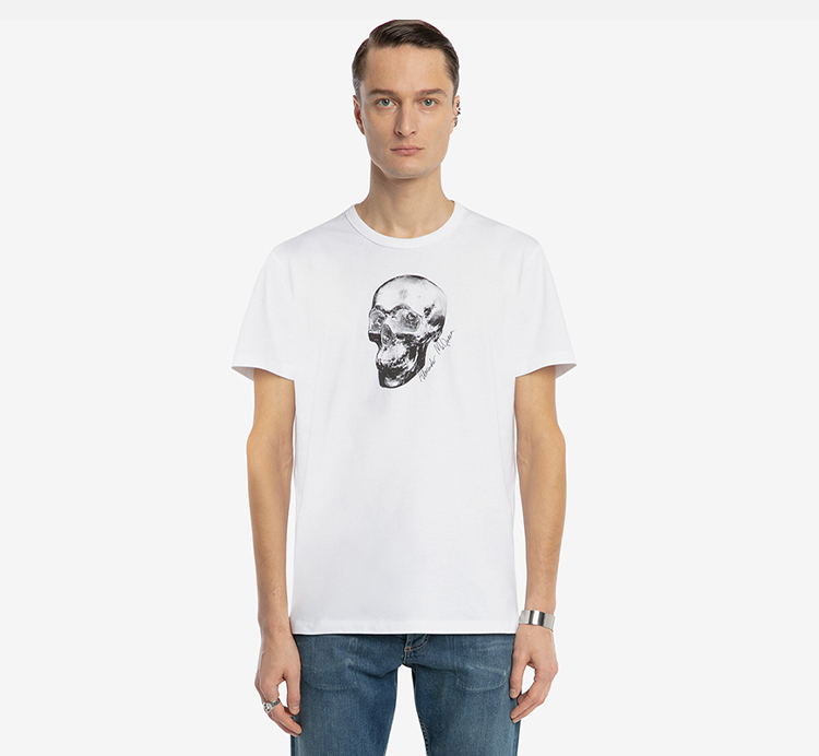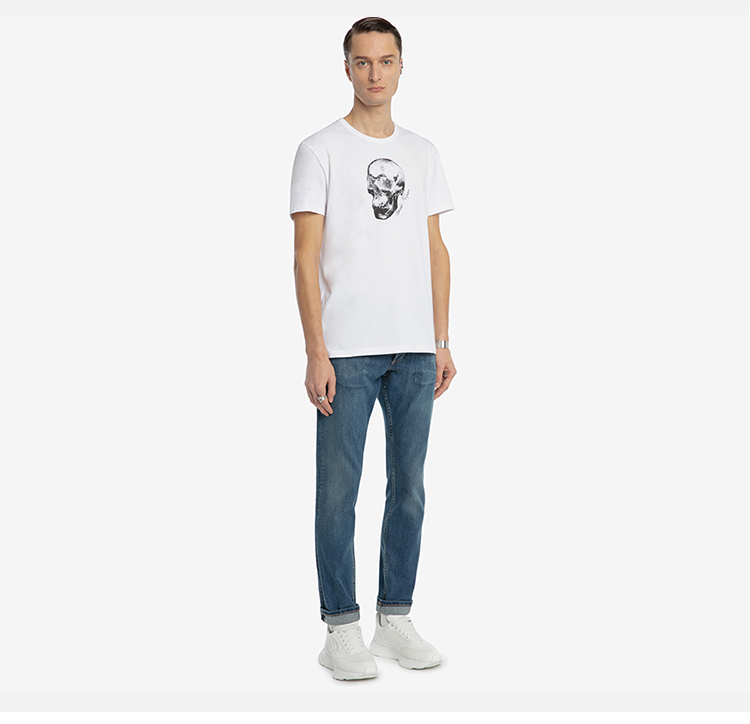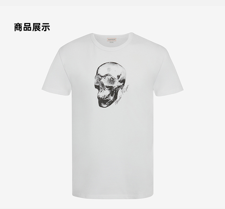 ALEXANDER MCQUEEN 亚历山大麦昆 男士棉质骷髅图案徽标圆领短袖T恤 白色 705010 QTZ16 0900