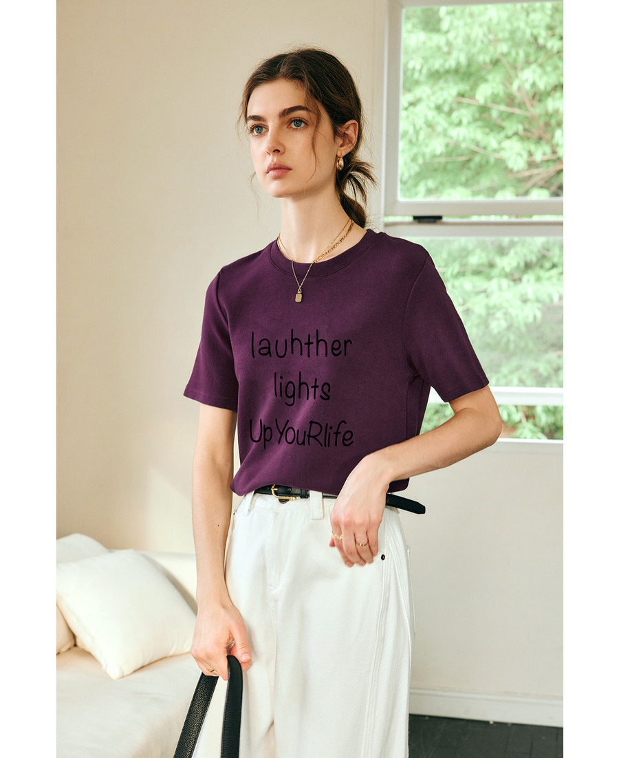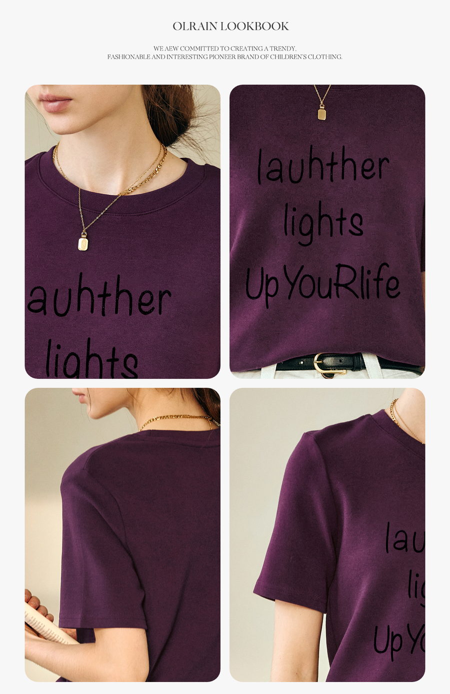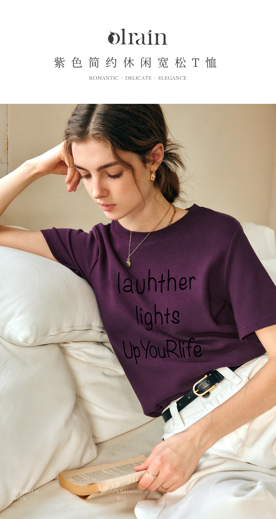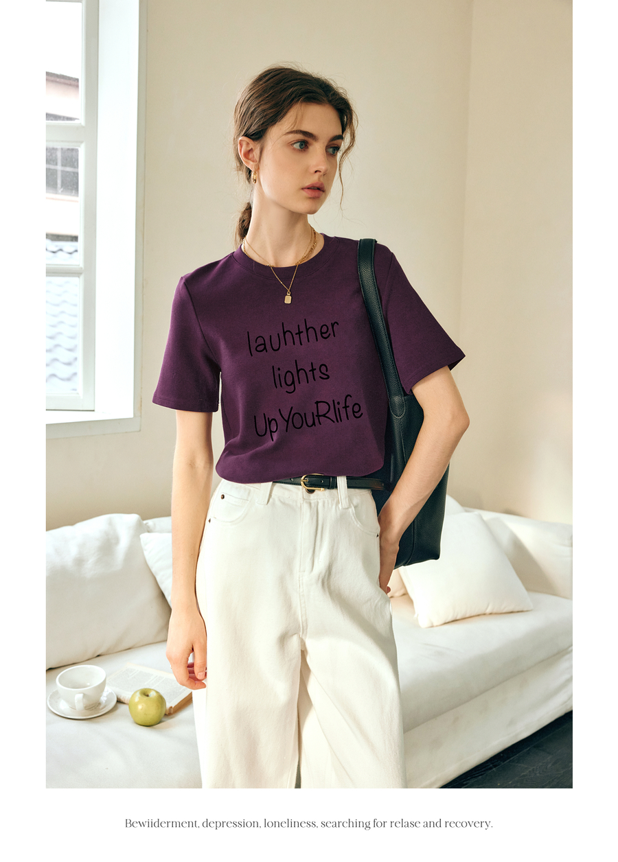 OLrain欧芮儿紫色短袖T恤女春季2025年新款百搭宽松休闲圆领上衣