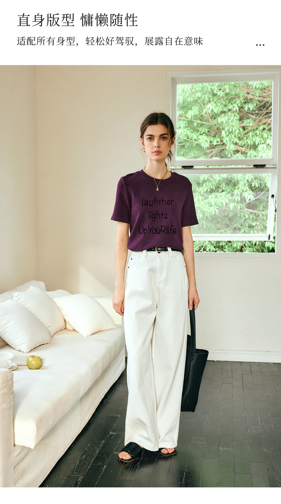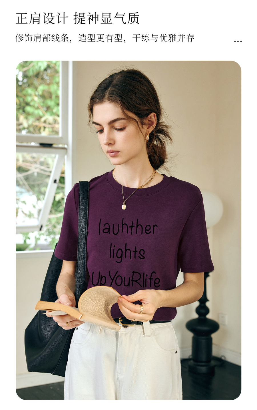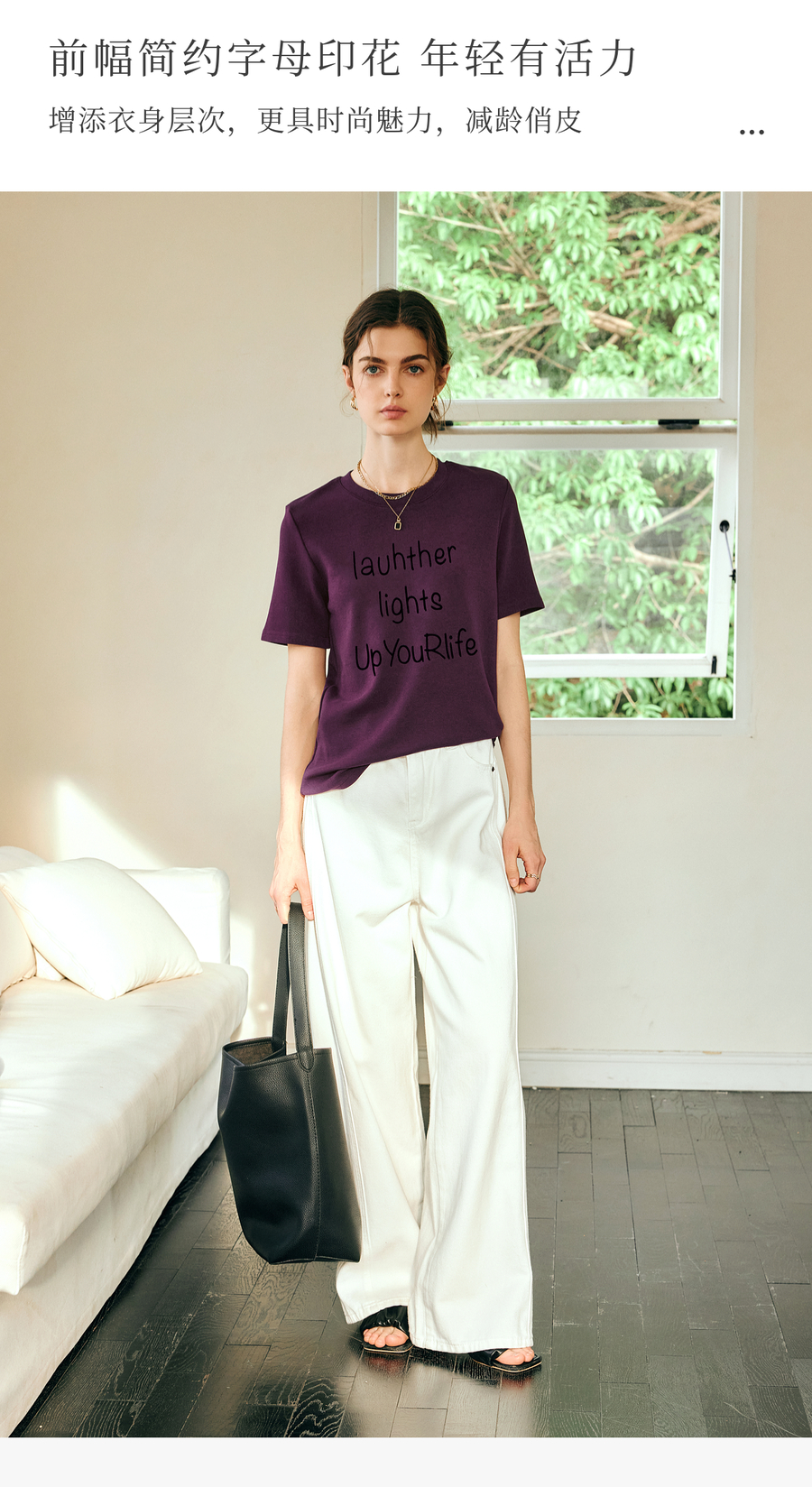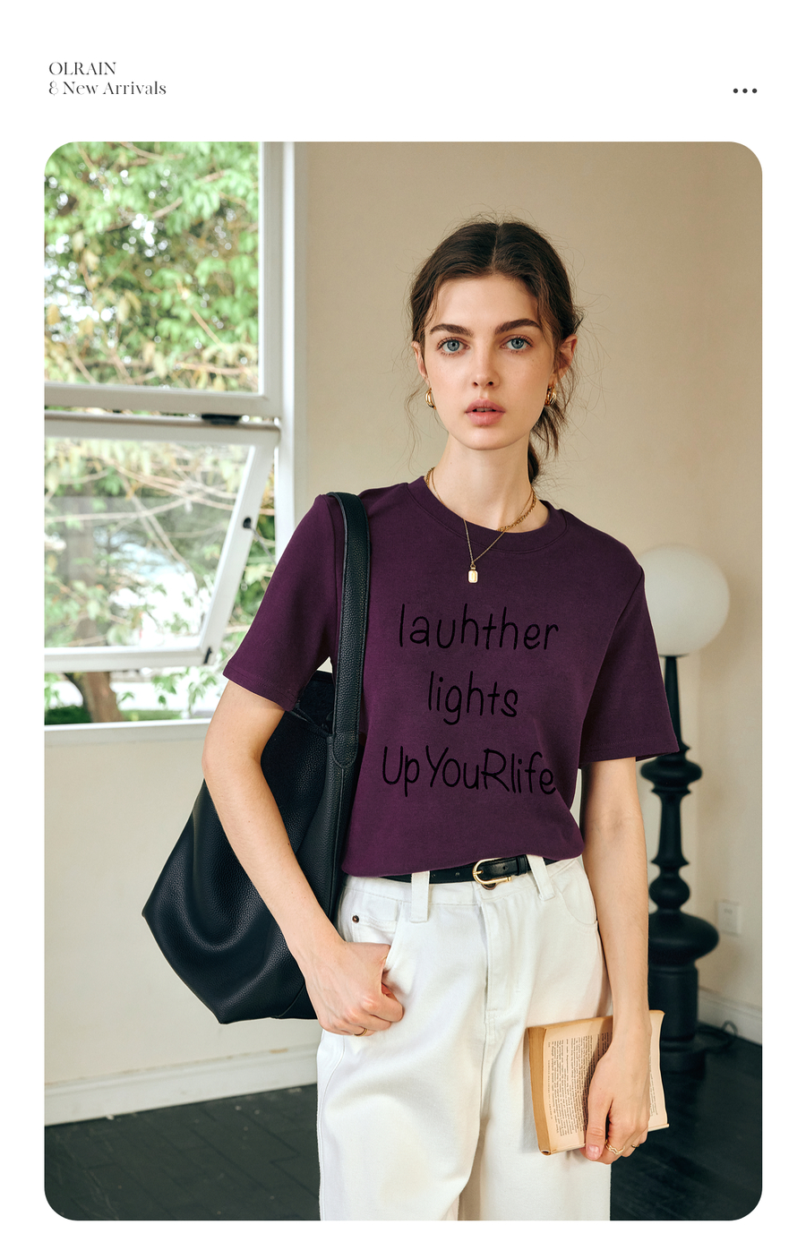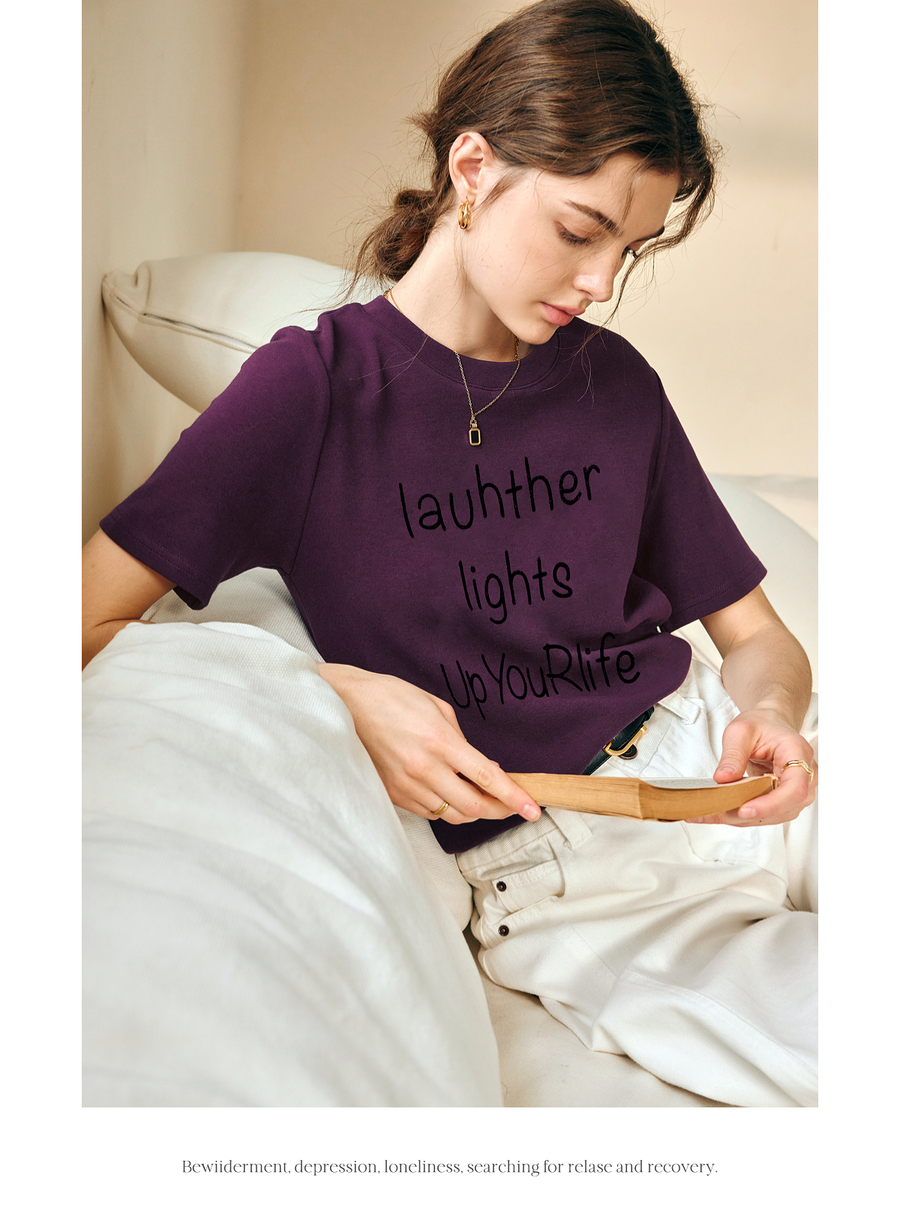 OLrain欧芮儿紫色短袖T恤女春季2025年新款百搭宽松休闲圆领上衣