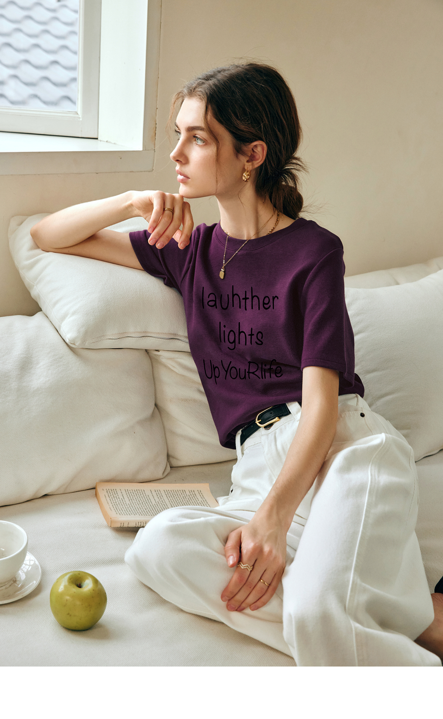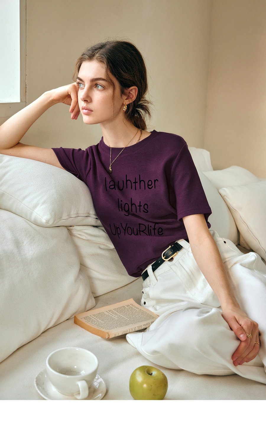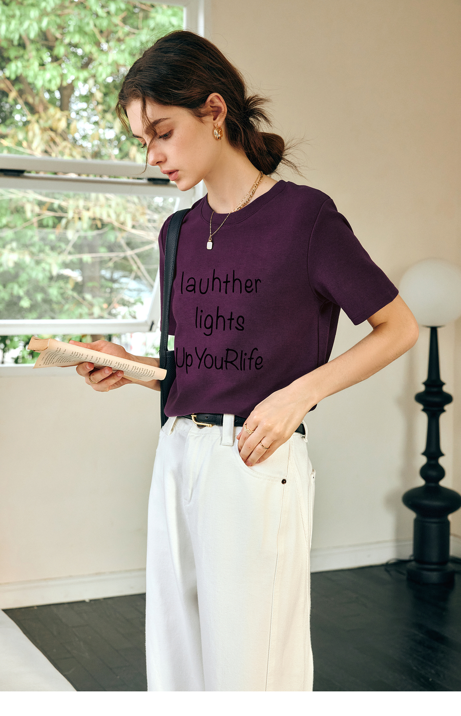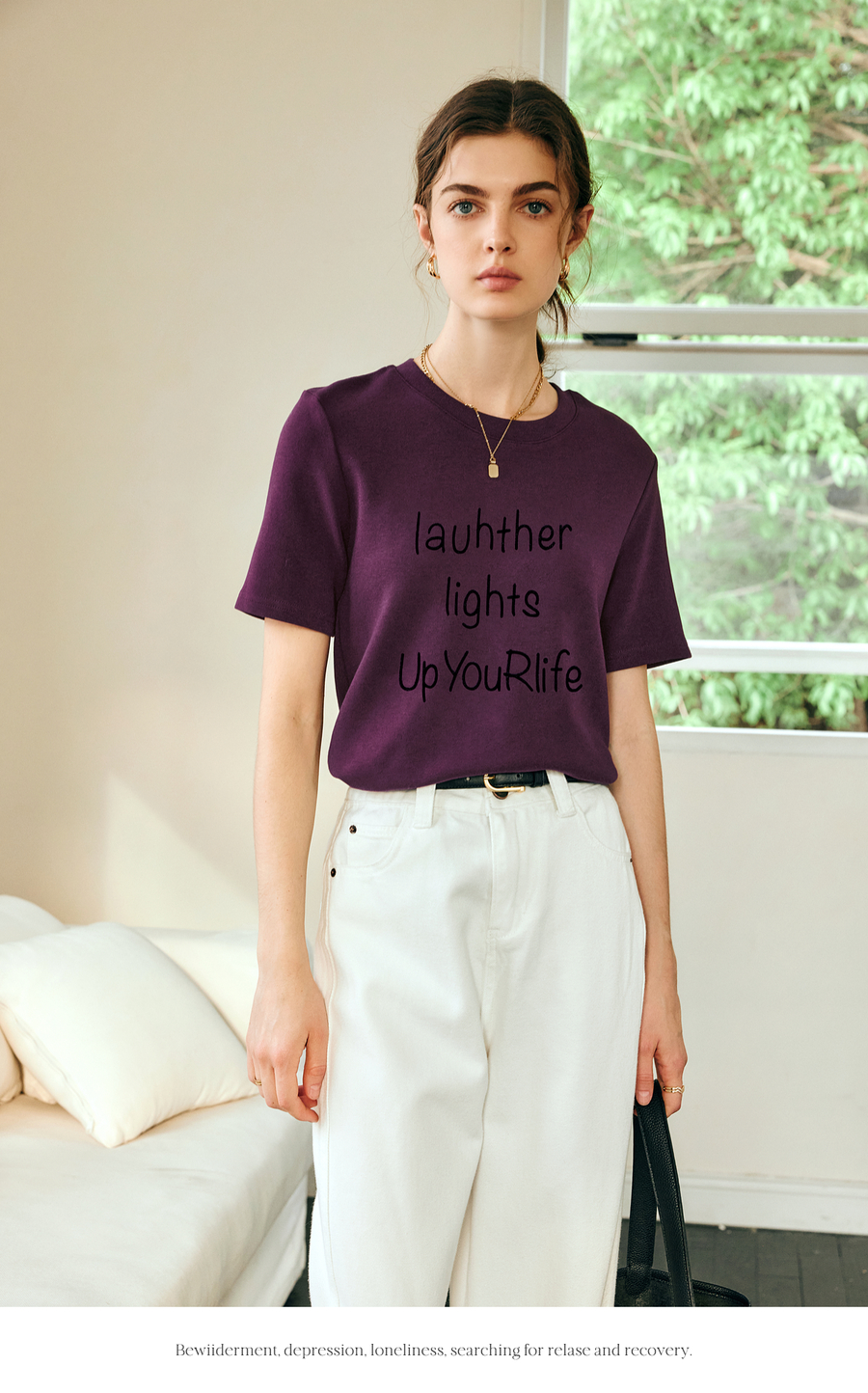 OLrain欧芮儿紫色短袖T恤女春季2025年新款百搭宽松休闲圆领上衣