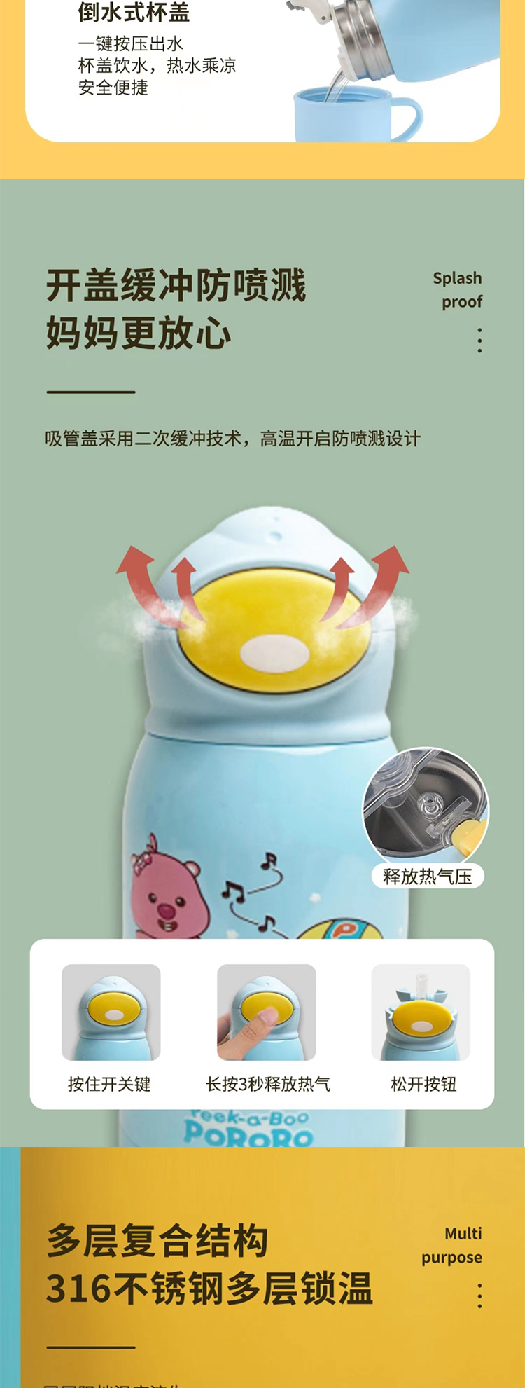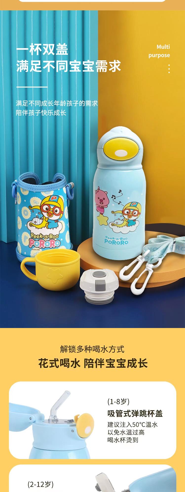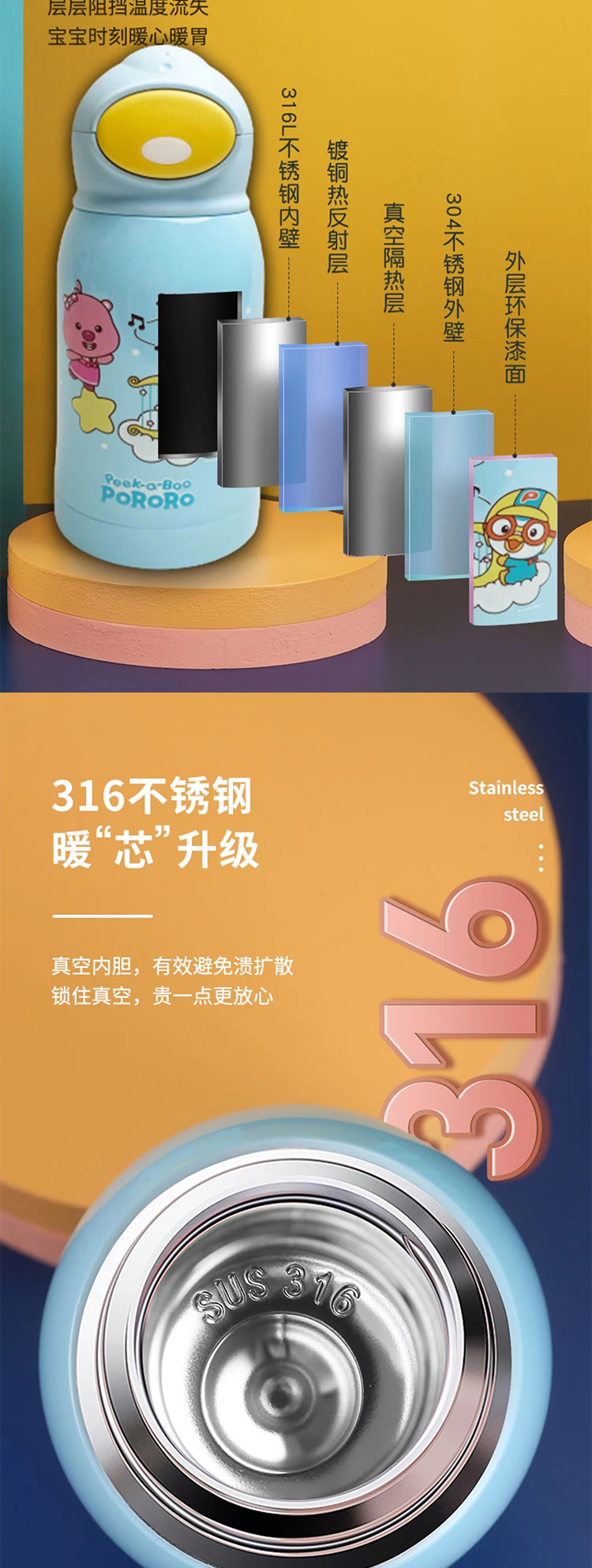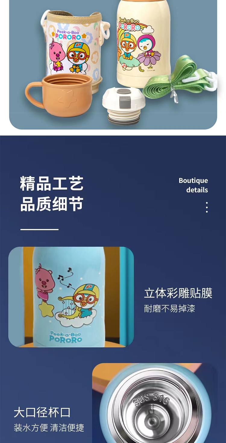 PORORO啵乐乐儿童保温水壶400ml-500ml