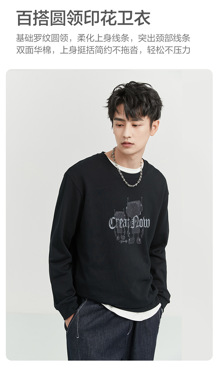 gxgjeans 男装【热卖推荐】25秋款男士圆领卫衣简约舒适百搭校园通勤打底衫K&C