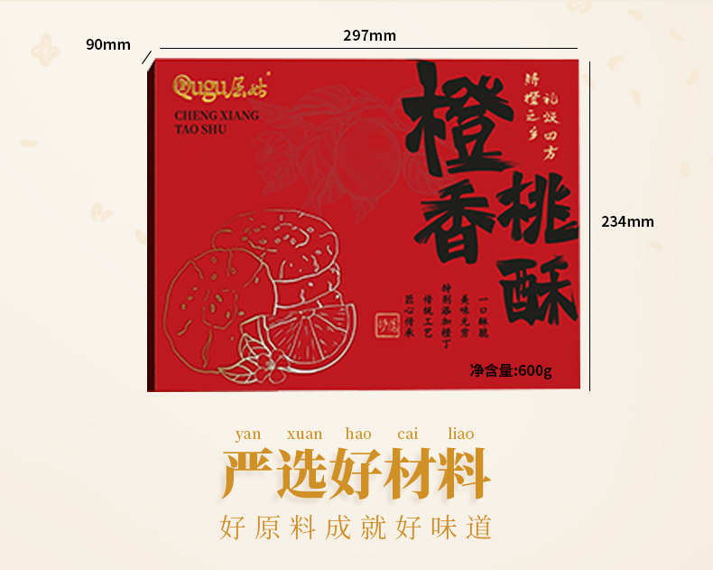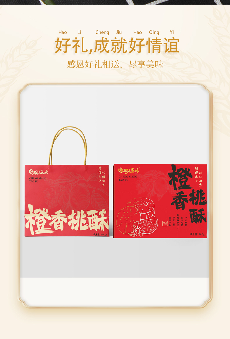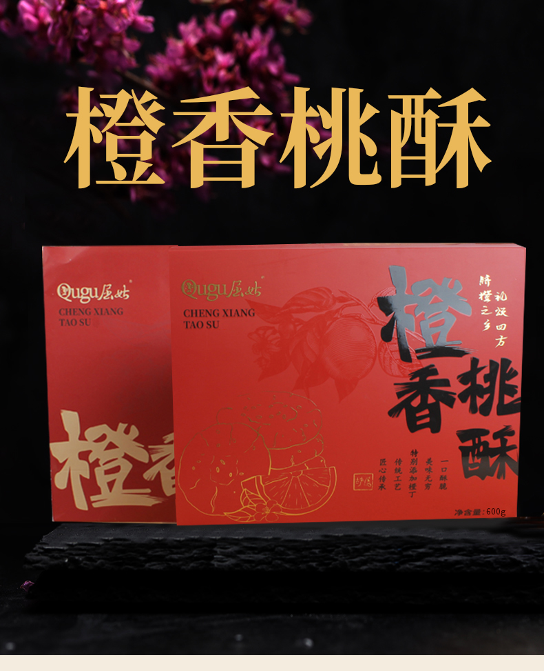 【严选】【秭归橙皮丁 优质小麦粉】屈姑糕点果酥系列橙香桃酥礼盒 酥脆可口有嚼劲 甜而不腻 口口有橙丁 礼盒600g/盒 (厂家直发)
