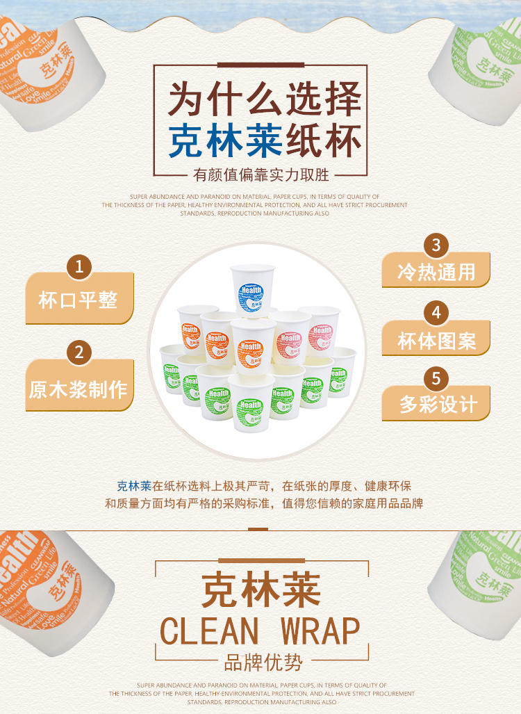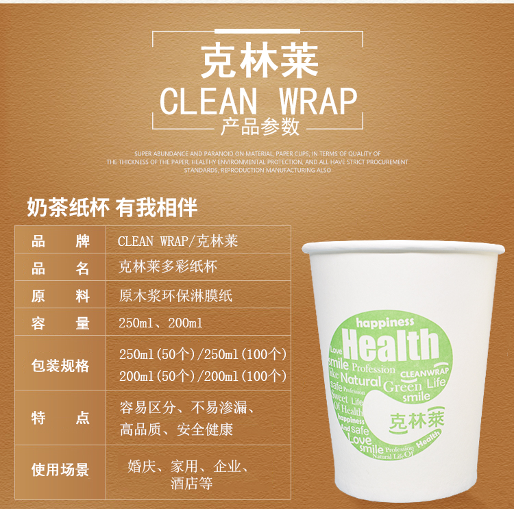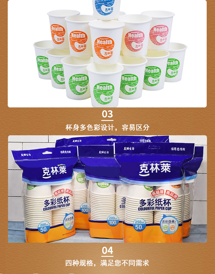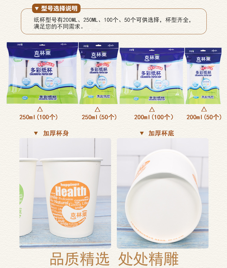 克林莱韩国加厚纸杯水杯一次性纸杯50只装