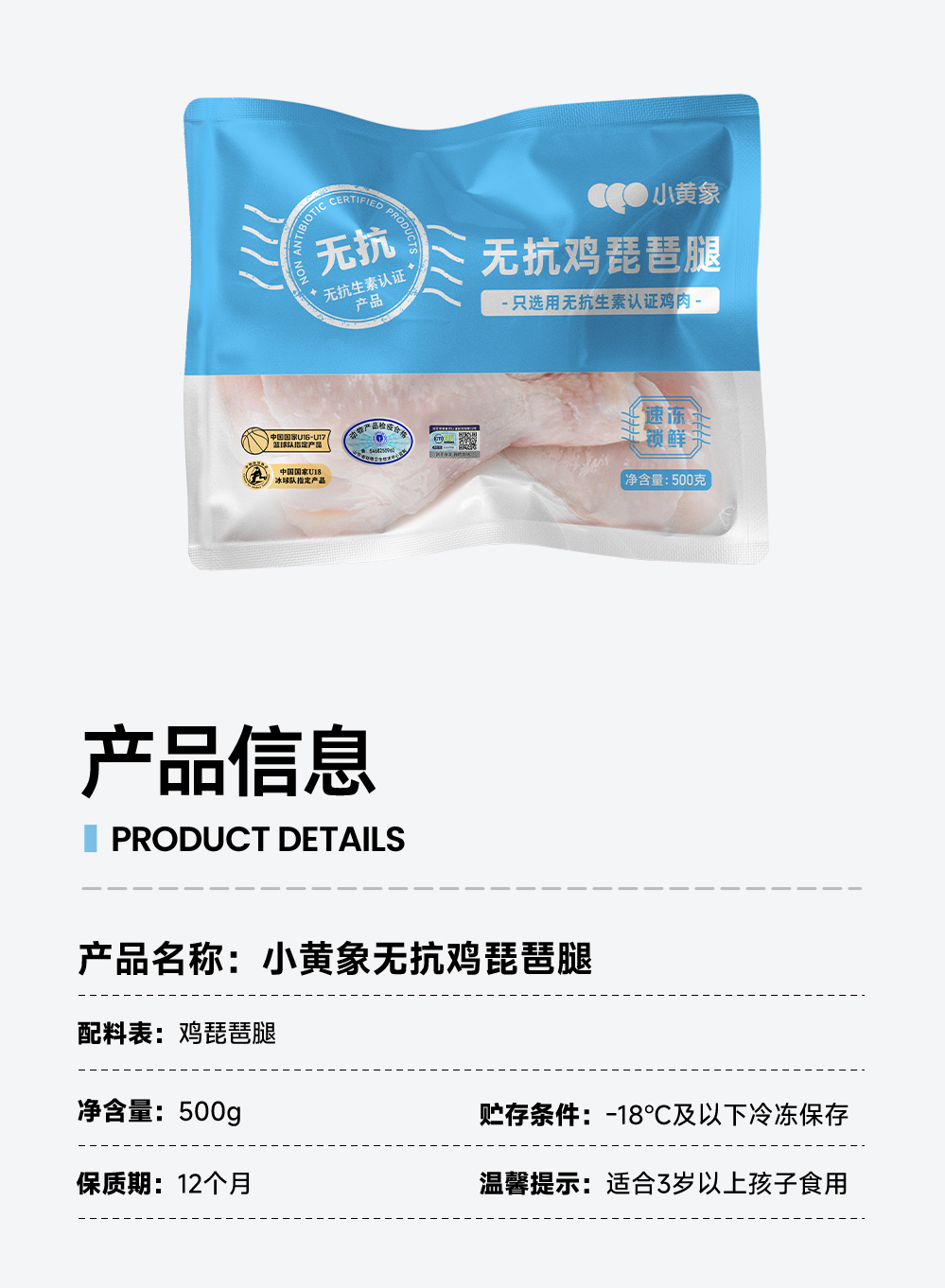 【小黄象年末囤货狂欢🔥🔥全场满299元赠定制冬季饼饼大毛毯丨另有169元/199元档赠品】🔥小黄象急速冷冻真空独立包装无抗琵琶腿 500g*4袋 FX zong