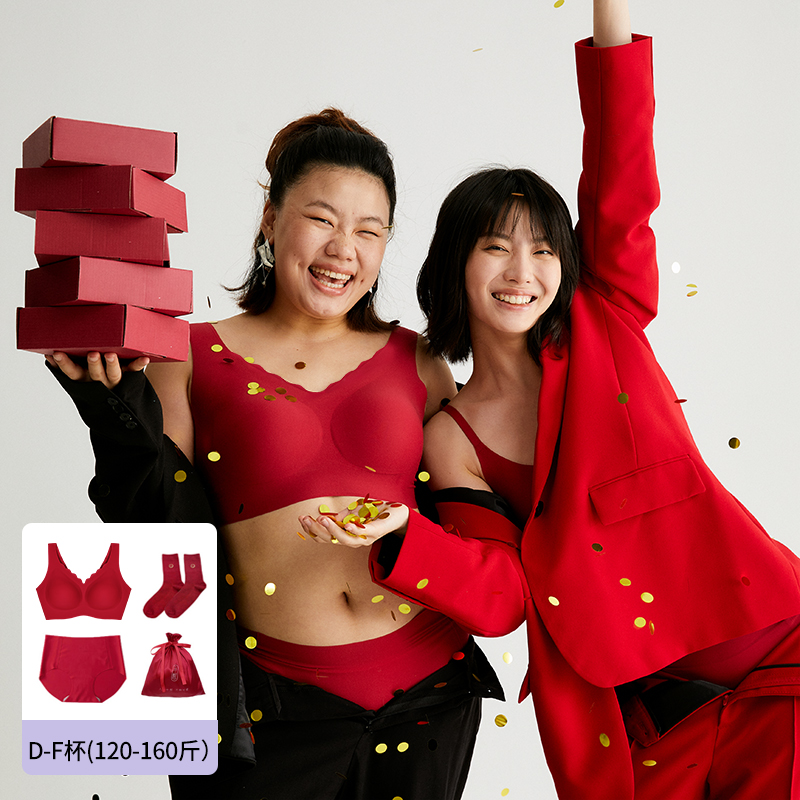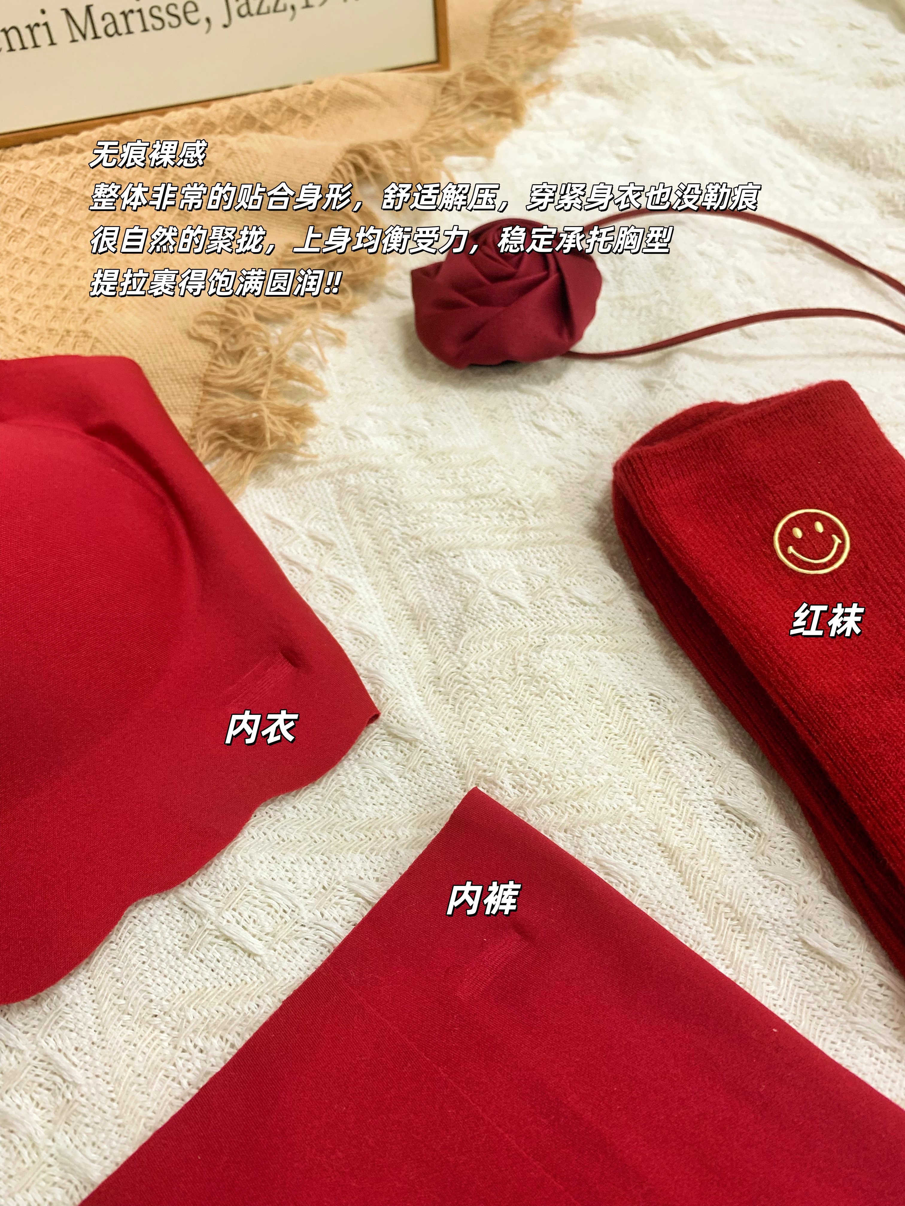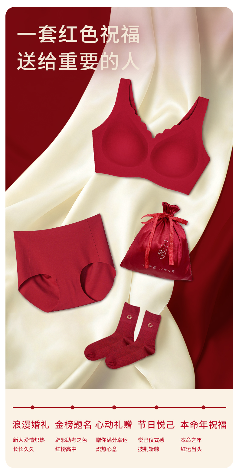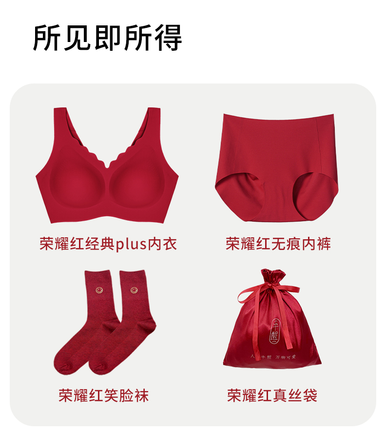 *【半醒】本命年puls内衣礼盒4件套荣耀红限定文胸无痕内裤羊毛保暖袜循环收纳袋