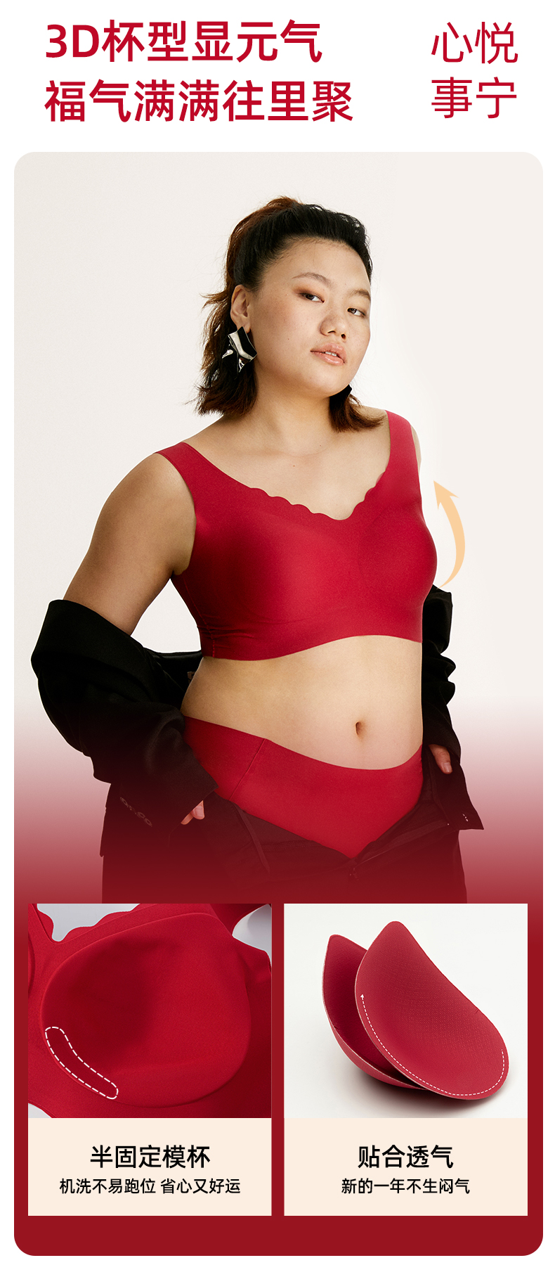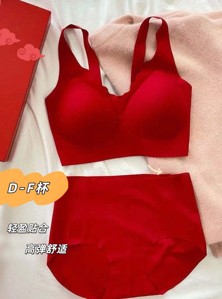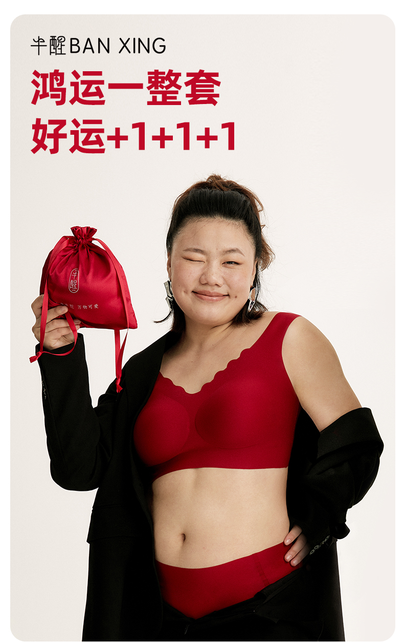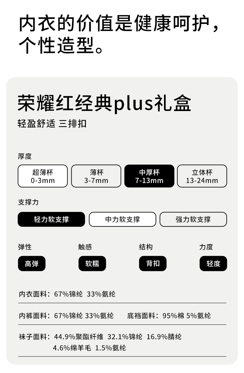 *【半醒】本命年puls内衣礼盒4件套荣耀红限定文胸无痕内裤羊毛保暖袜循环收纳袋