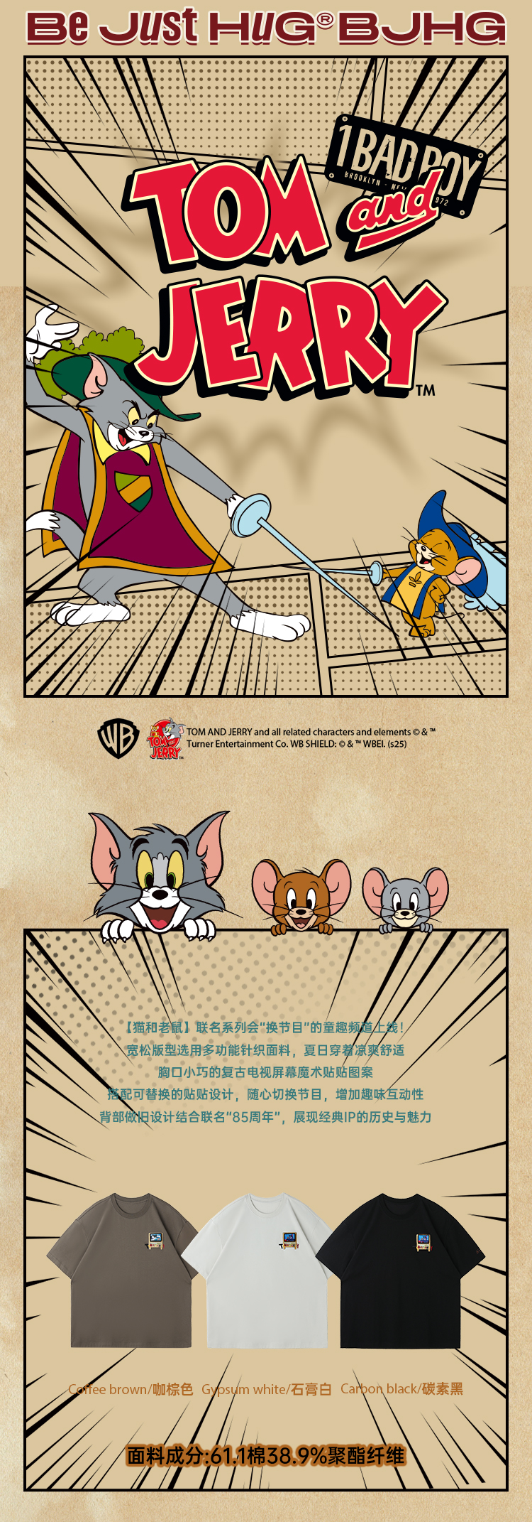【猫和老鼠联名】 BJHG不计后果美式短袖t恤男款夏季凉感速干半袖