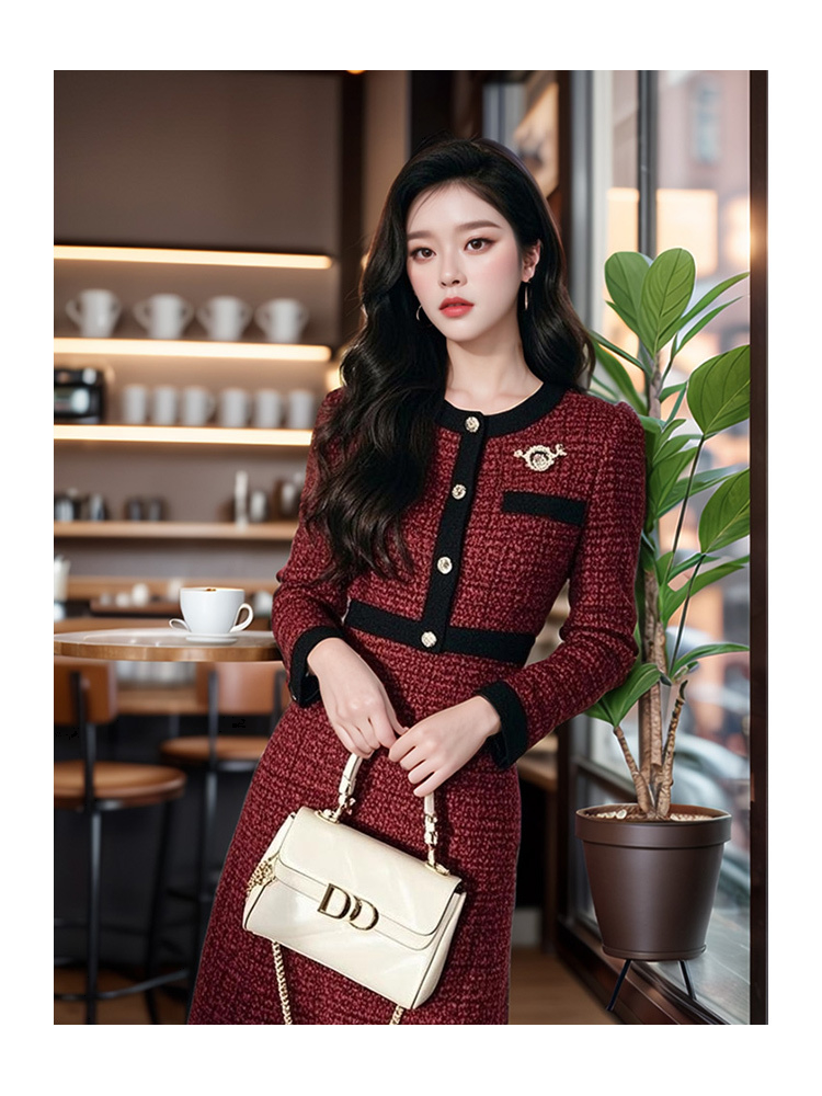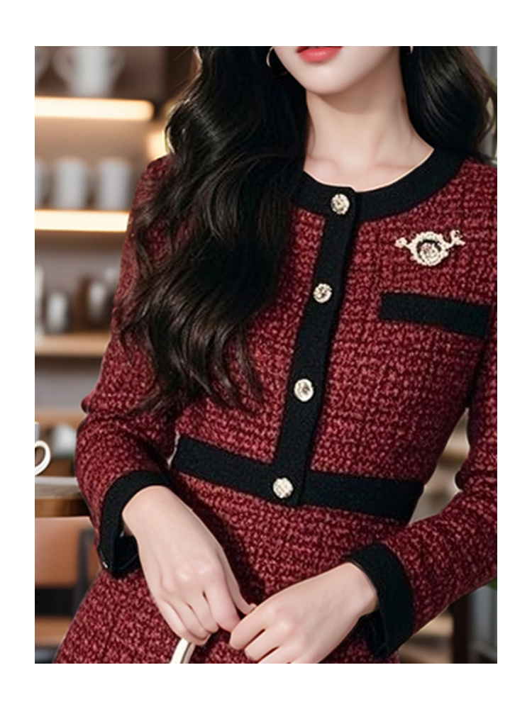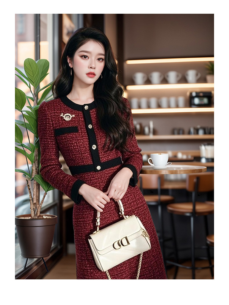 奢姿2024年秋季新款大码女装圆领气质裙子胖妹妹小香风拼接连衣裙9944855512