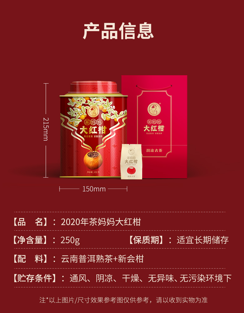 澜沧古茶2020年茶妈妈陈皮普洱大红柑熟茶新会橘普柑普茶叶250g