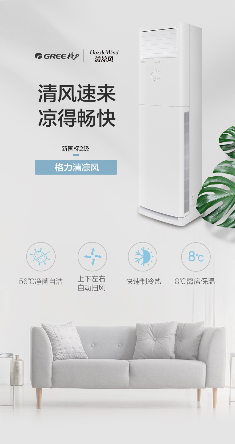 (方形)清凉风变频冷暖3匹2级能效柜机空调 KFR-72LW/(72536)FNhAc-B2JY01(皓雪白)