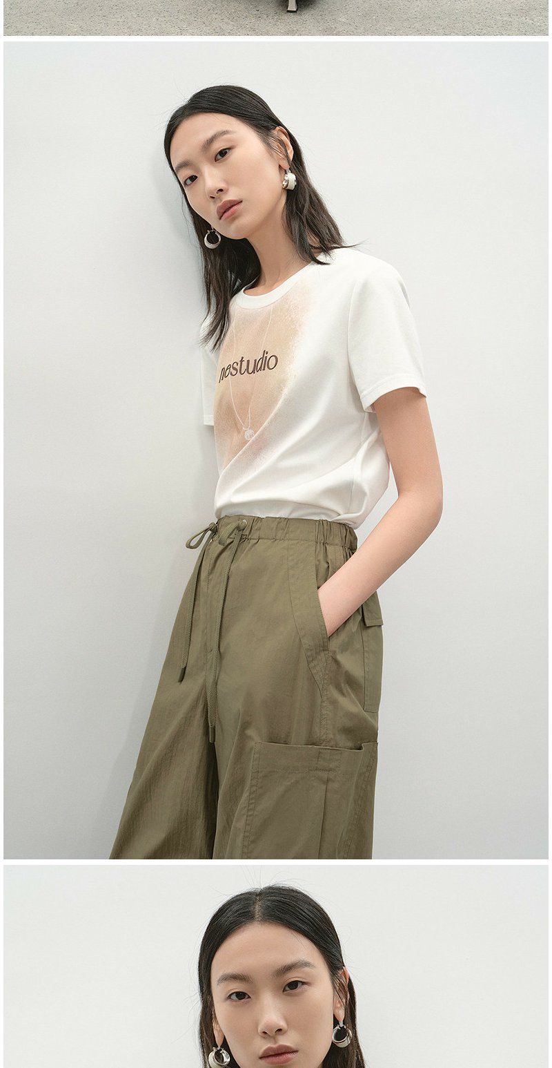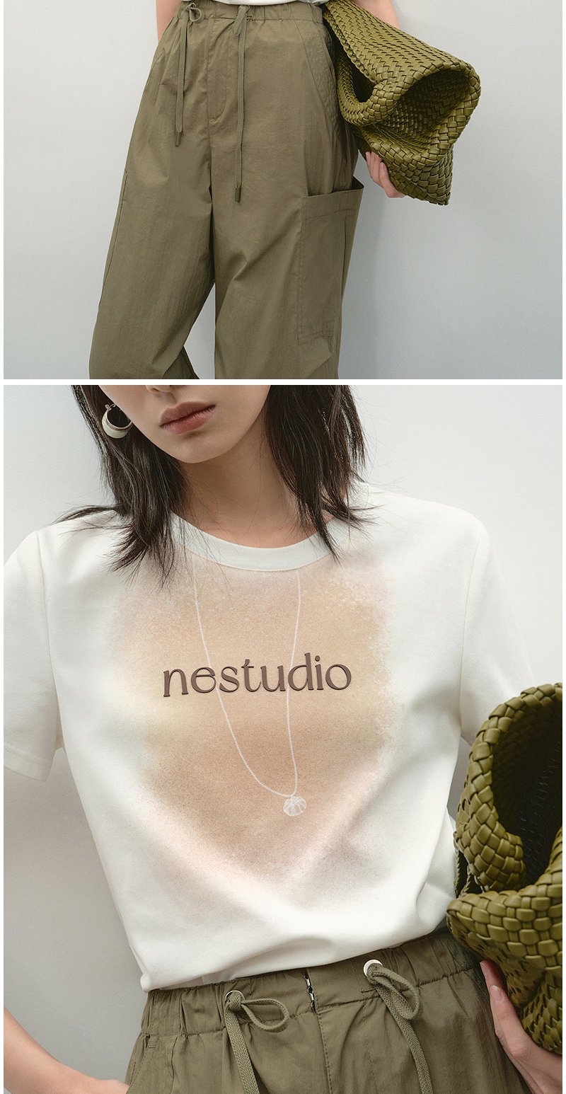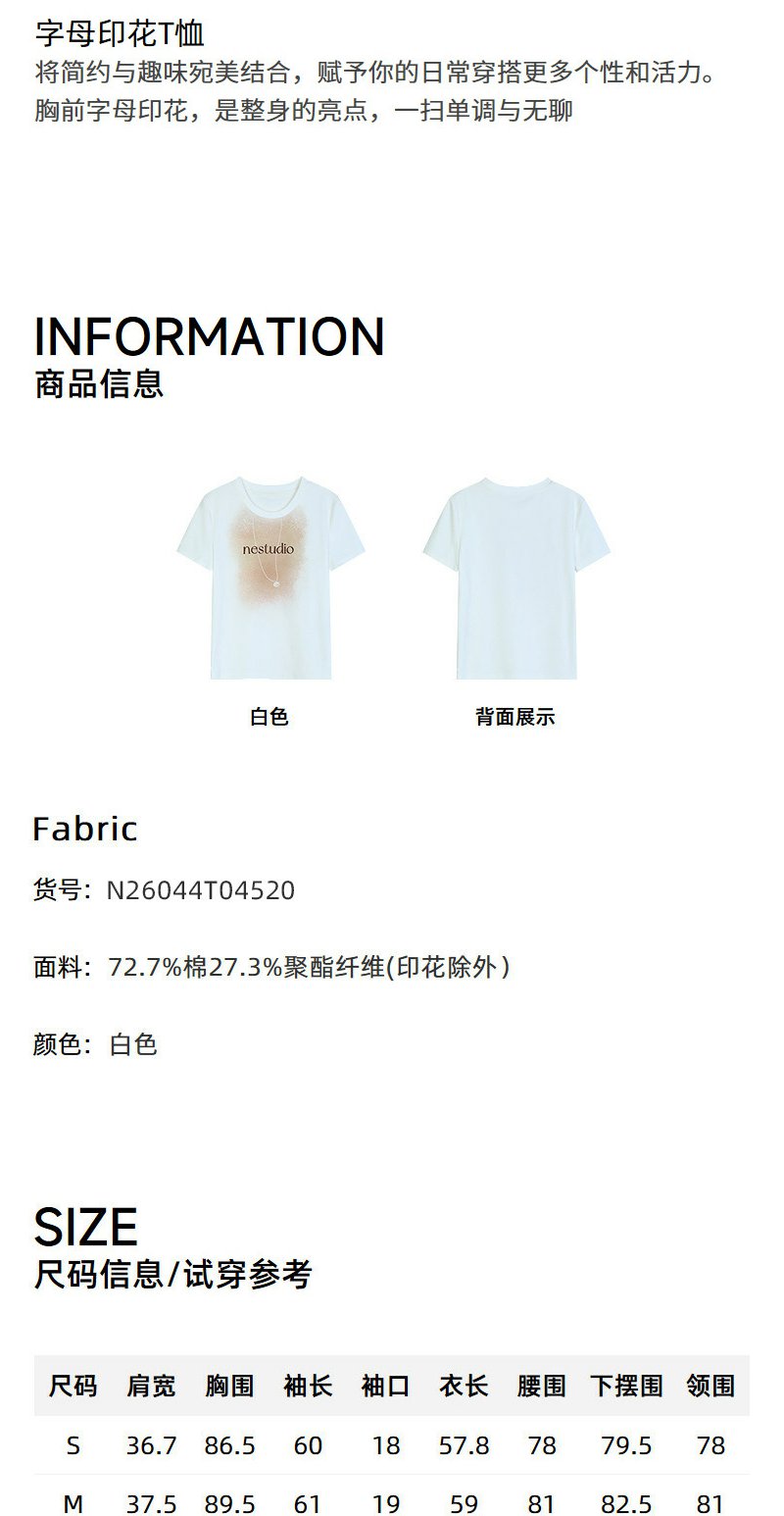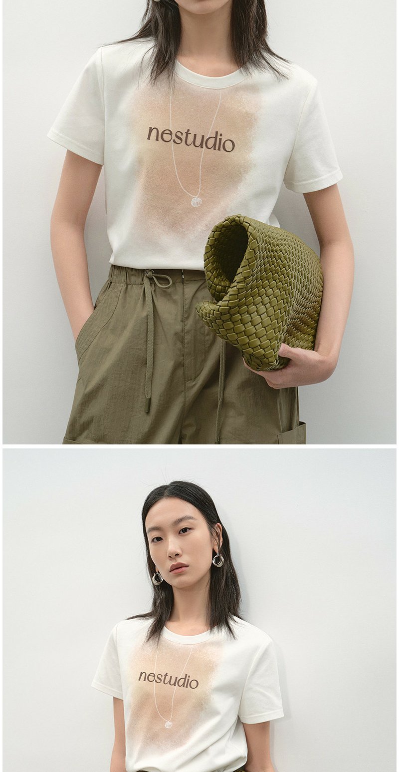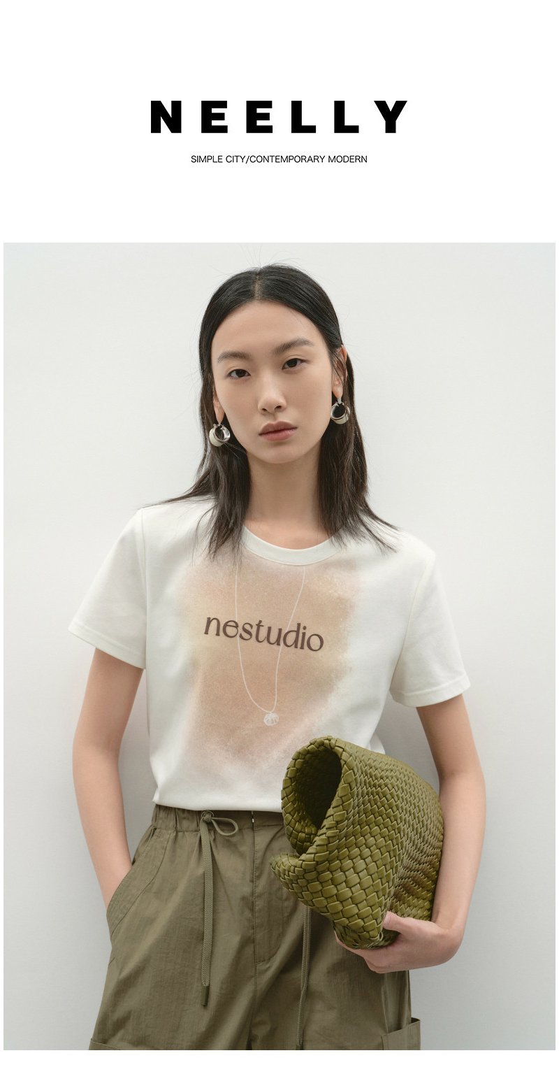 NEELLY纳俪商场同款夏季新款简约字母印花T恤女质感潮流时尚短袖N26044T04520